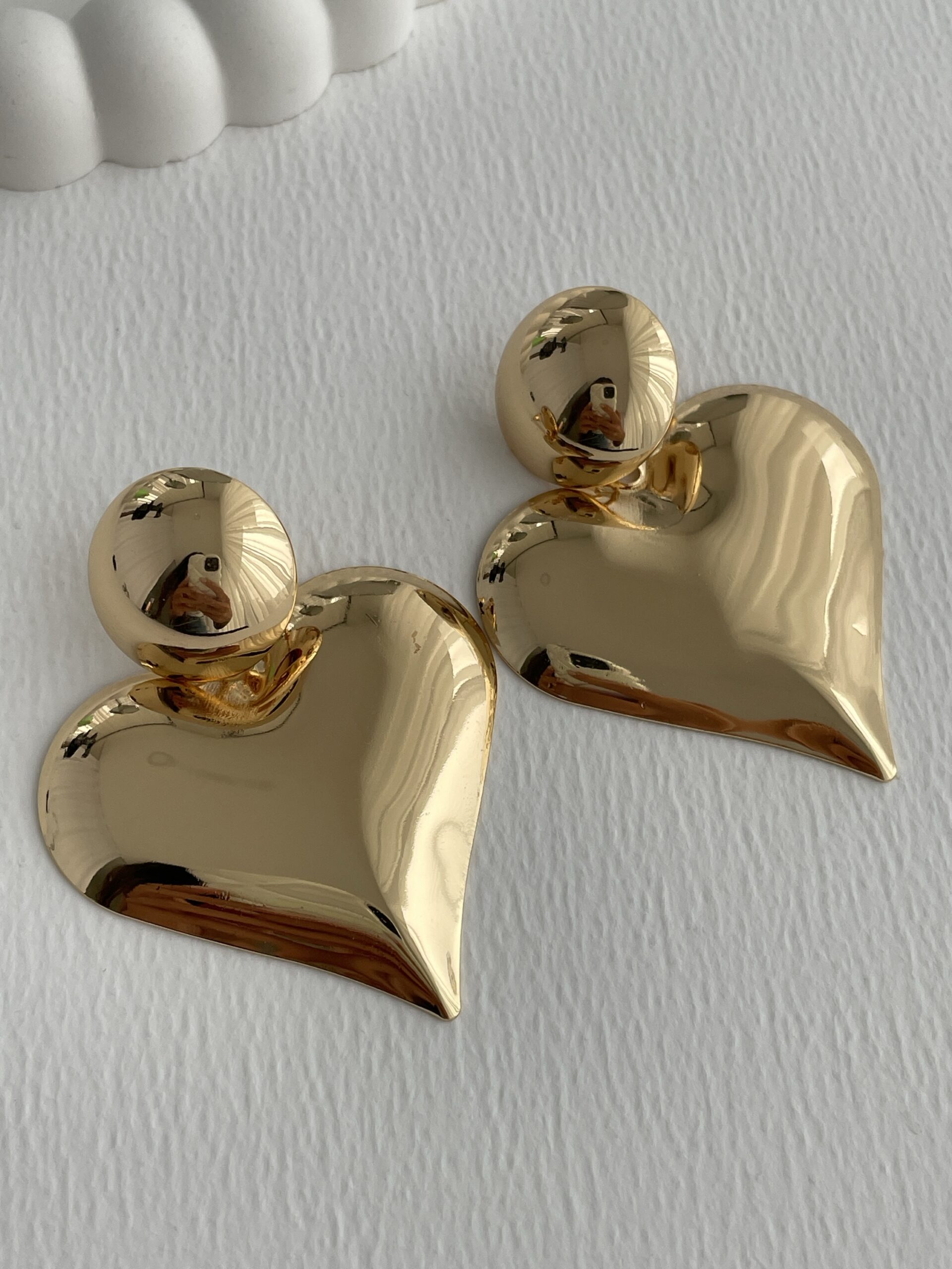 Özel Seri Büyük Boy Kalp Tasarım Gold Küpe