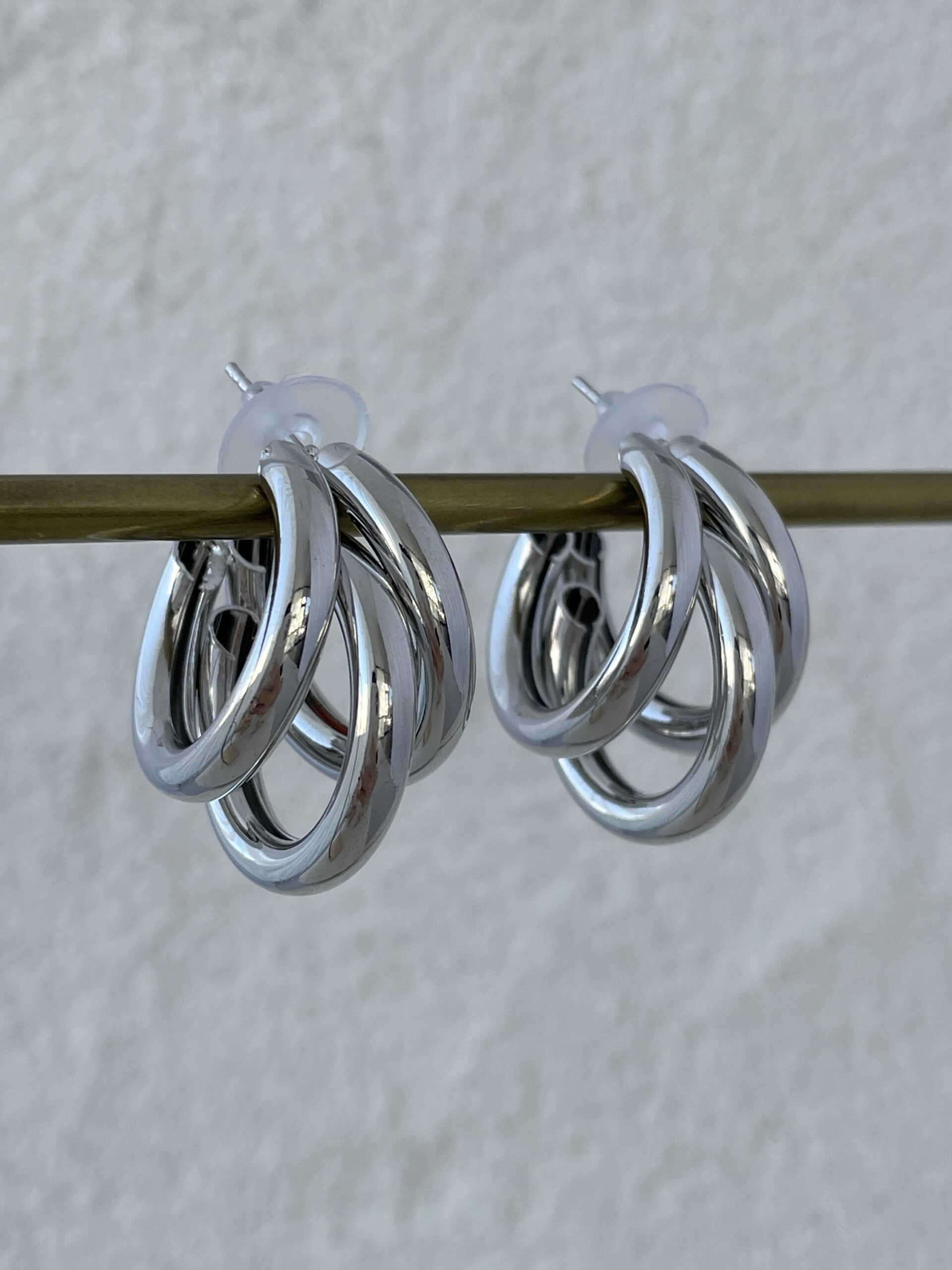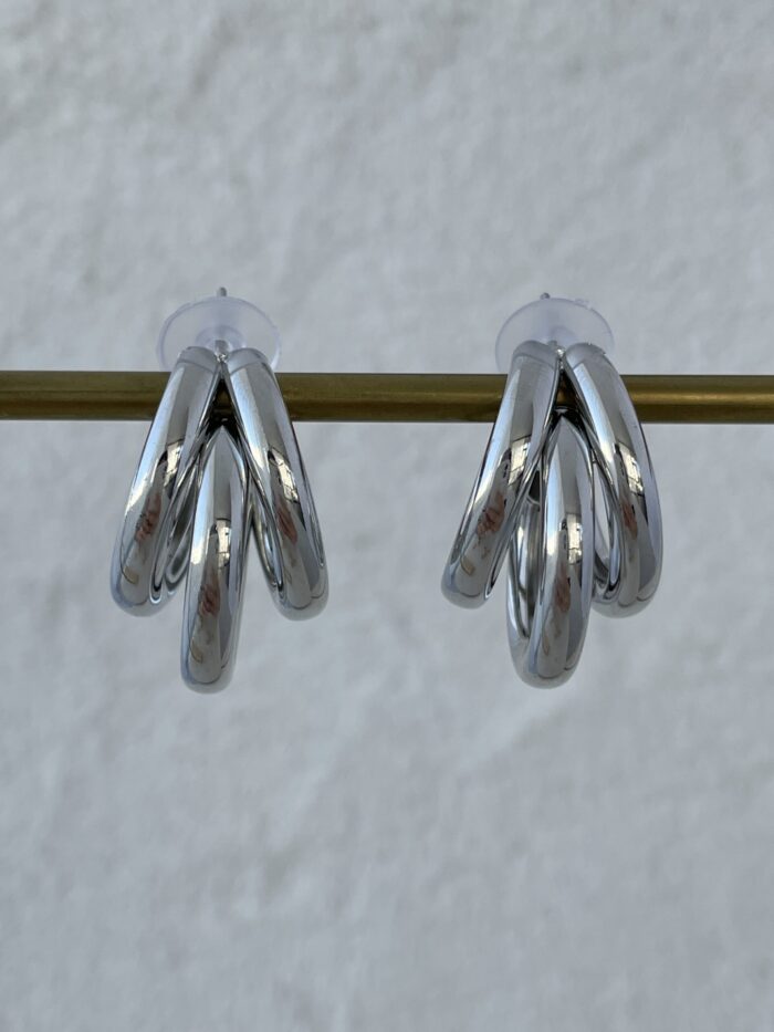 Özel Seri Büyük Boy Üçlü Halka Gümüş Küpe