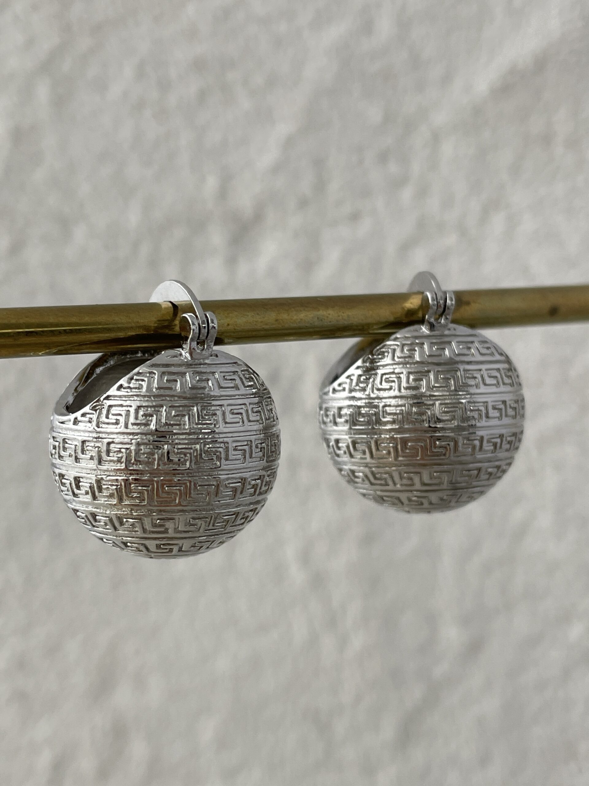 Özel Seri Büyük Desenli Top Gümüş Küpe