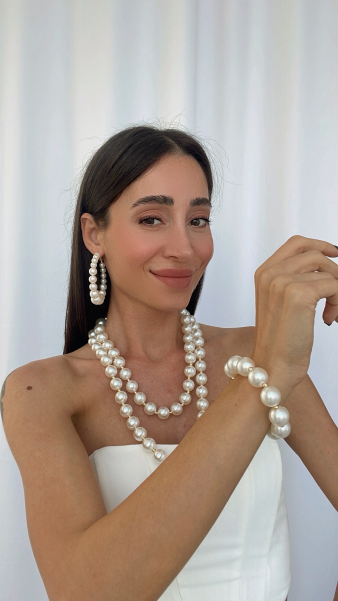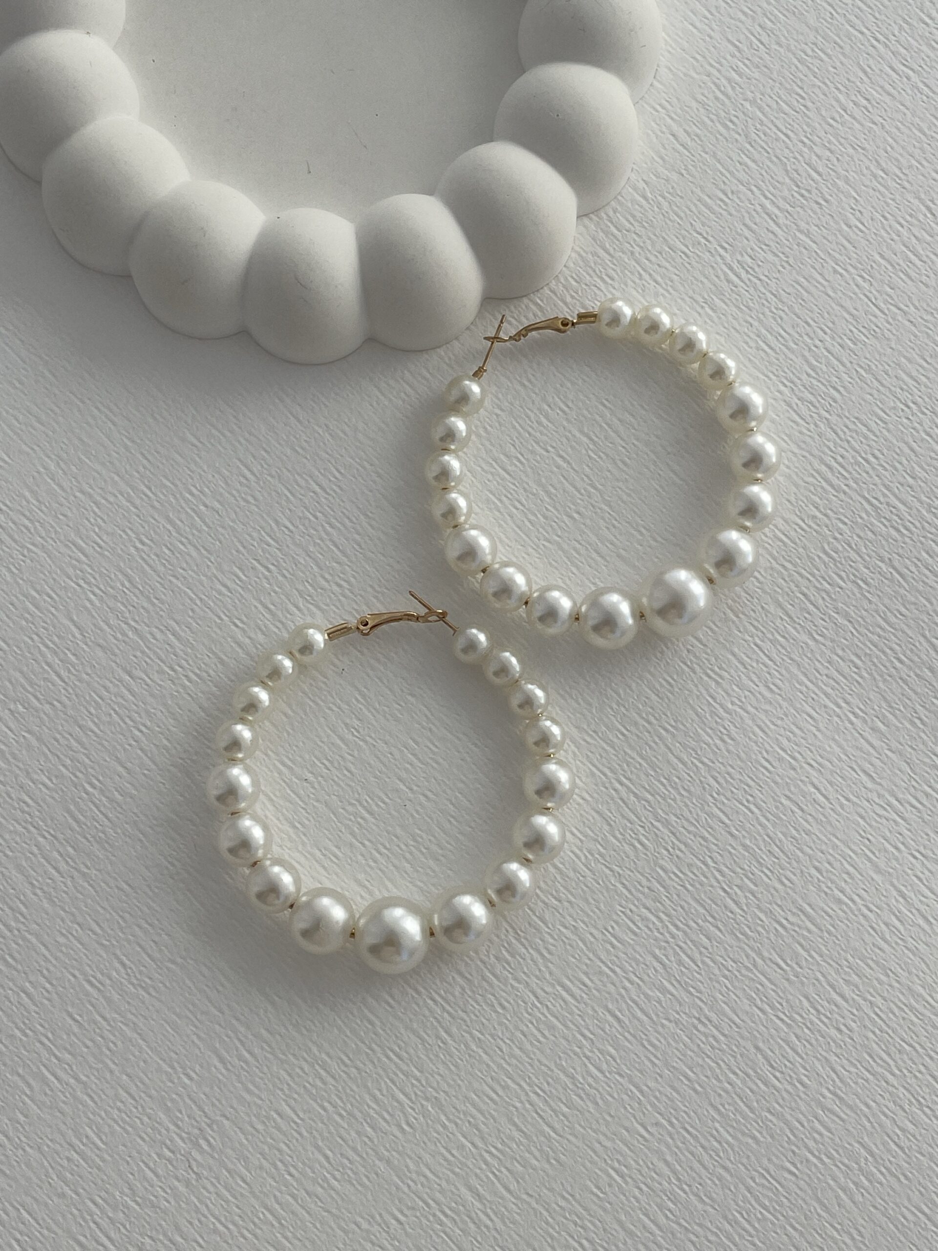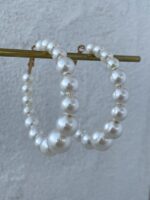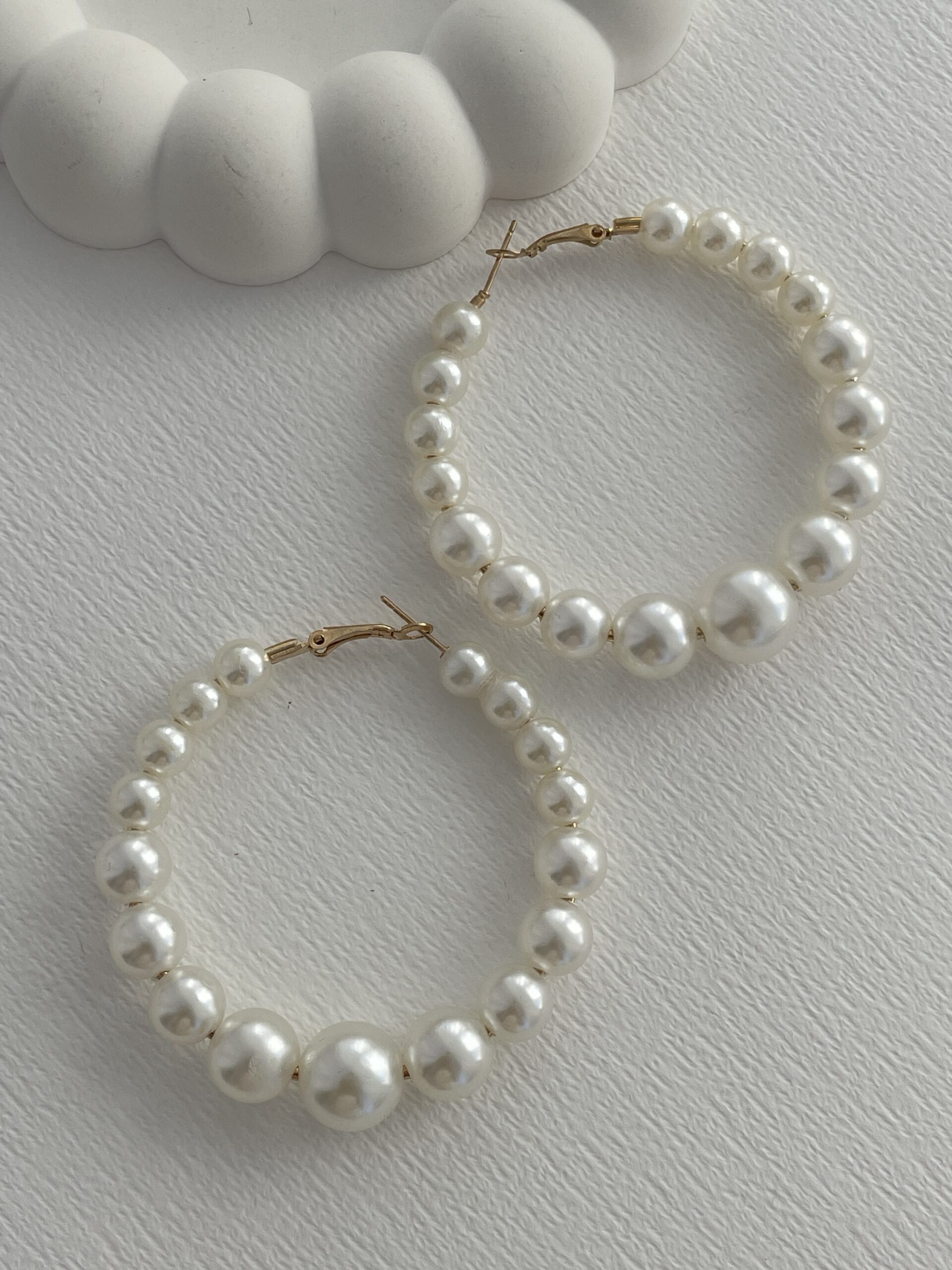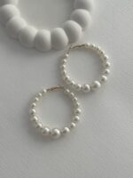 Özel Seri Büyük Boy İnci Gold Detay Halka Küpe