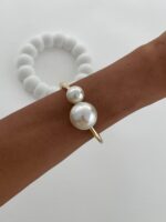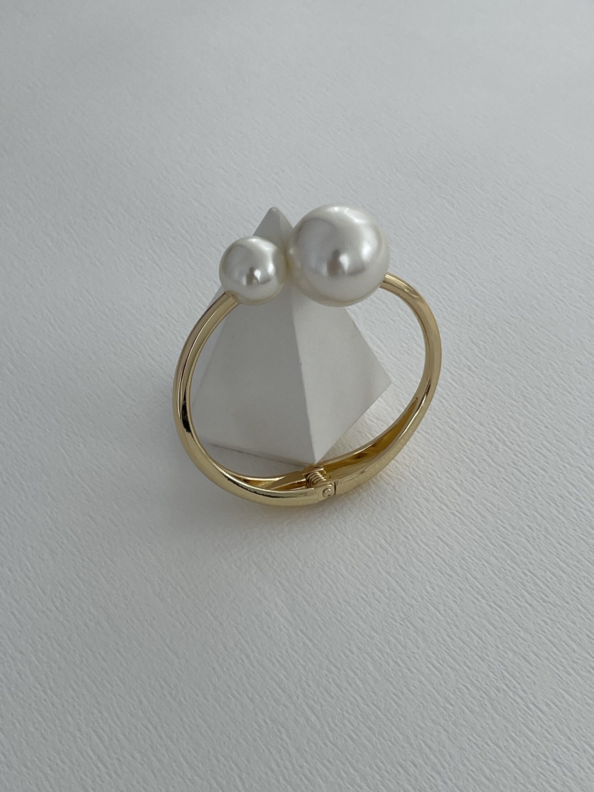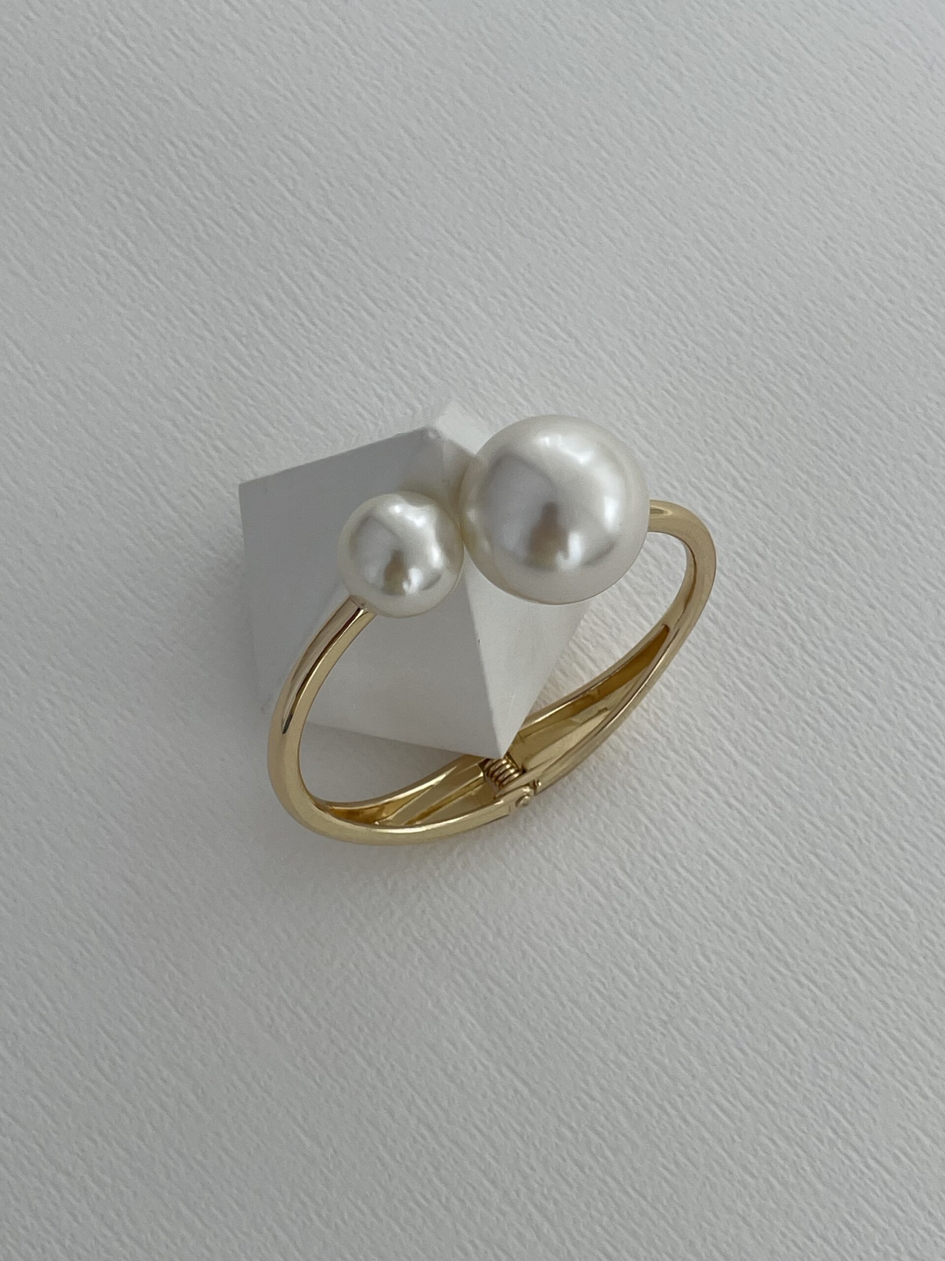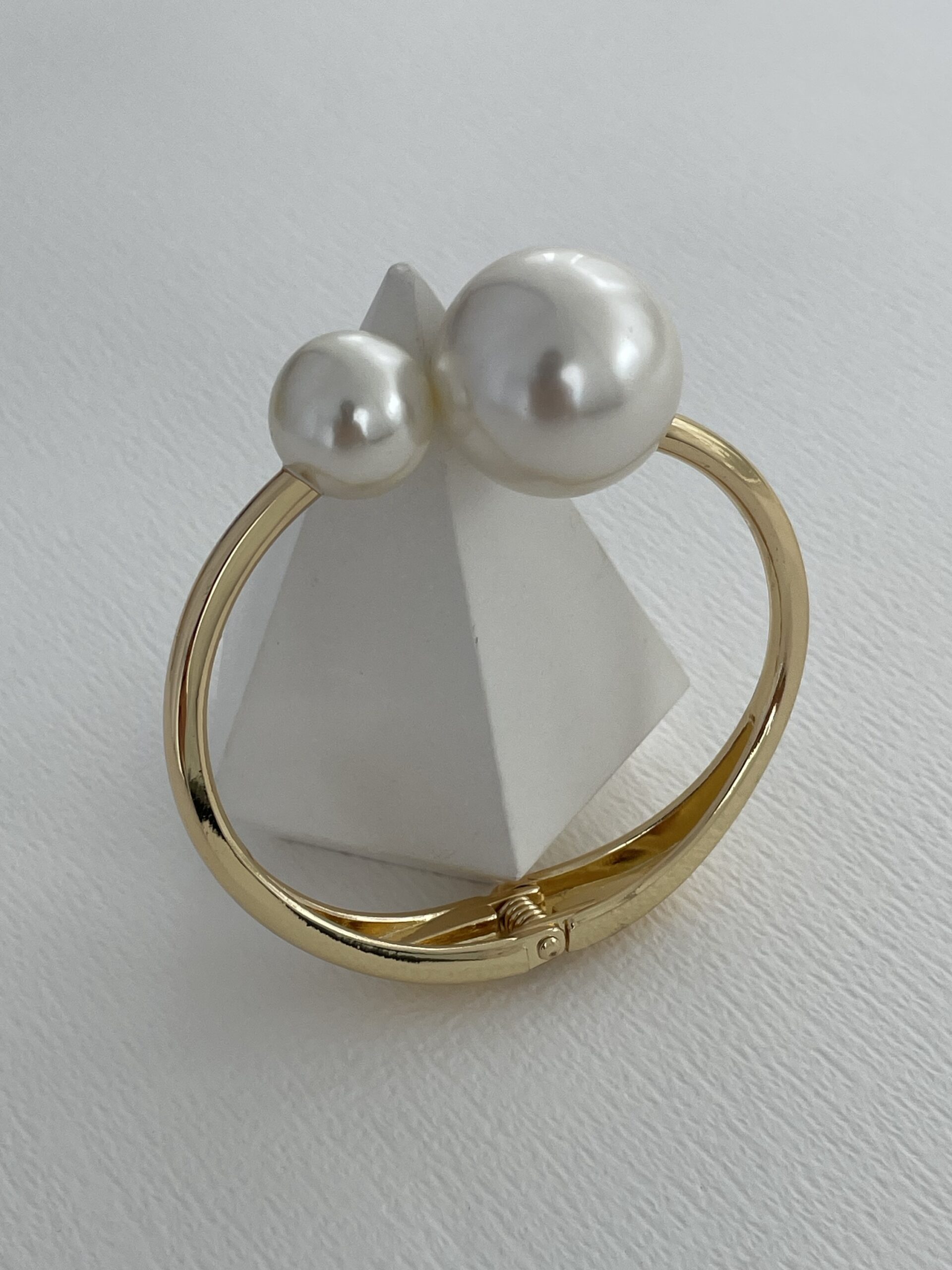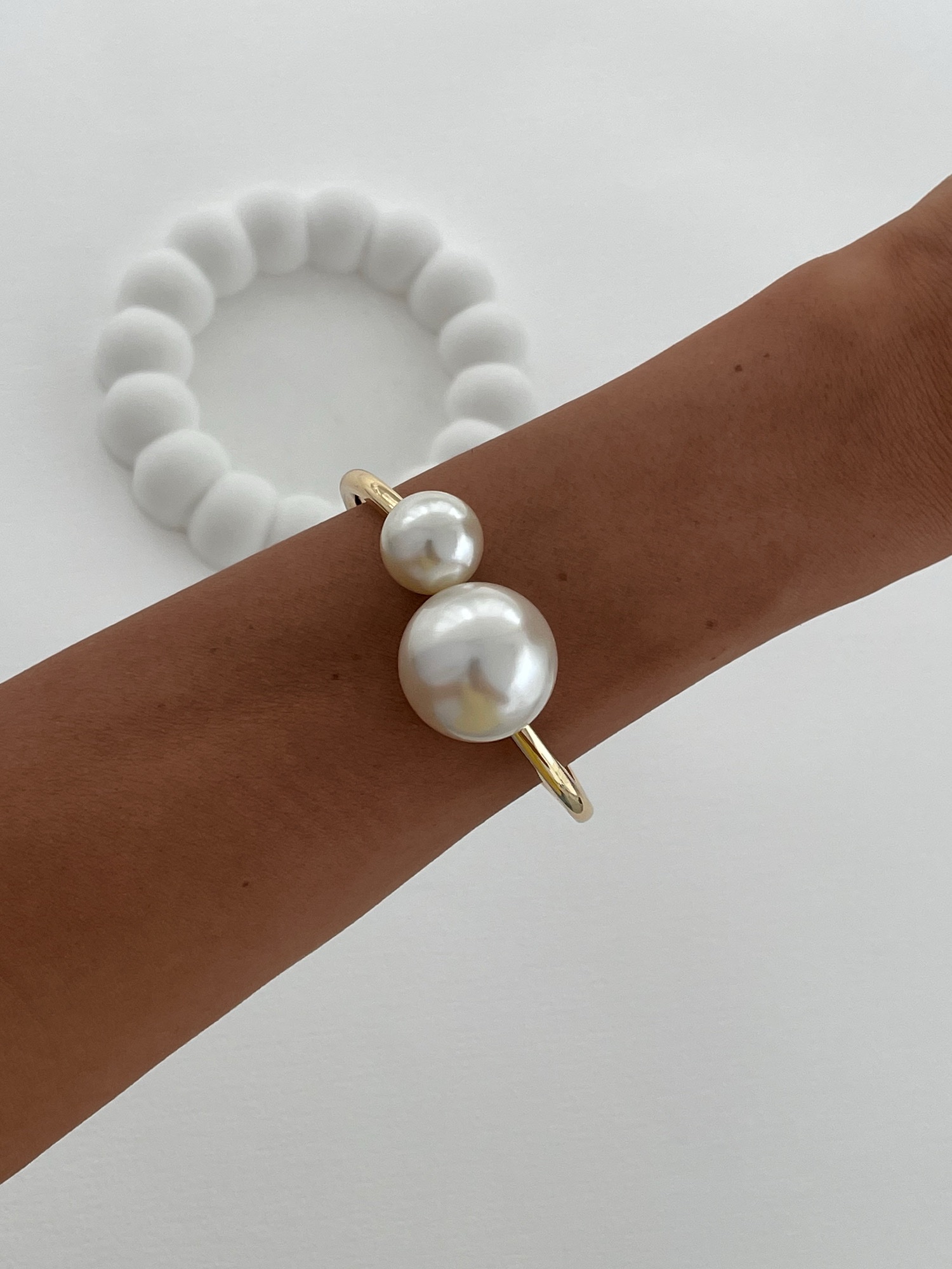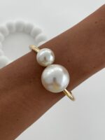 Özel Seri Büyük & Küçük İnci Tasarım Gold Kelepçe Bileklik