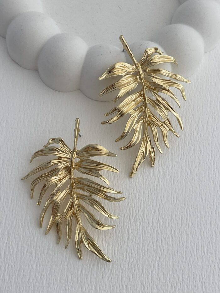 Özel Seri Büyük Yaprak Tasarım Gold Küpe