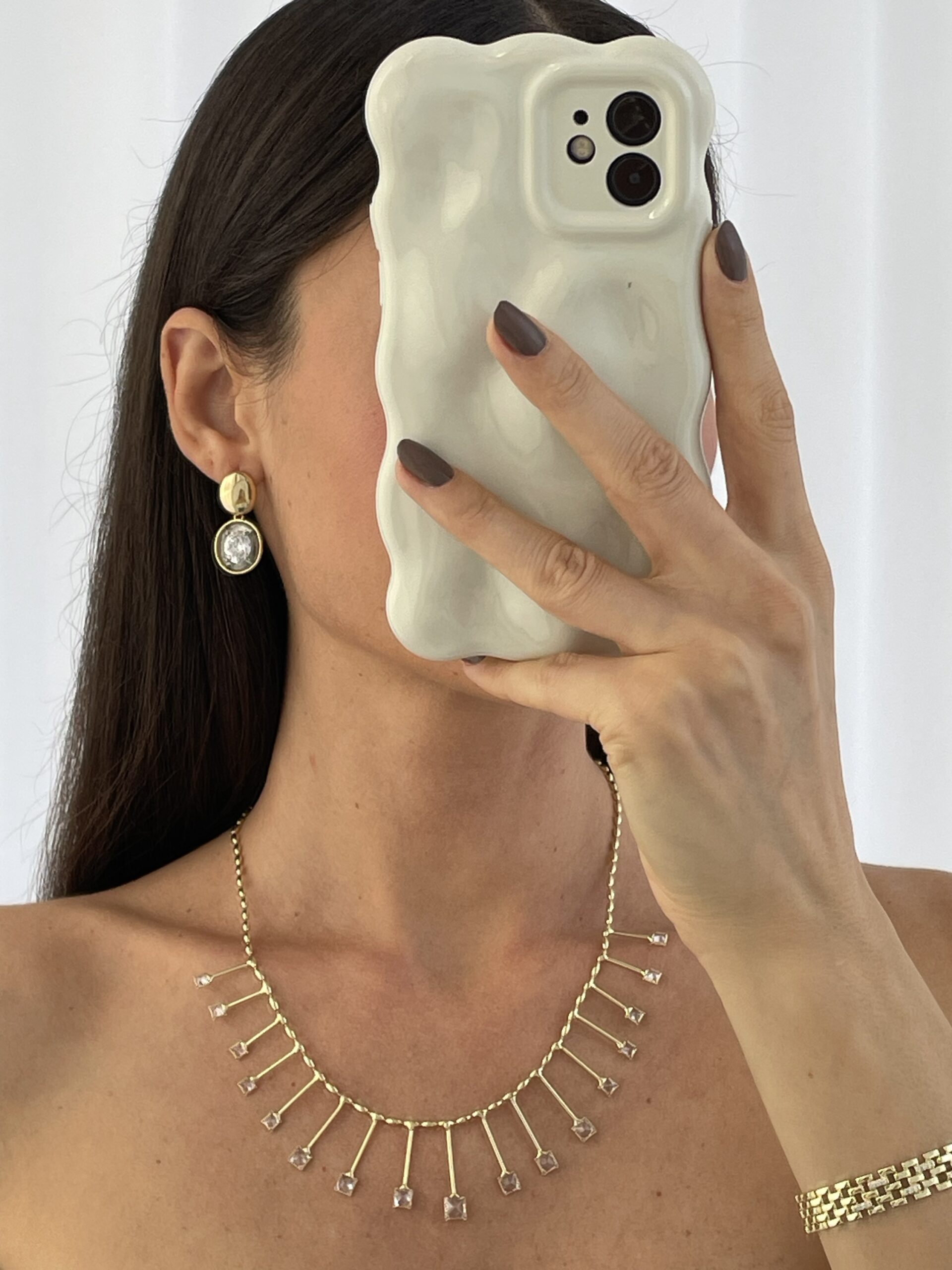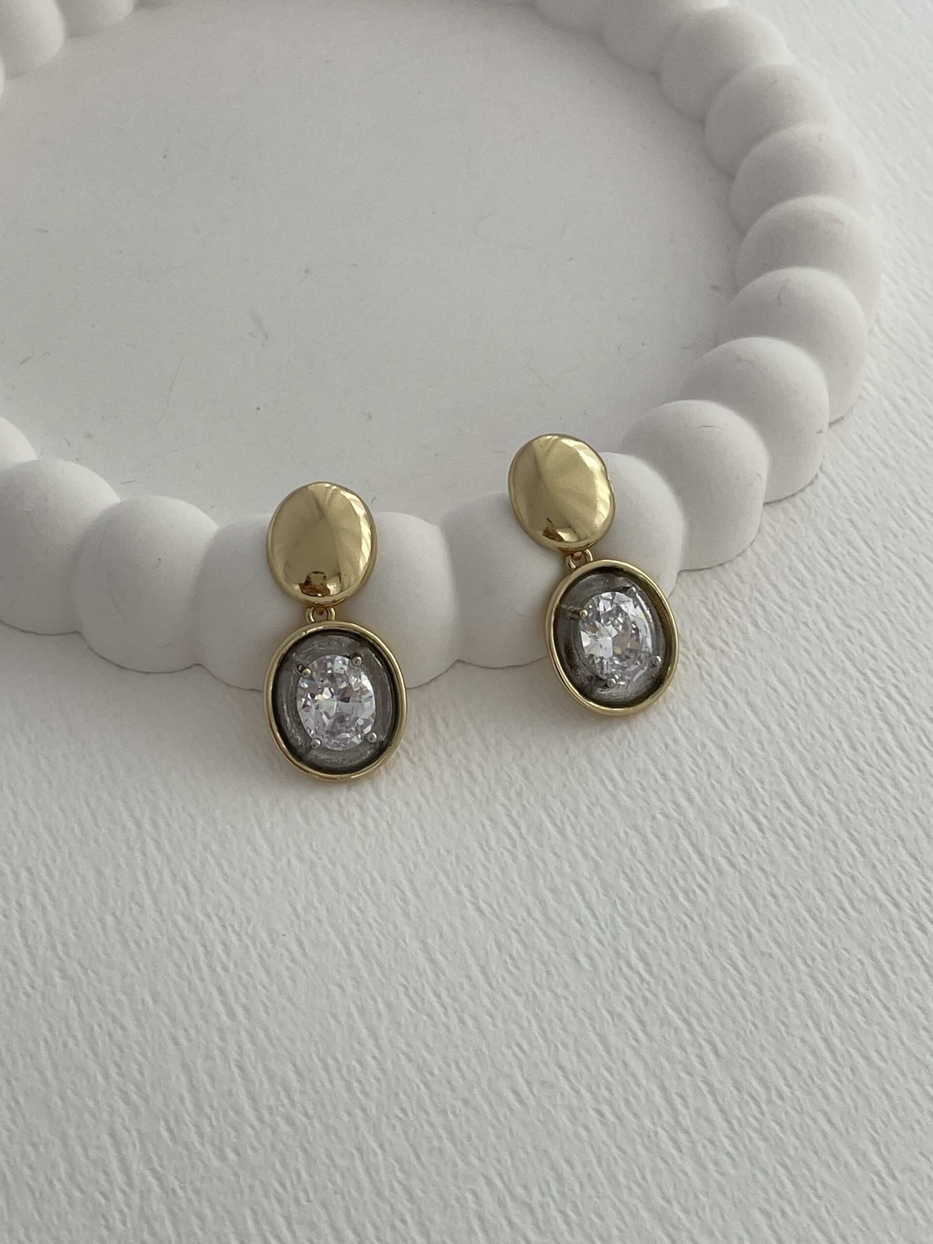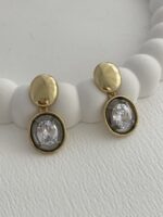 Özel Seri Büyük Zirkon Taş Oval Tasarım Gold Küpe