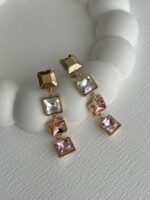 Özel Seri Büyük ZR Model Renkli Taş Gold Küpe