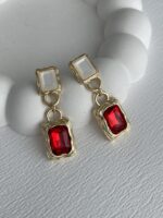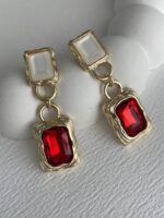 Özel Seri Büyük ZR Model Renkli Taş Gold Küpe