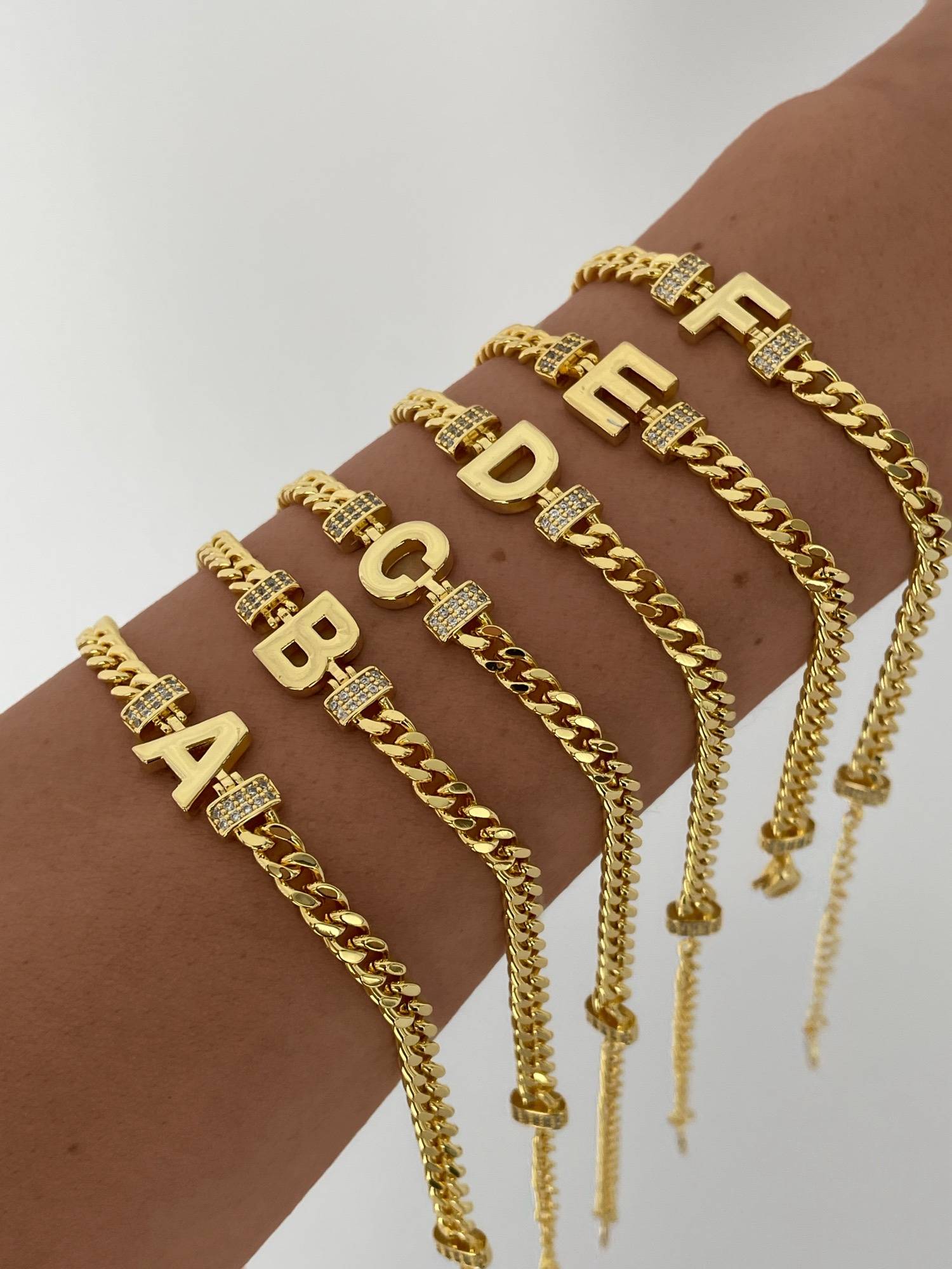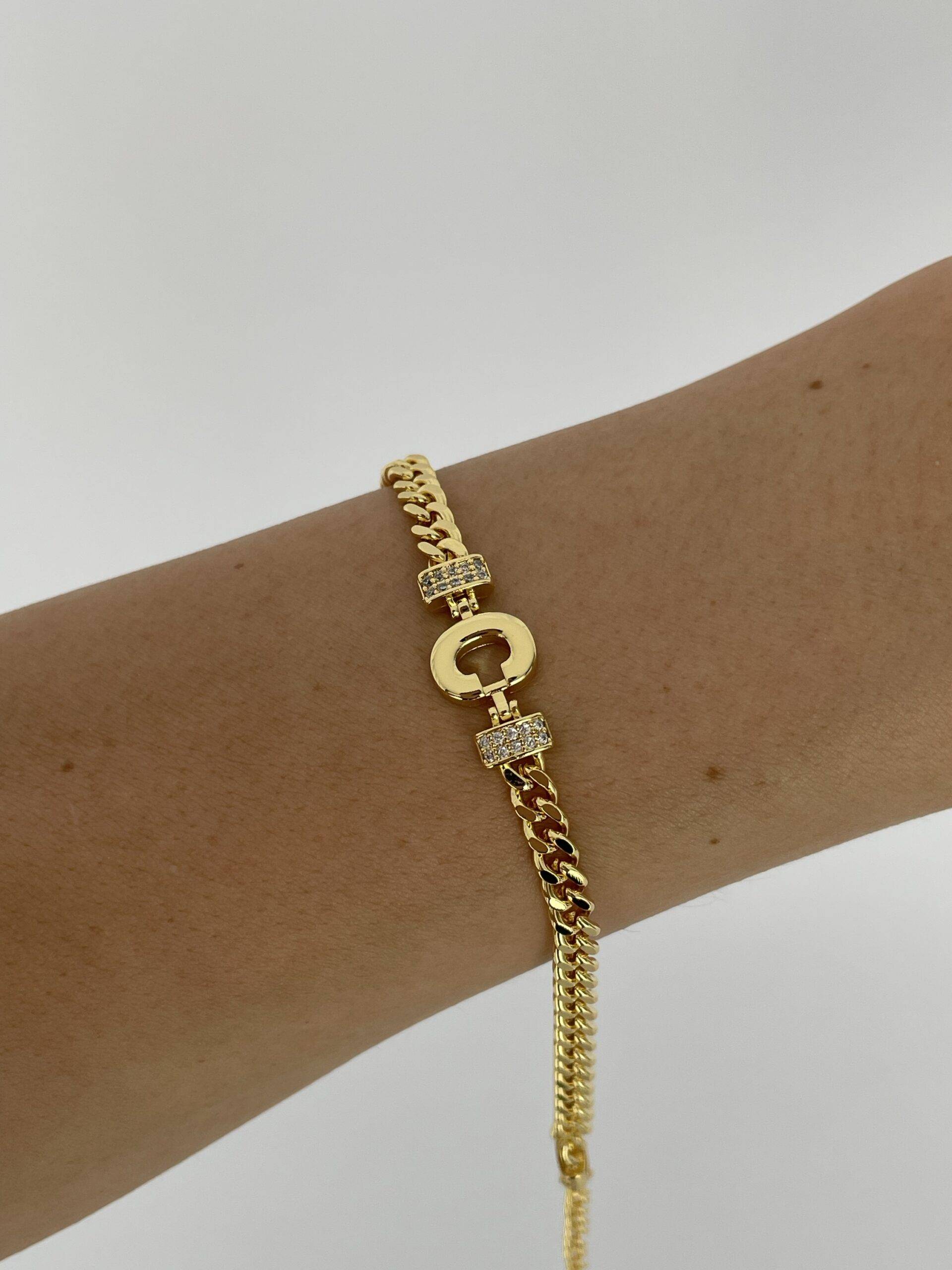 Özel Seri C Harf Zirkon Taşlı Gold Bileklik
