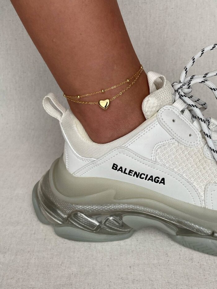 Çelik İkili Zincir ve Kalp Tasarım Gold Halhal