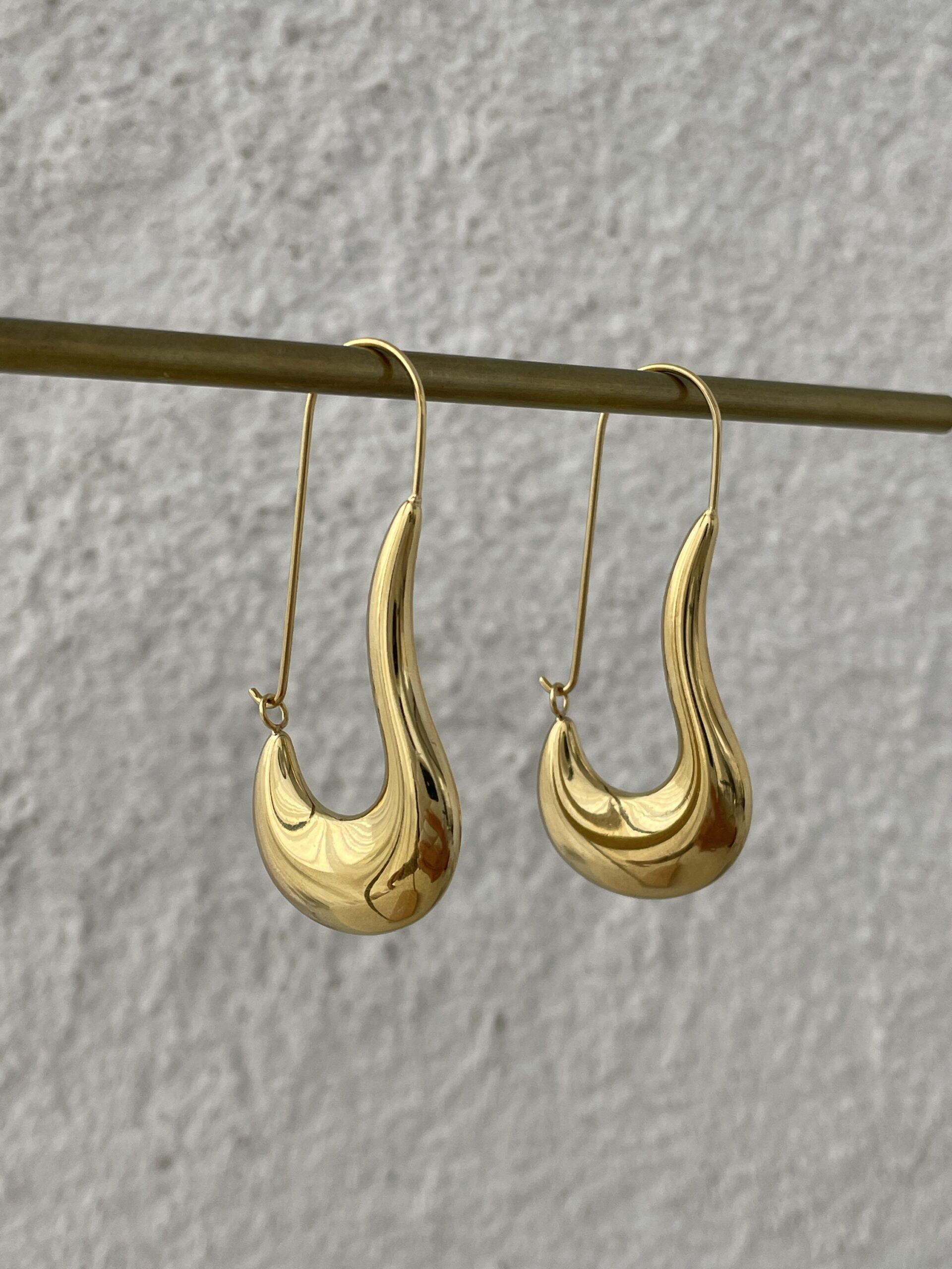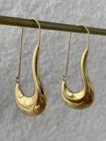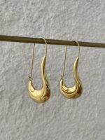 Çelik Çengelli İğne Tasarım Büyük Gold Küpe