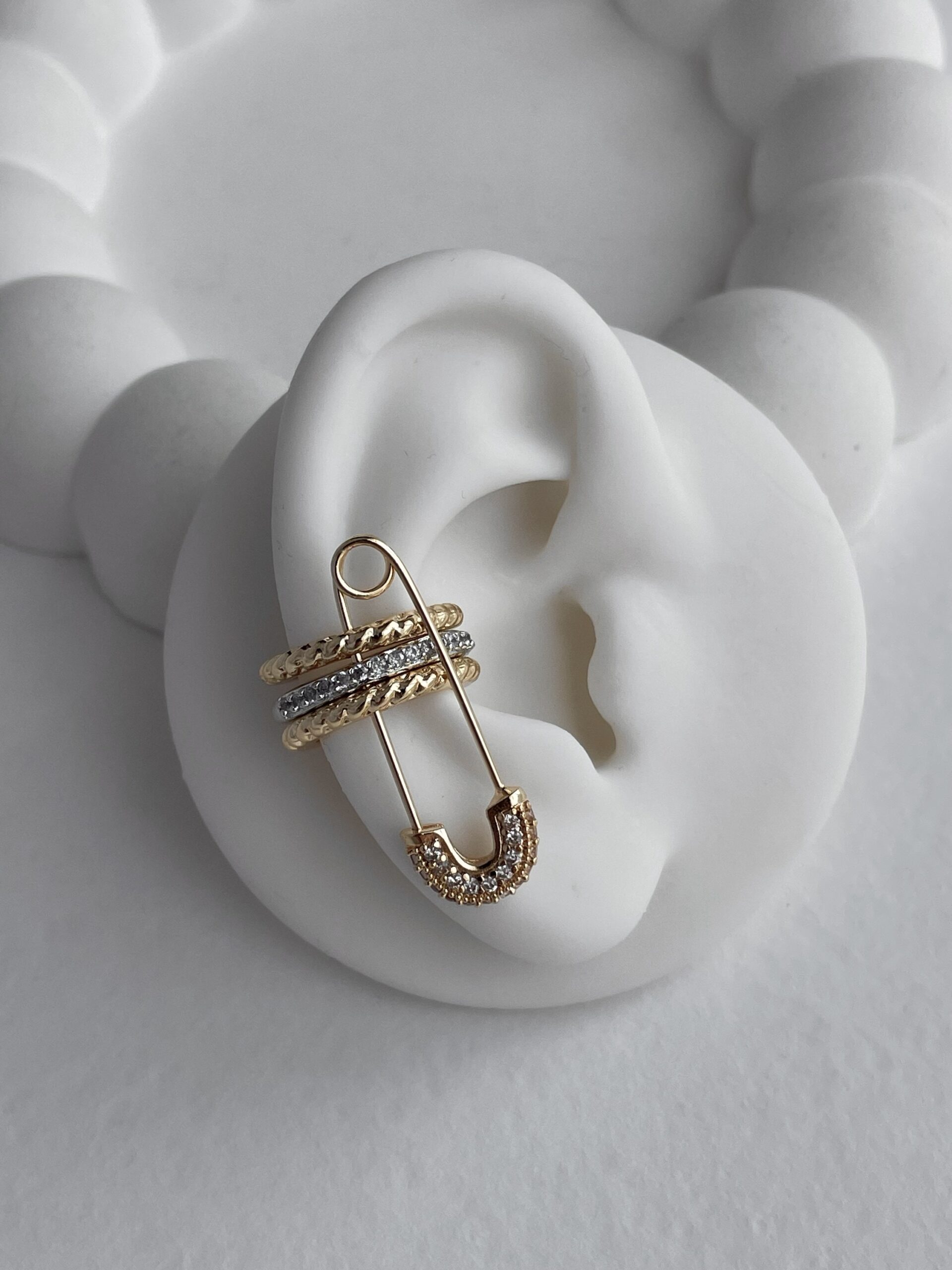 Özel Seri Çengelli İğne Tasarım Gold Earcuff