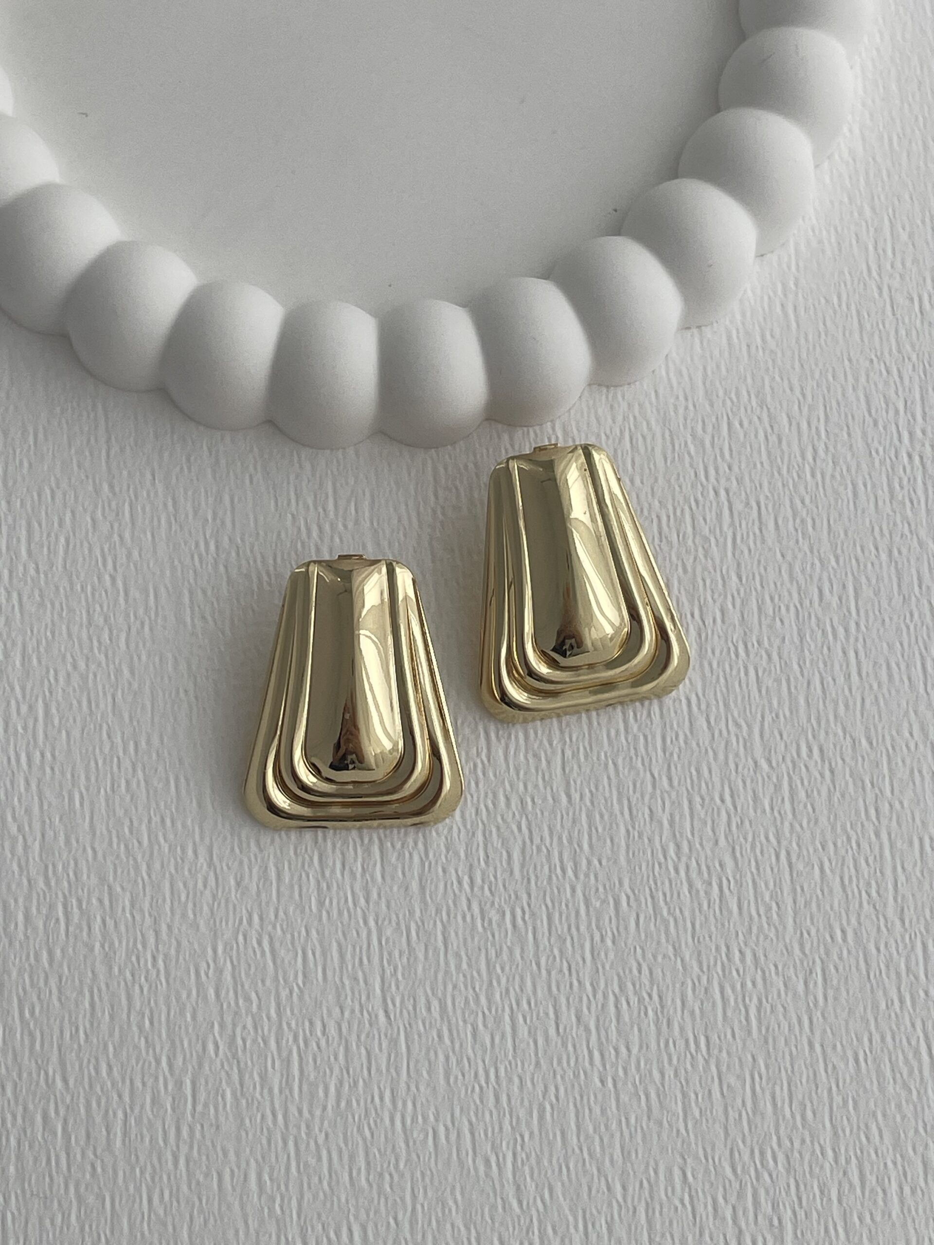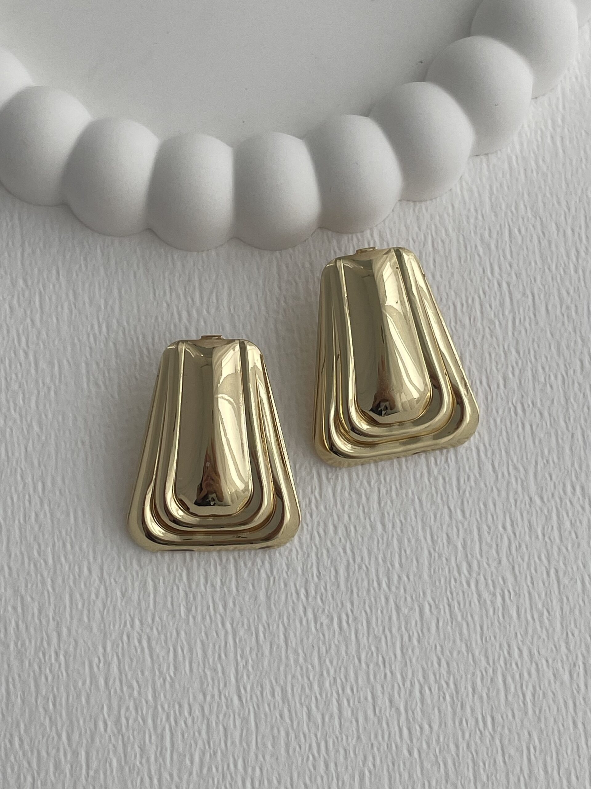 Özel Seri Çerçeve Detay Geometrik Tasarım Gold Küpe