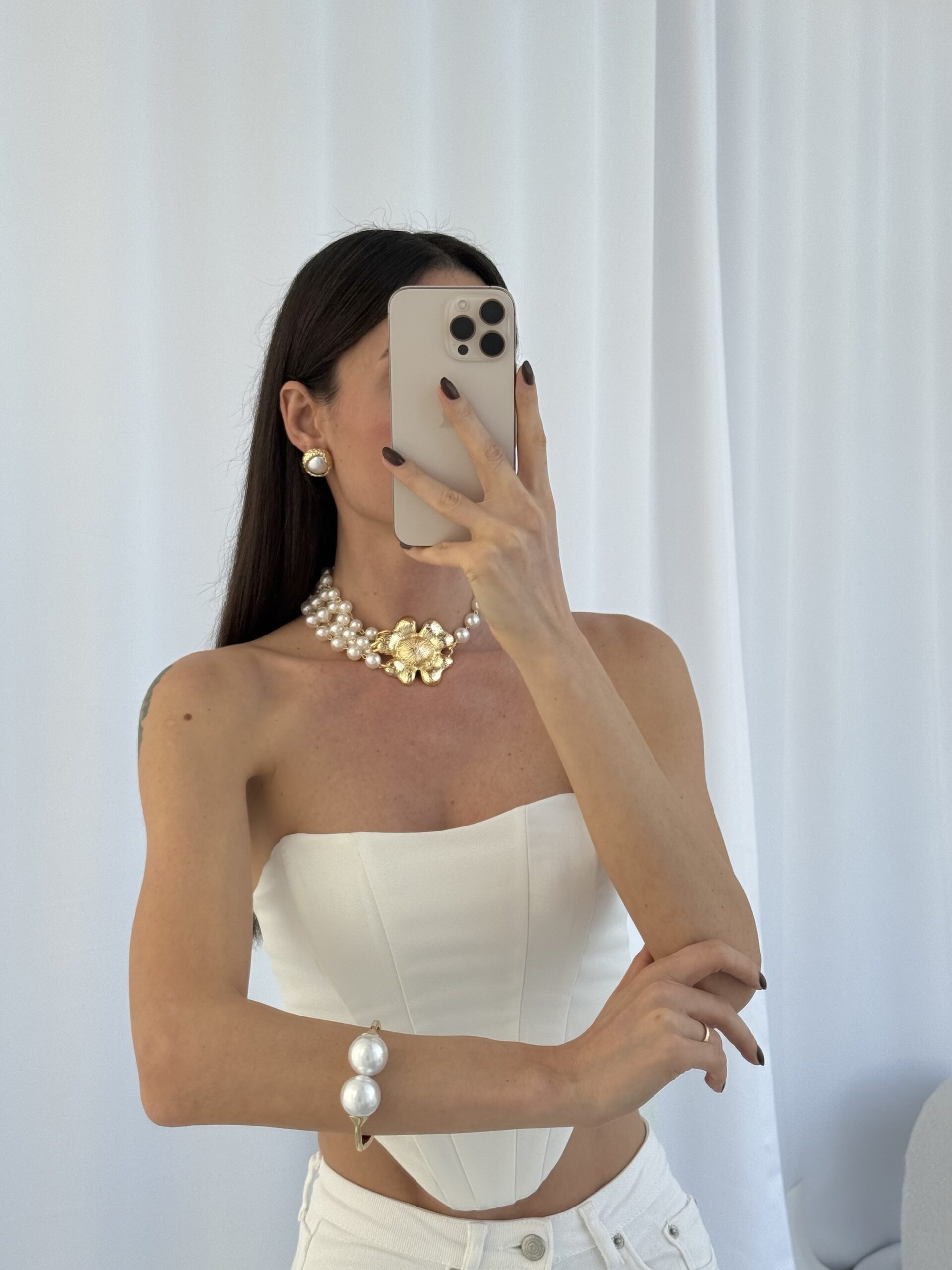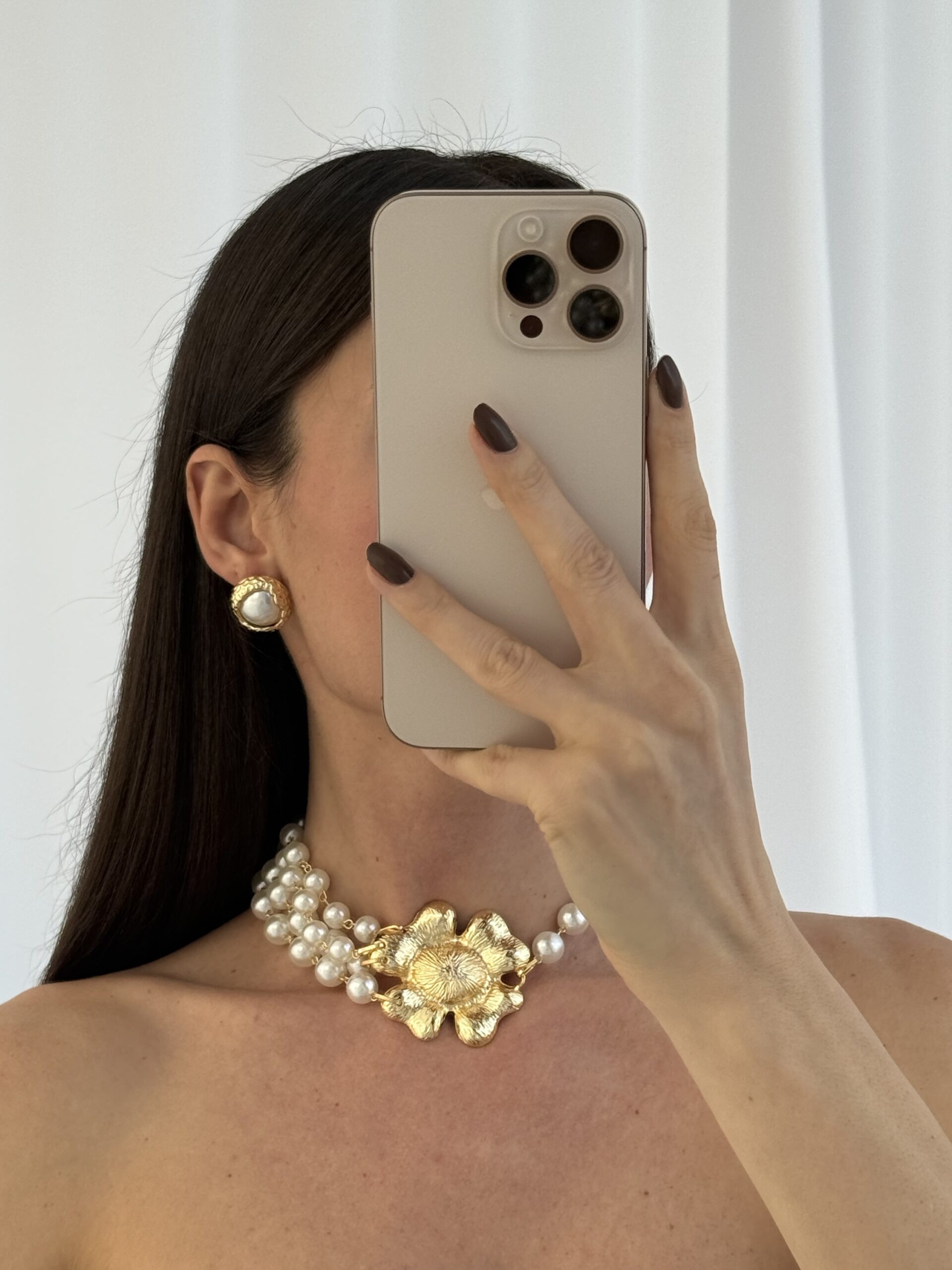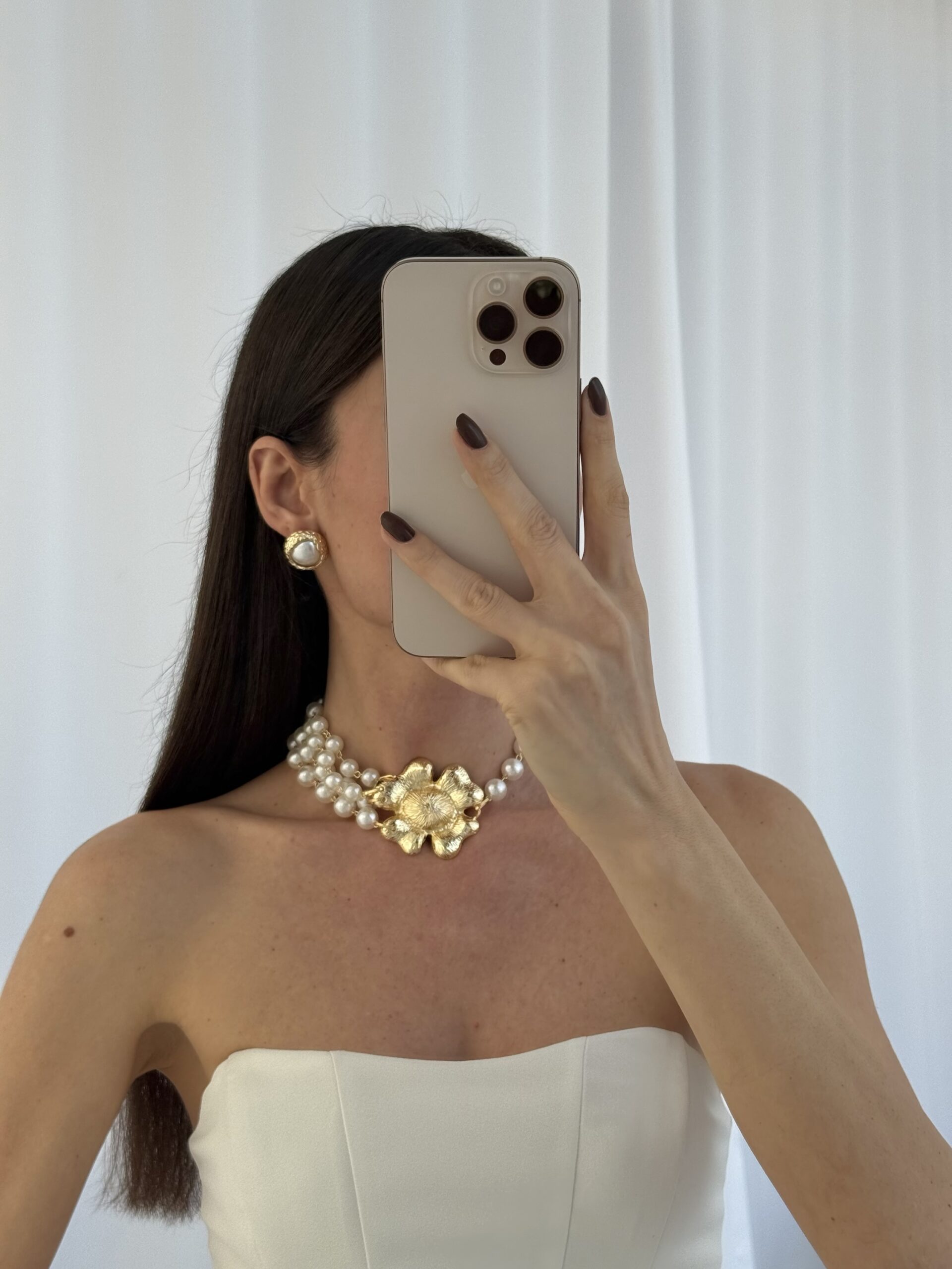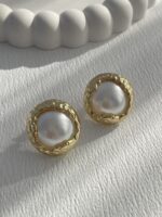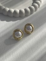 Özel Seri Çevresi Desenli İnci Detay Gold Küpe