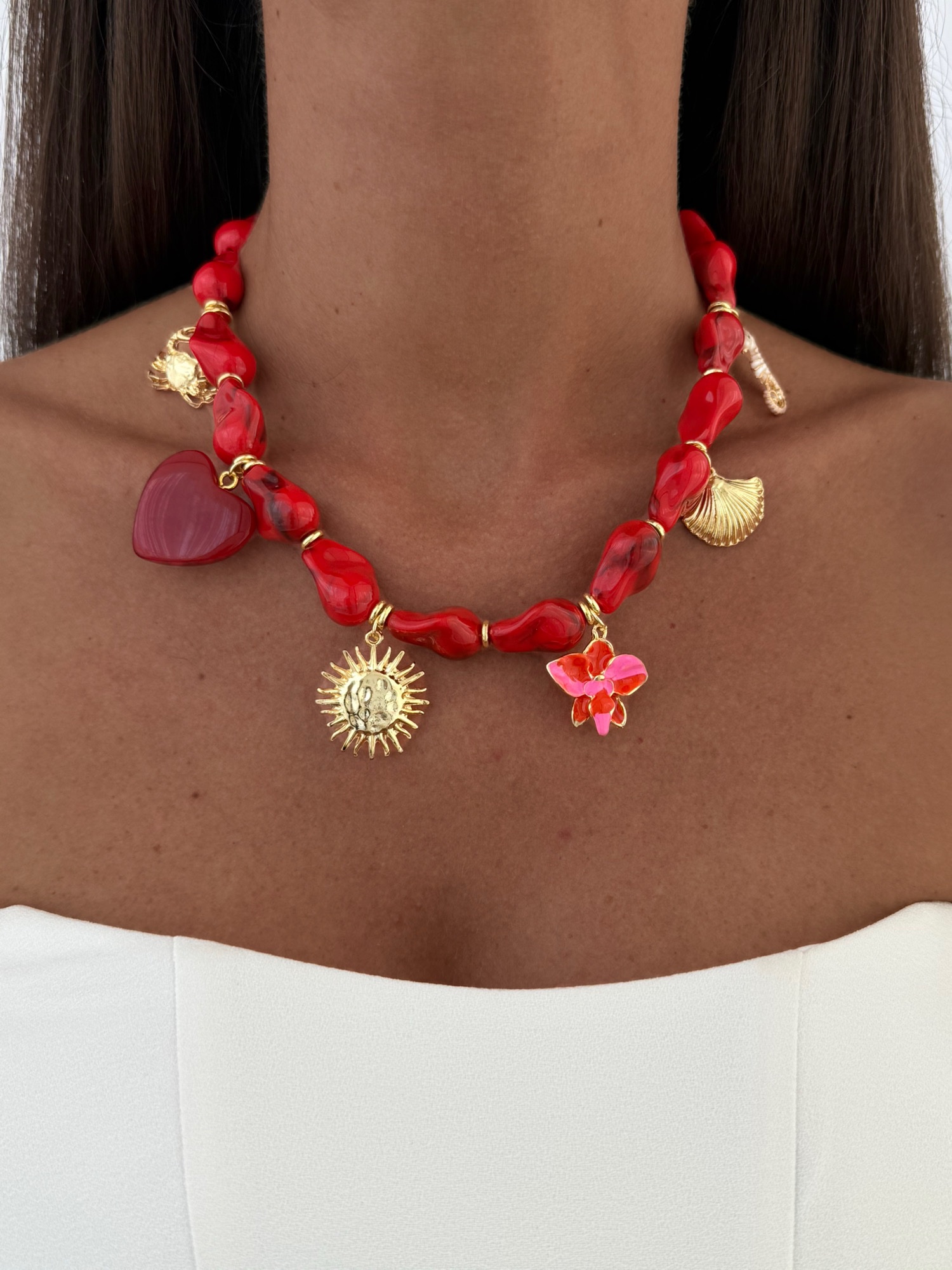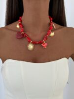 Özel Seri Charm Detay Kırmızı Barok Akrilik Boncuk Kolye