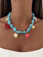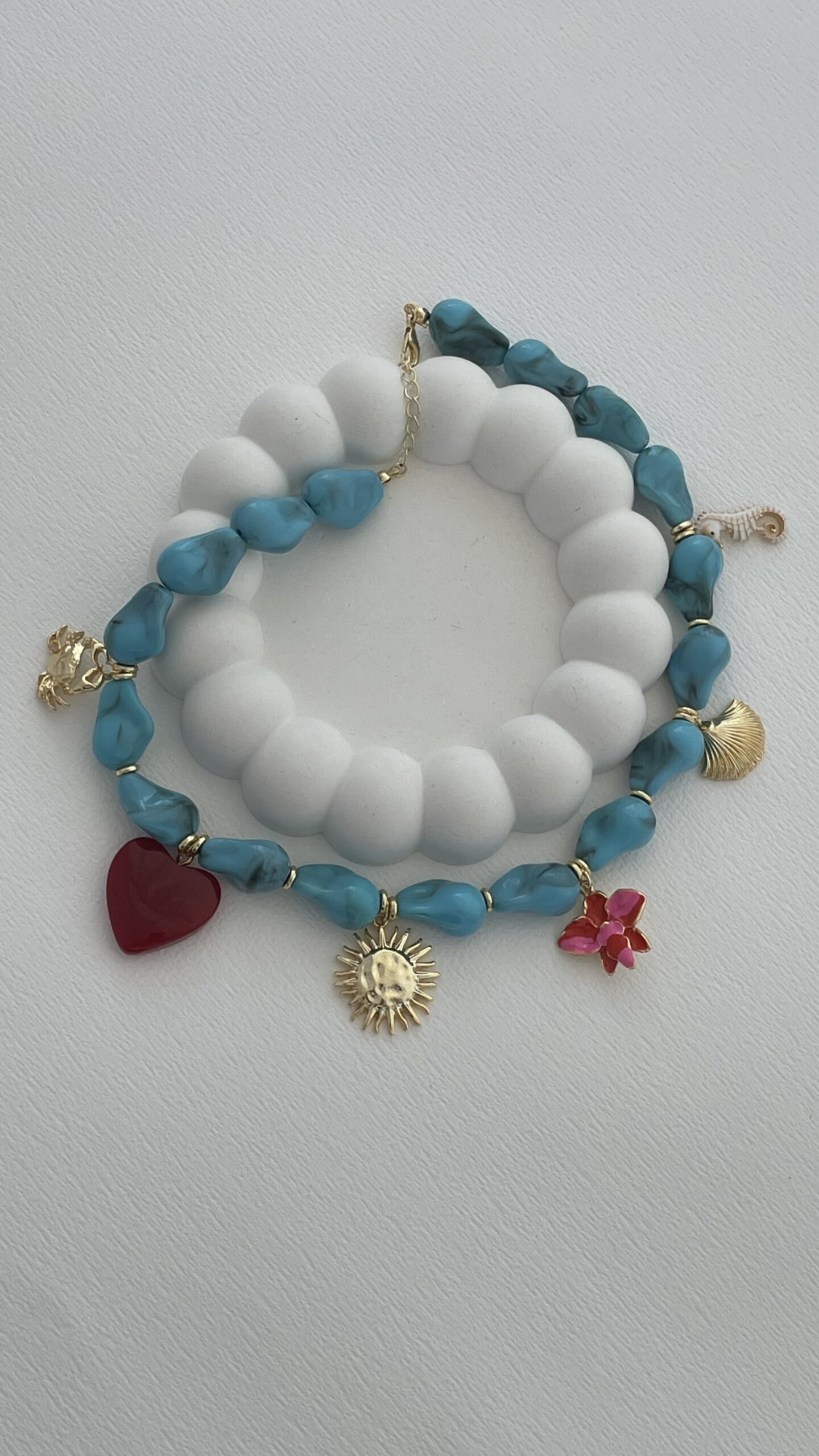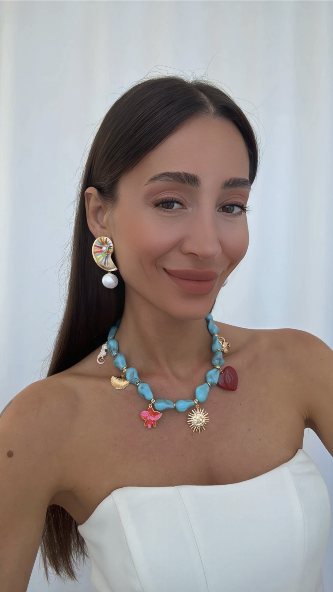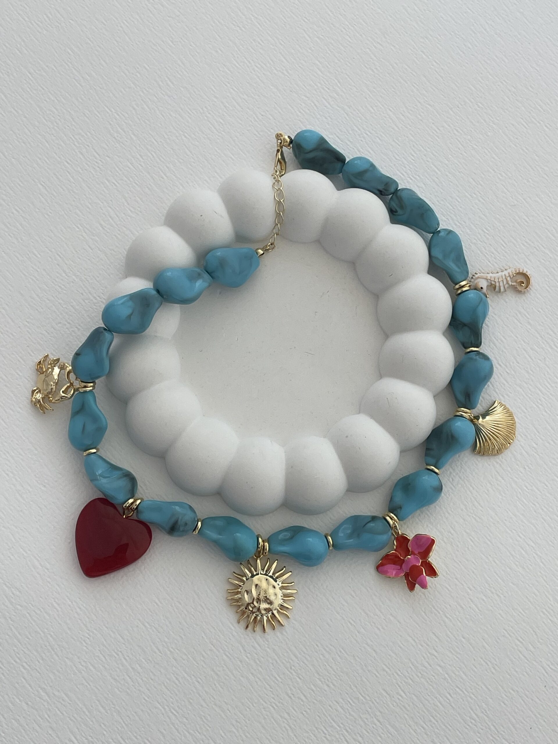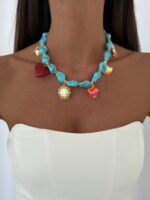 Özel Seri Charm Detay Mavi Barok Akrilik Boncuk Kolye