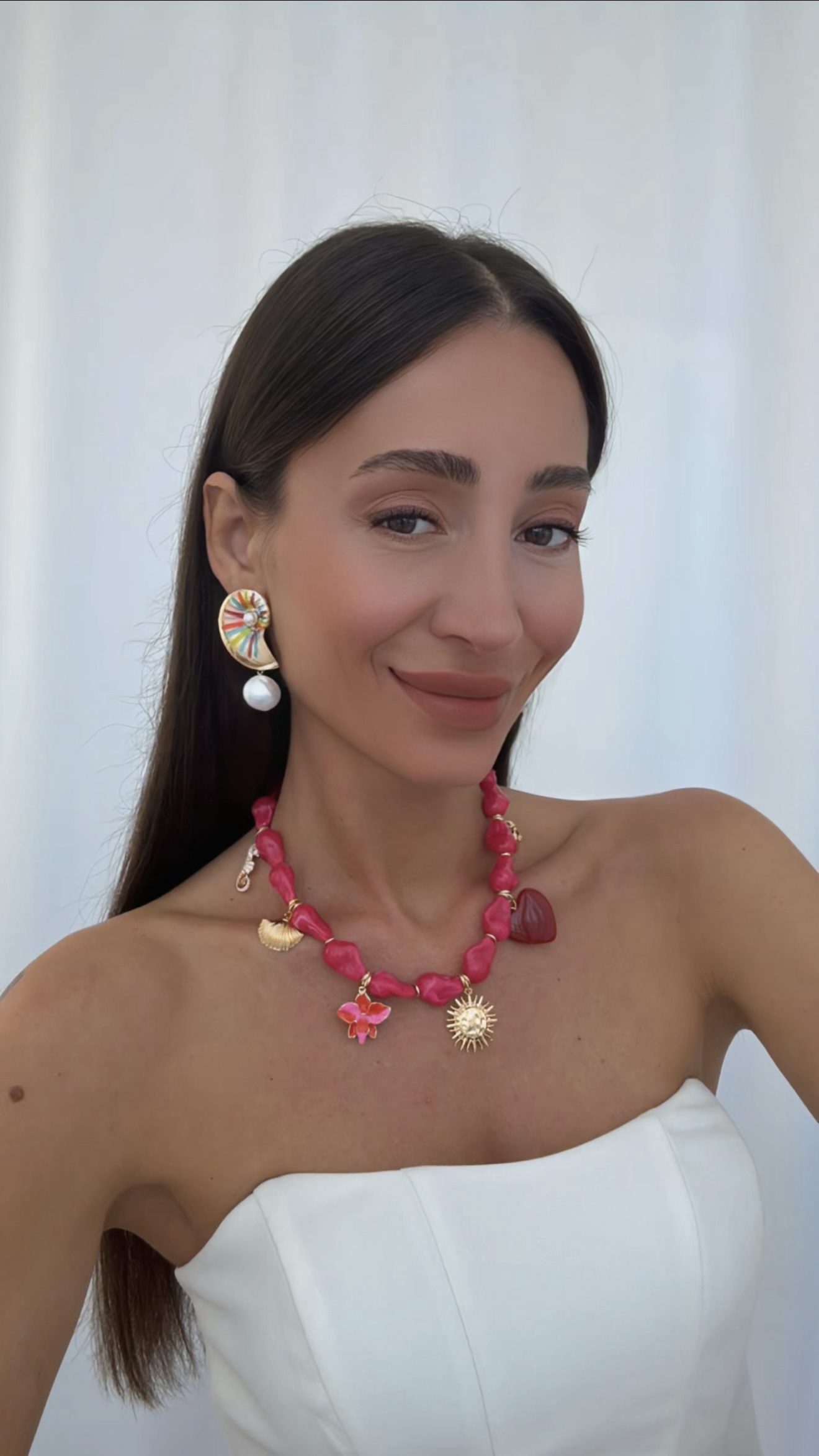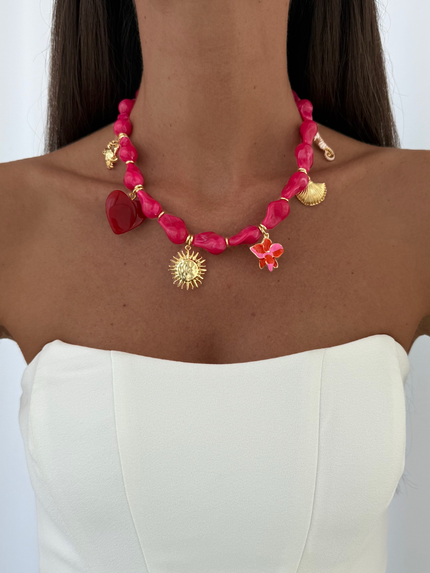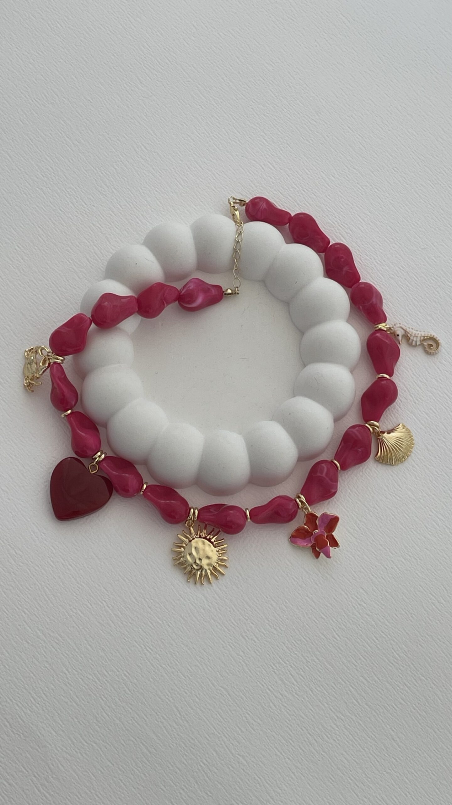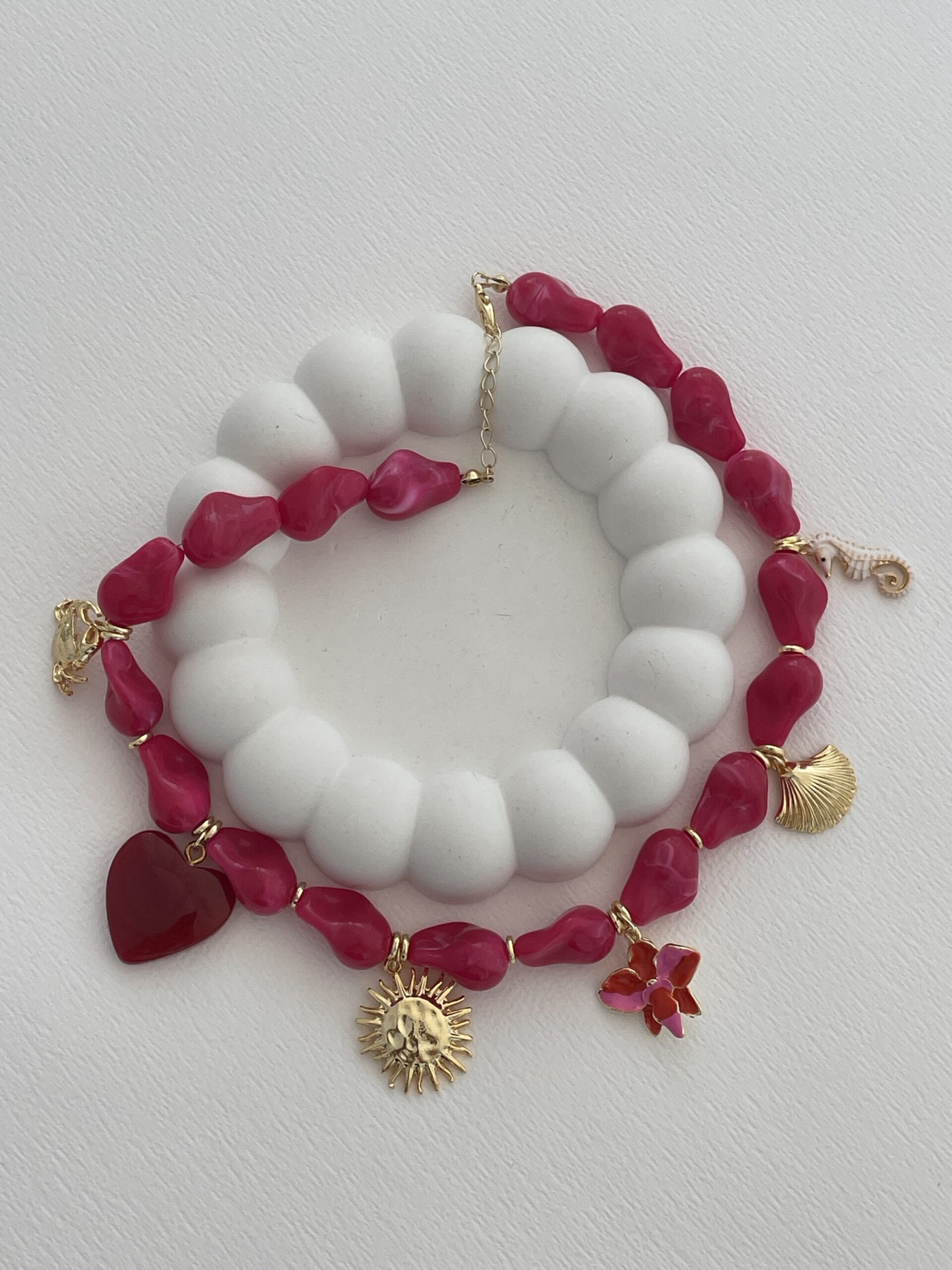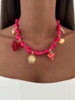 Özel Seri Charm Detay Pembe Barok Akrilik Boncuk Kolye