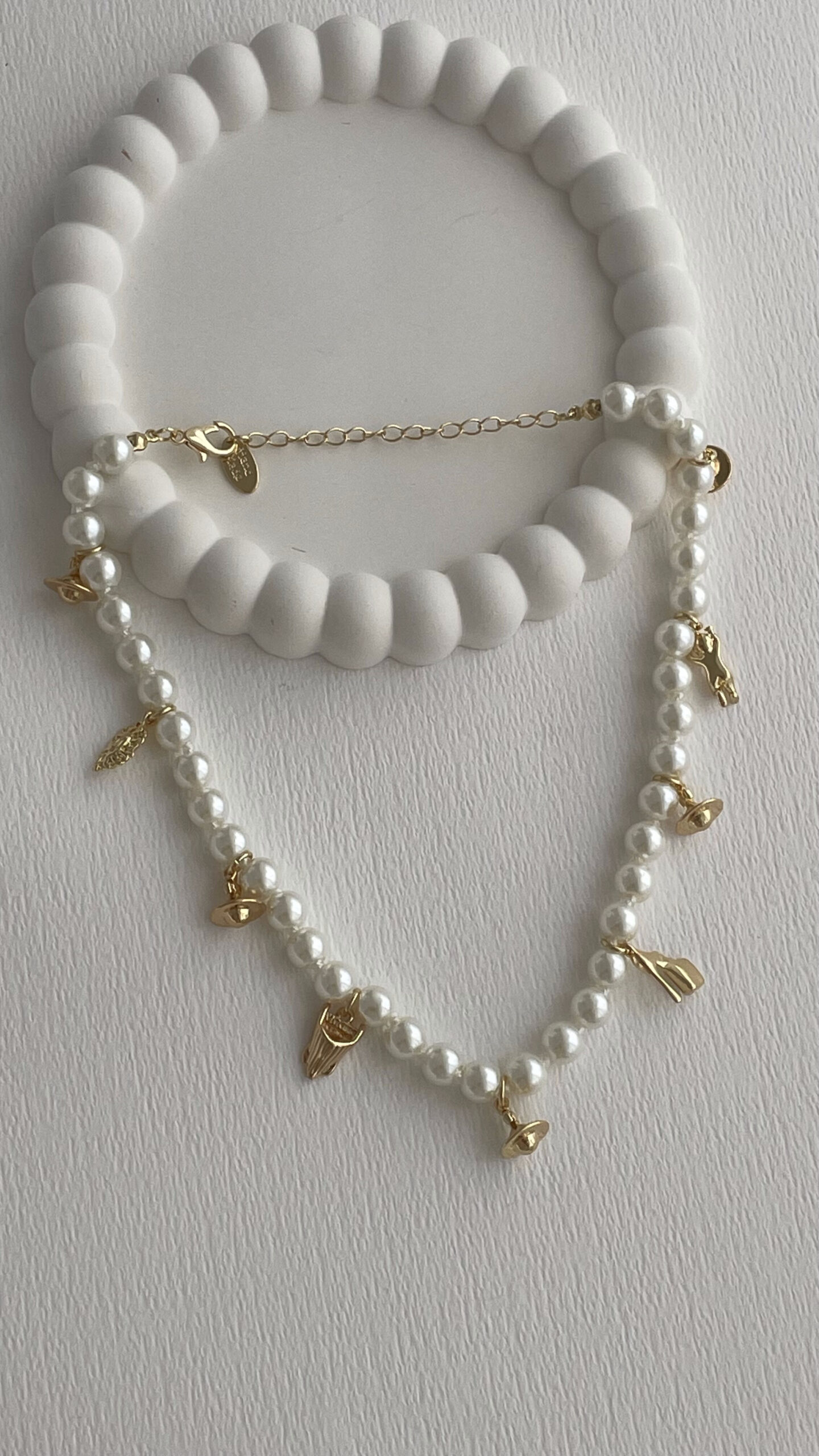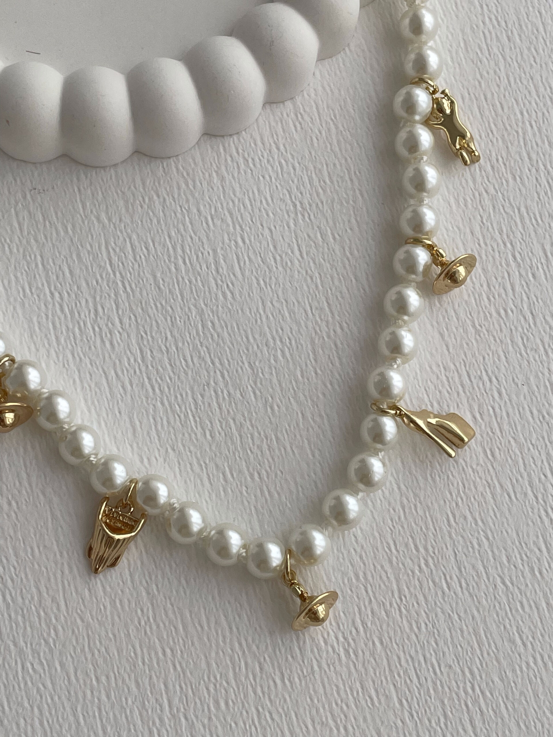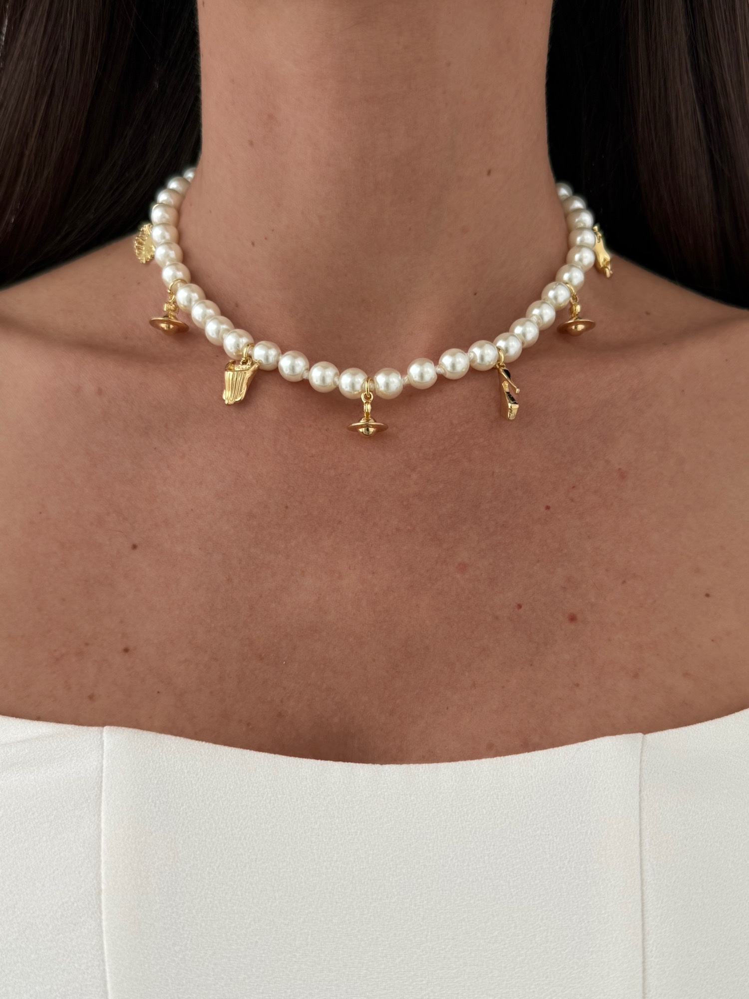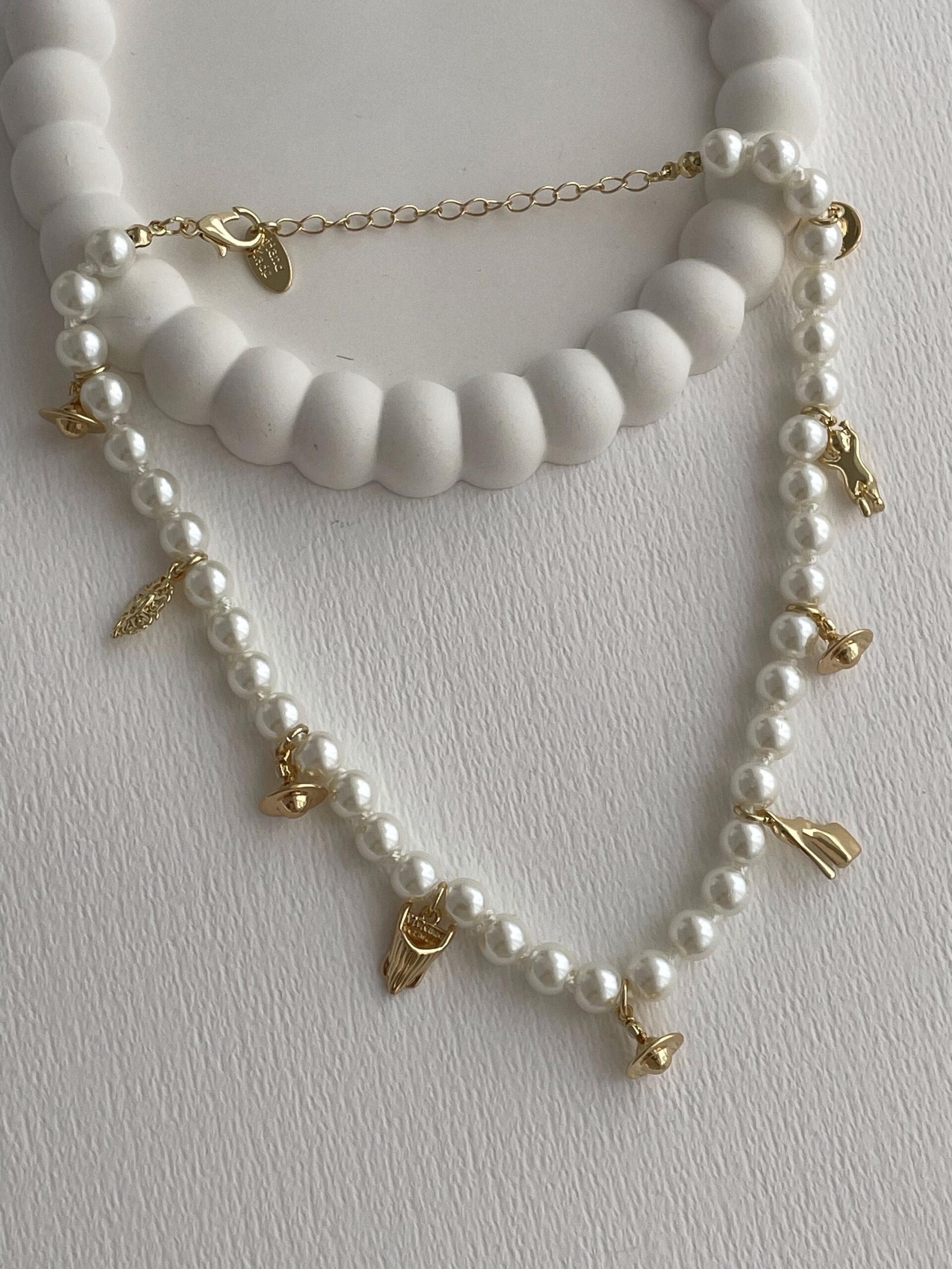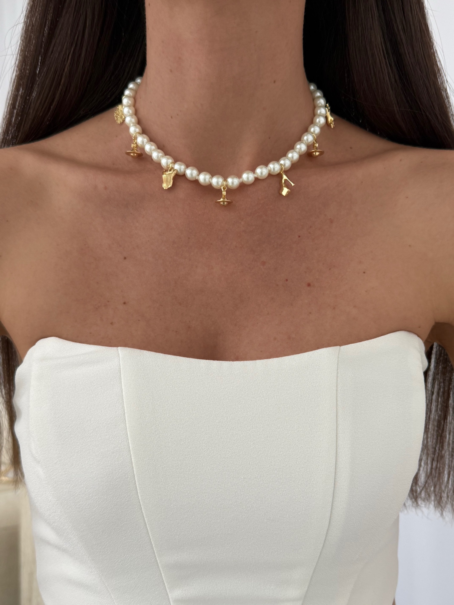 Özel Seri Charm Detaylı İnci Tasarım Gold Kolye