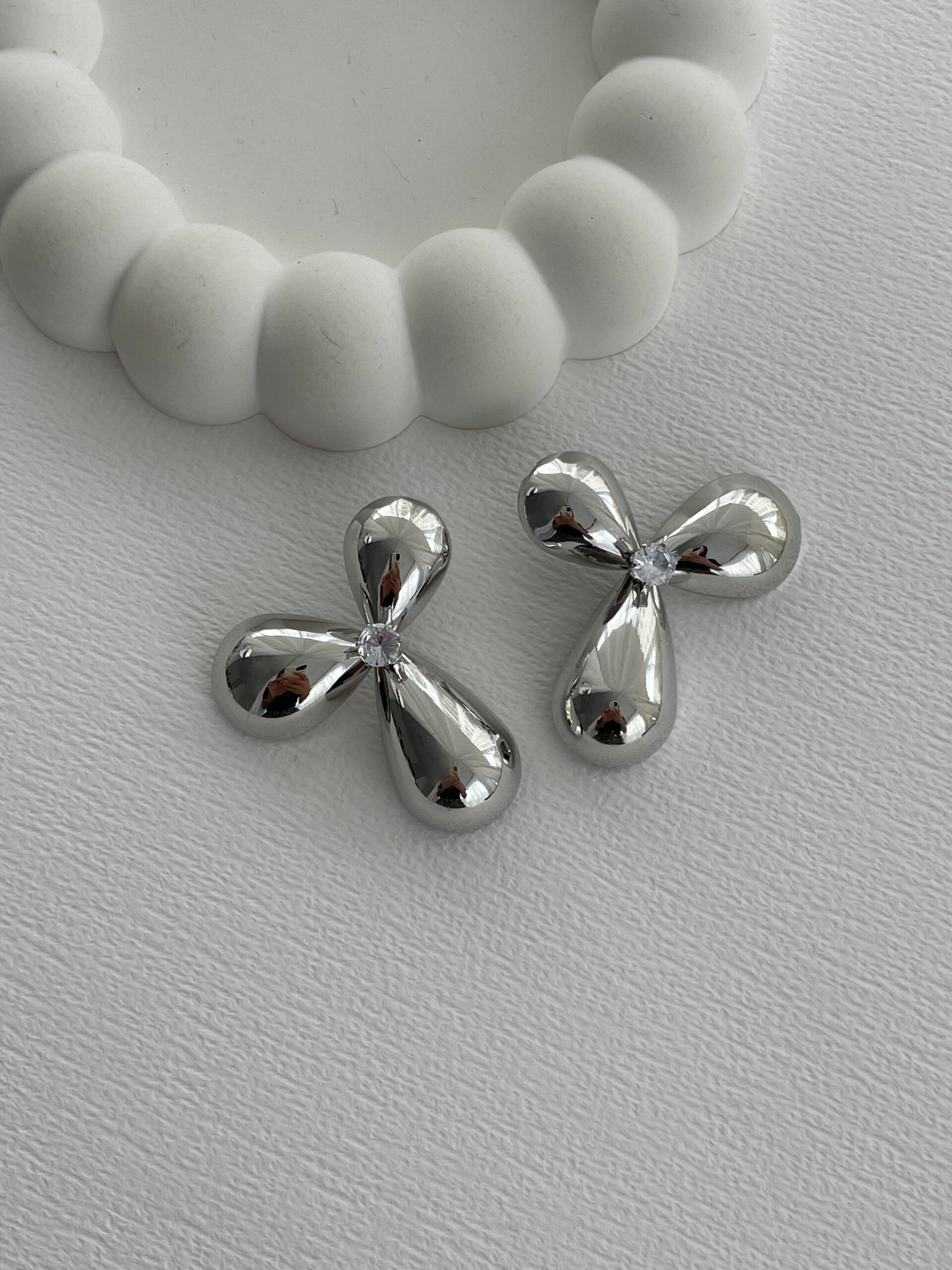 Özel Seri Tek Taş Gümüş Çiçek Küpe