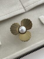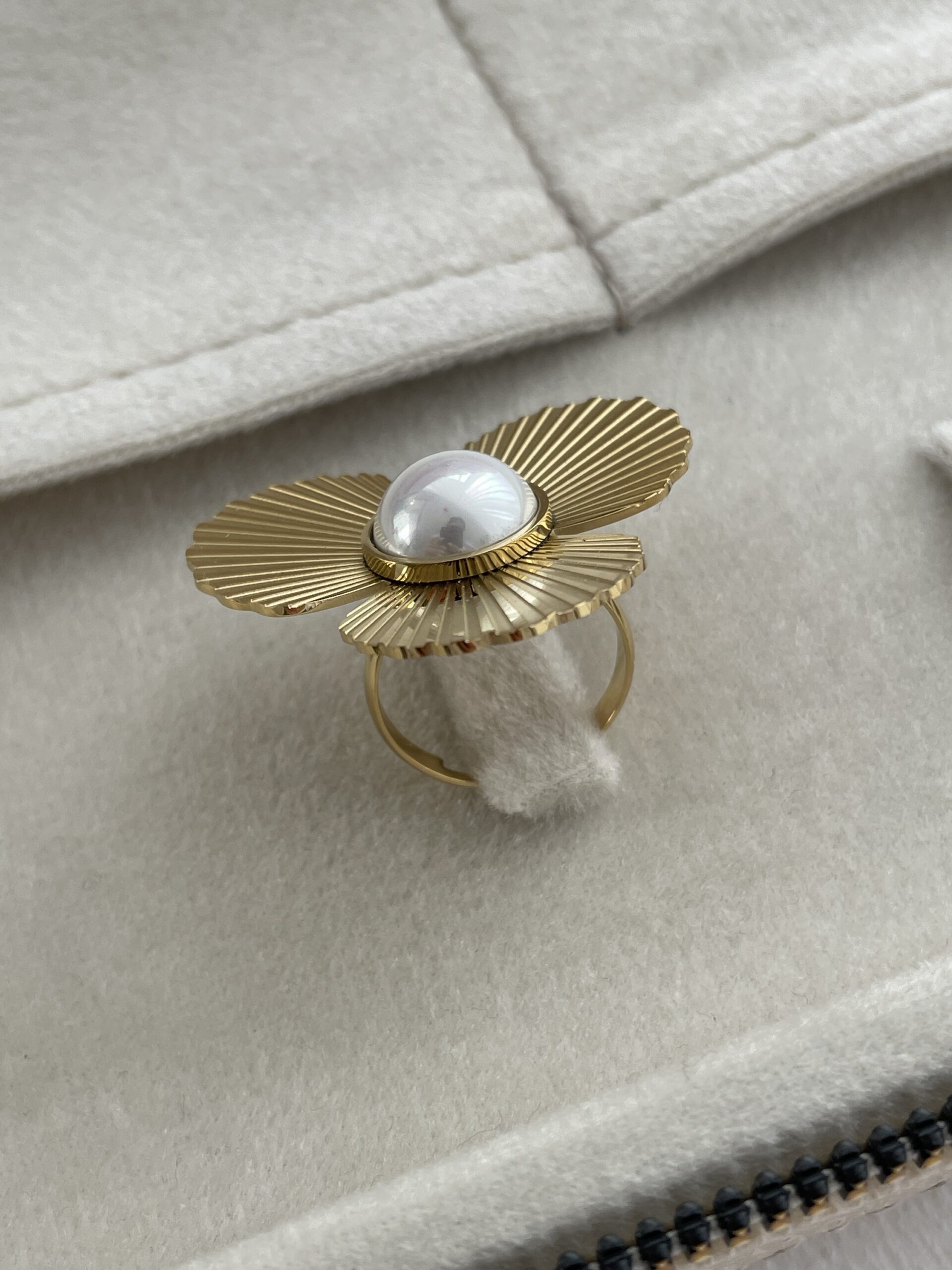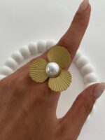Özel Seri Çiçek Desen İnci Detaylı Gold Ayarlanabilir Yüzük