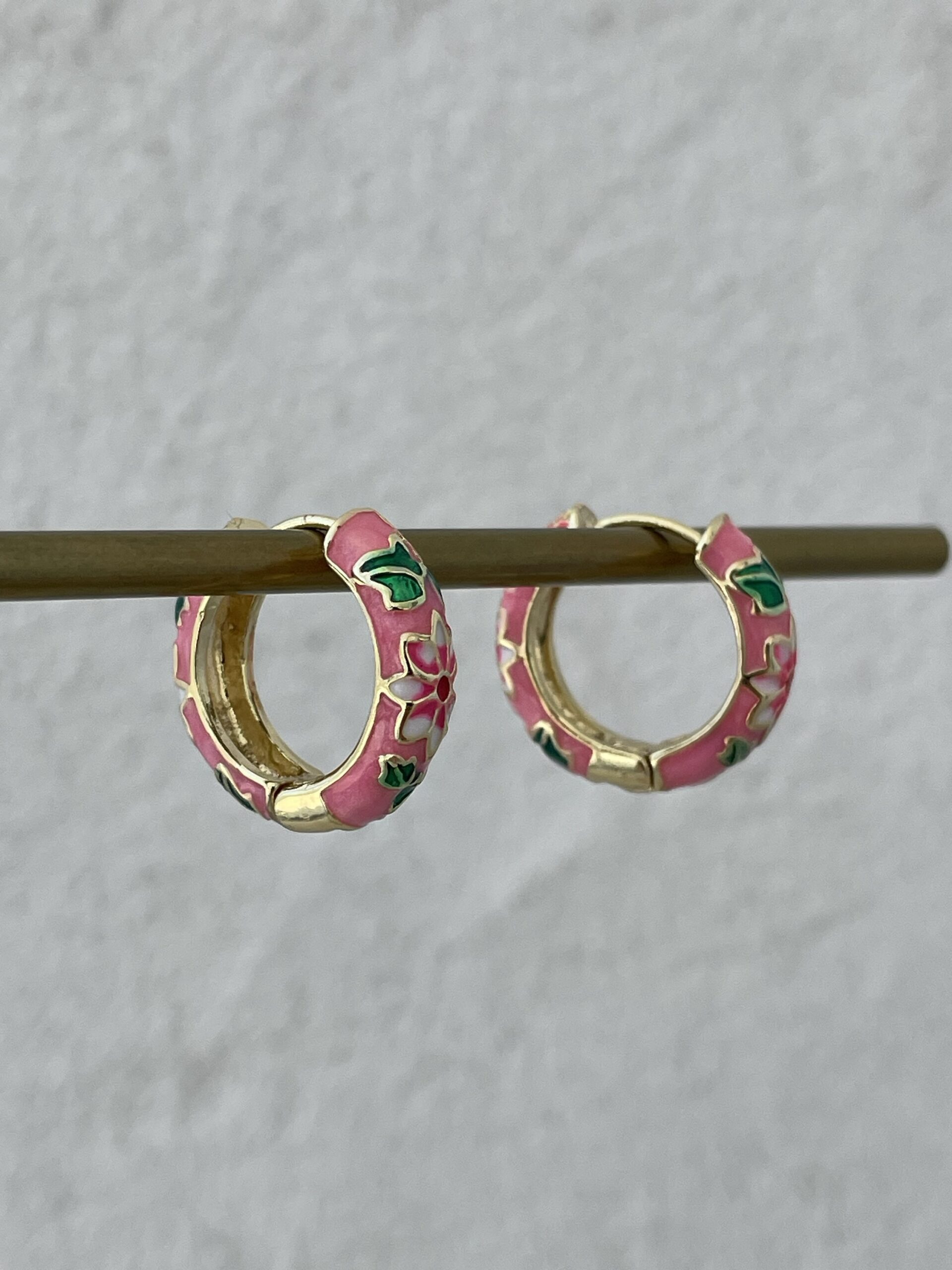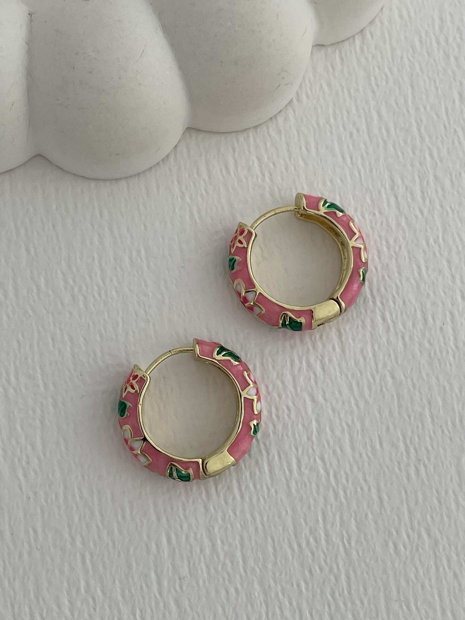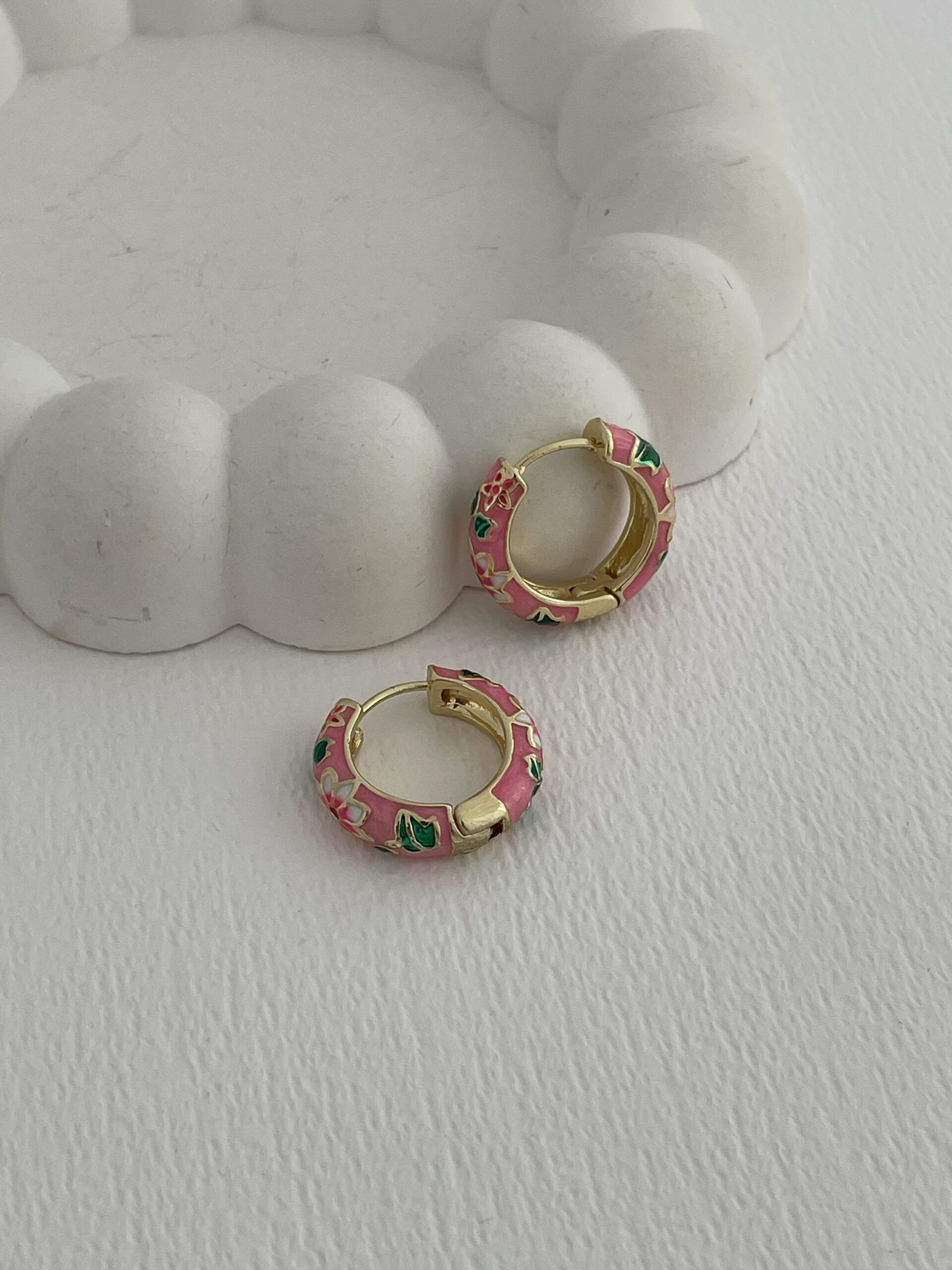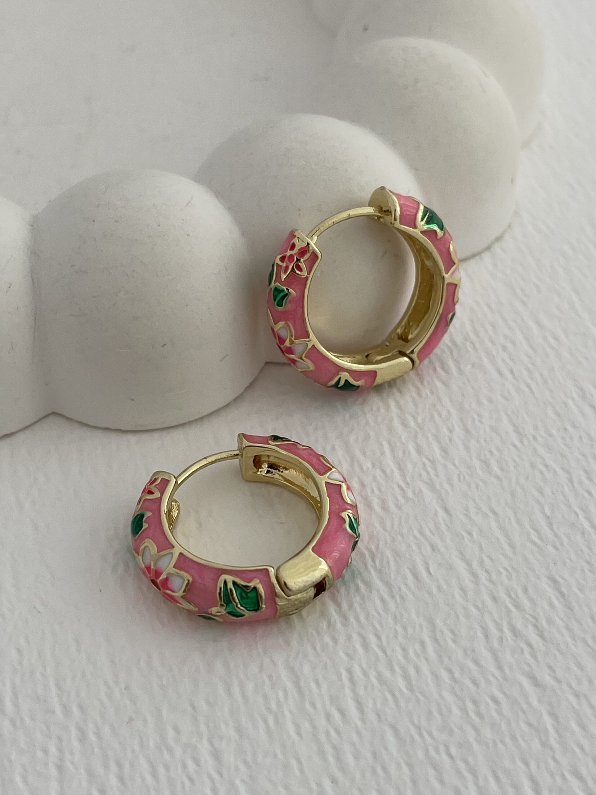 Özel Seri Çiçek Kabartma Desen Pembe Gold Küpe
