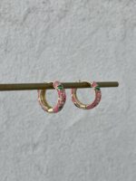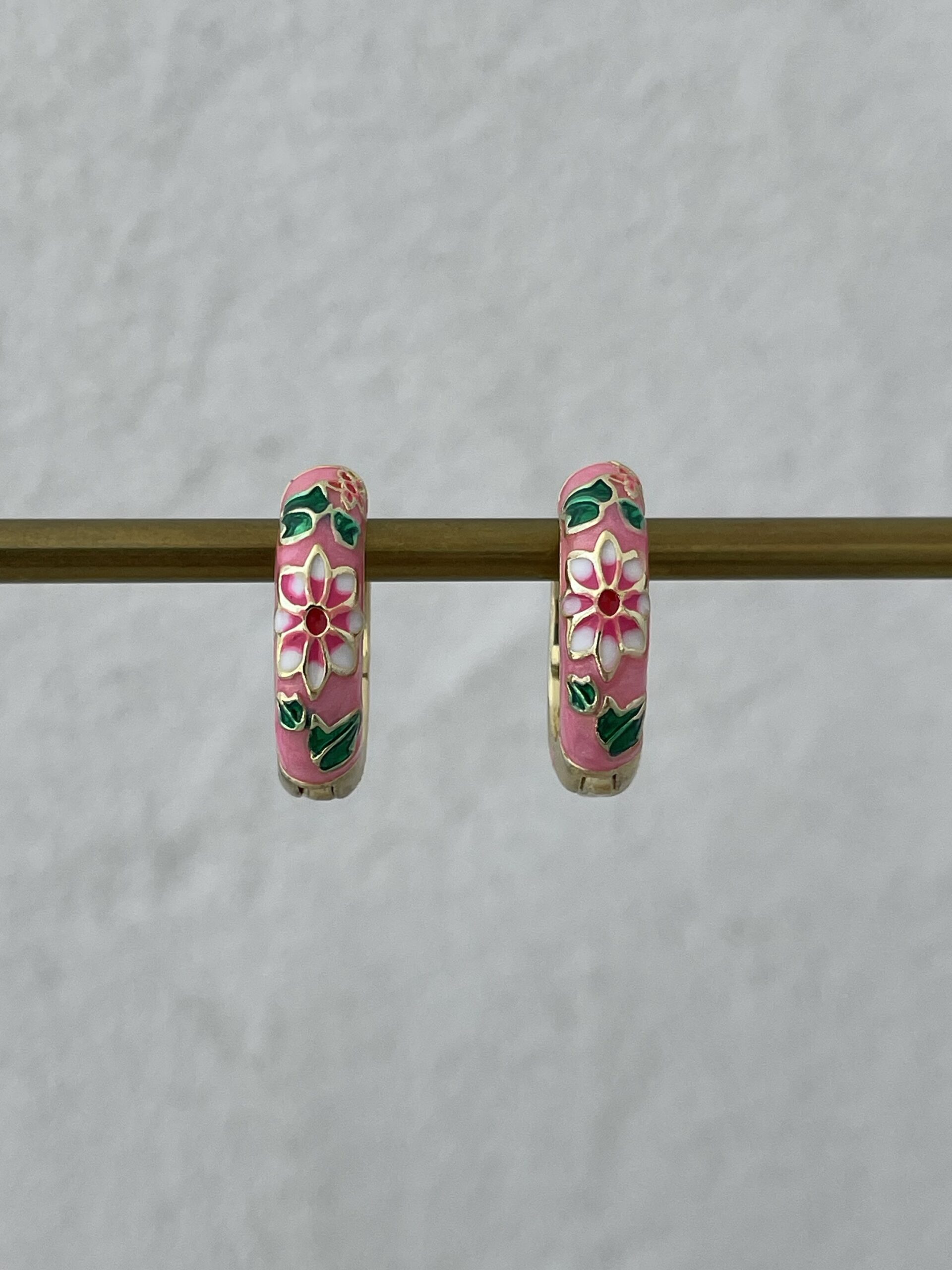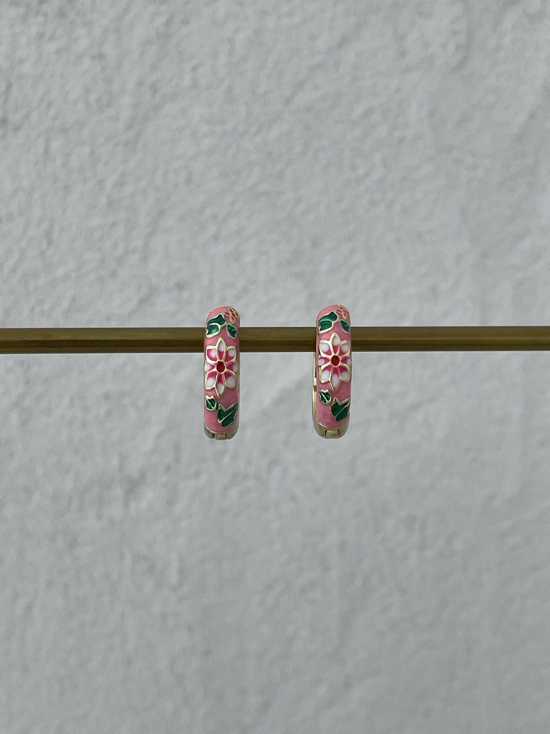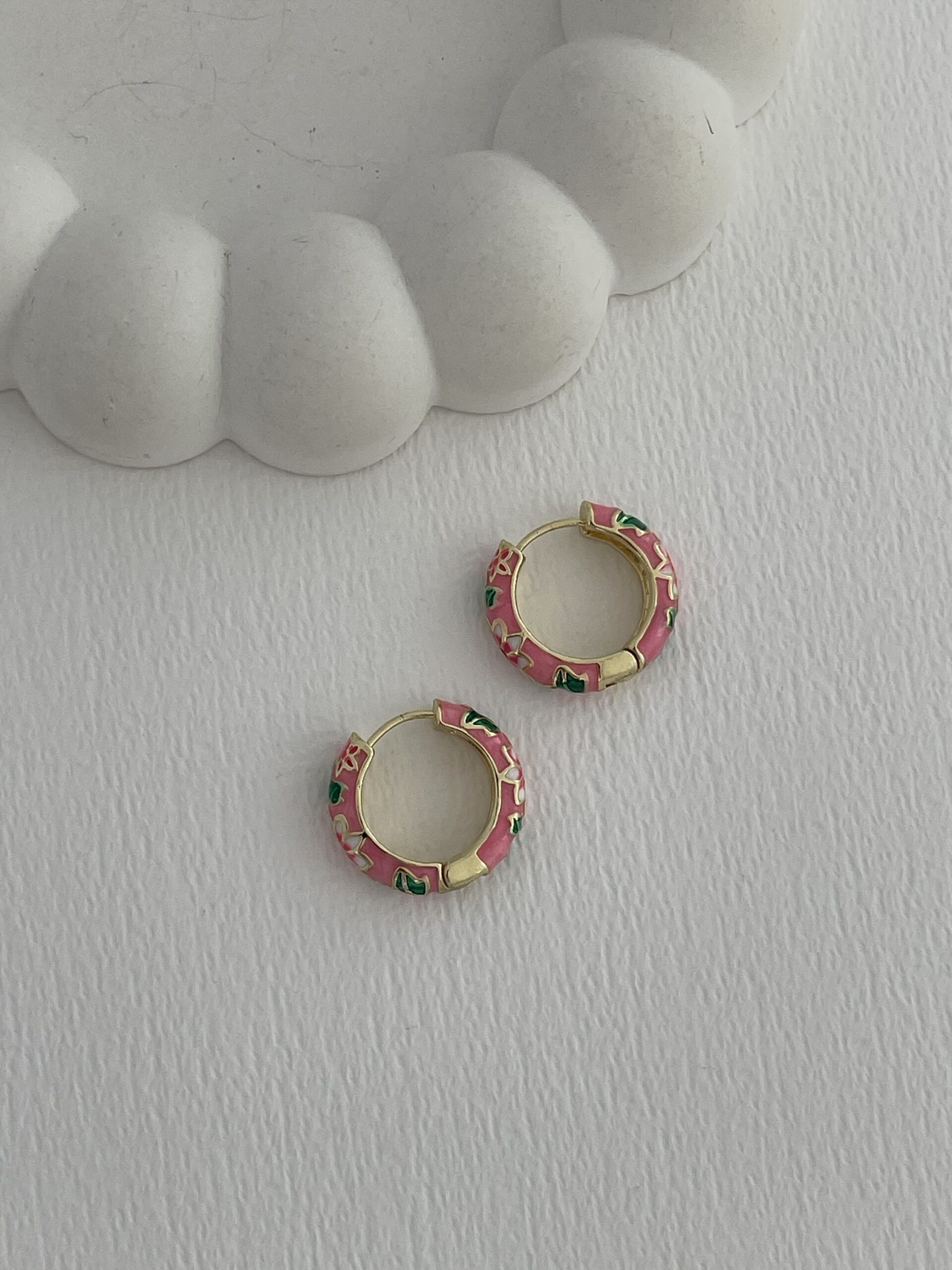 Özel Seri Çiçek Kabartma Desen Pembe Gold Küpe