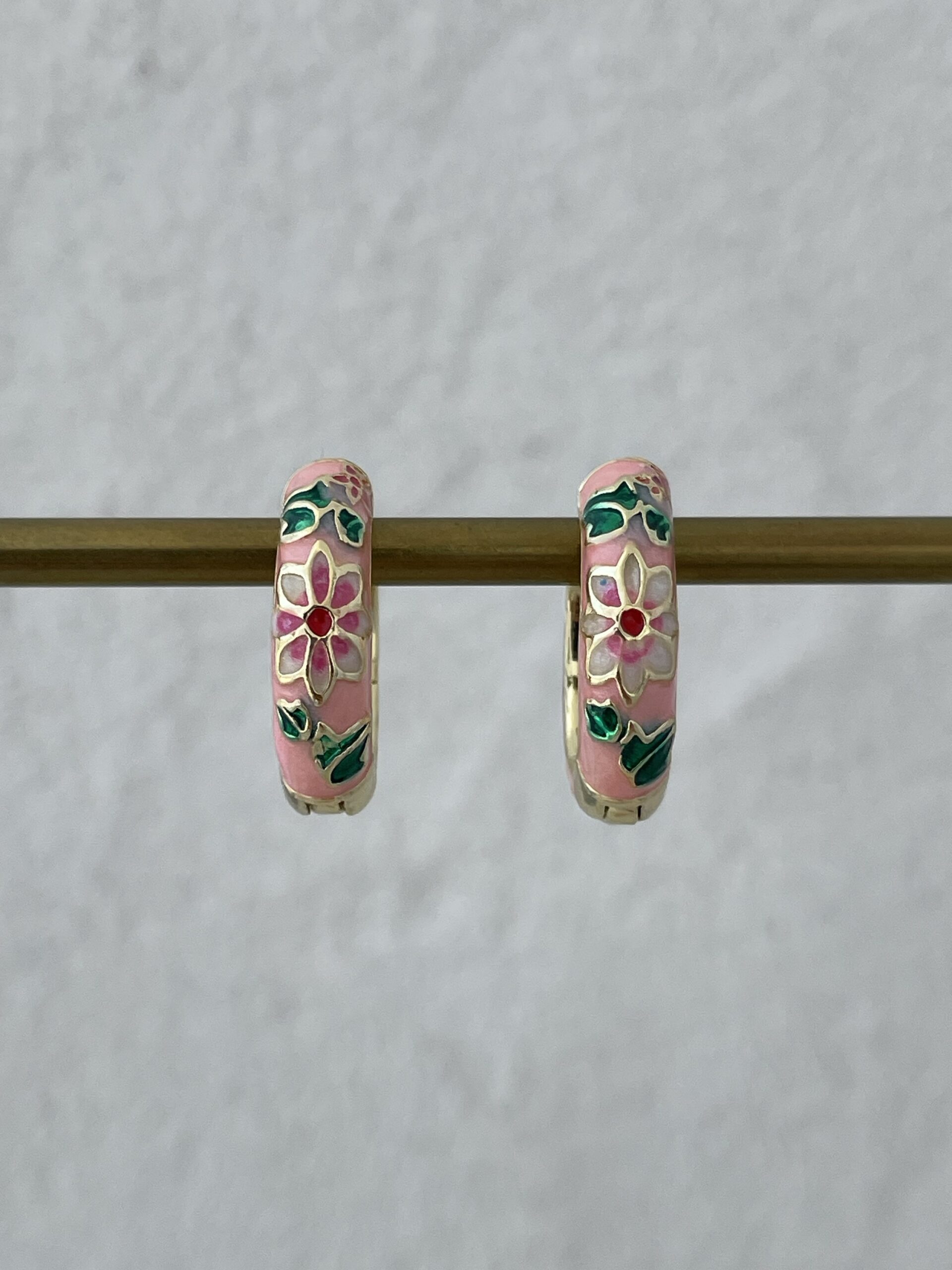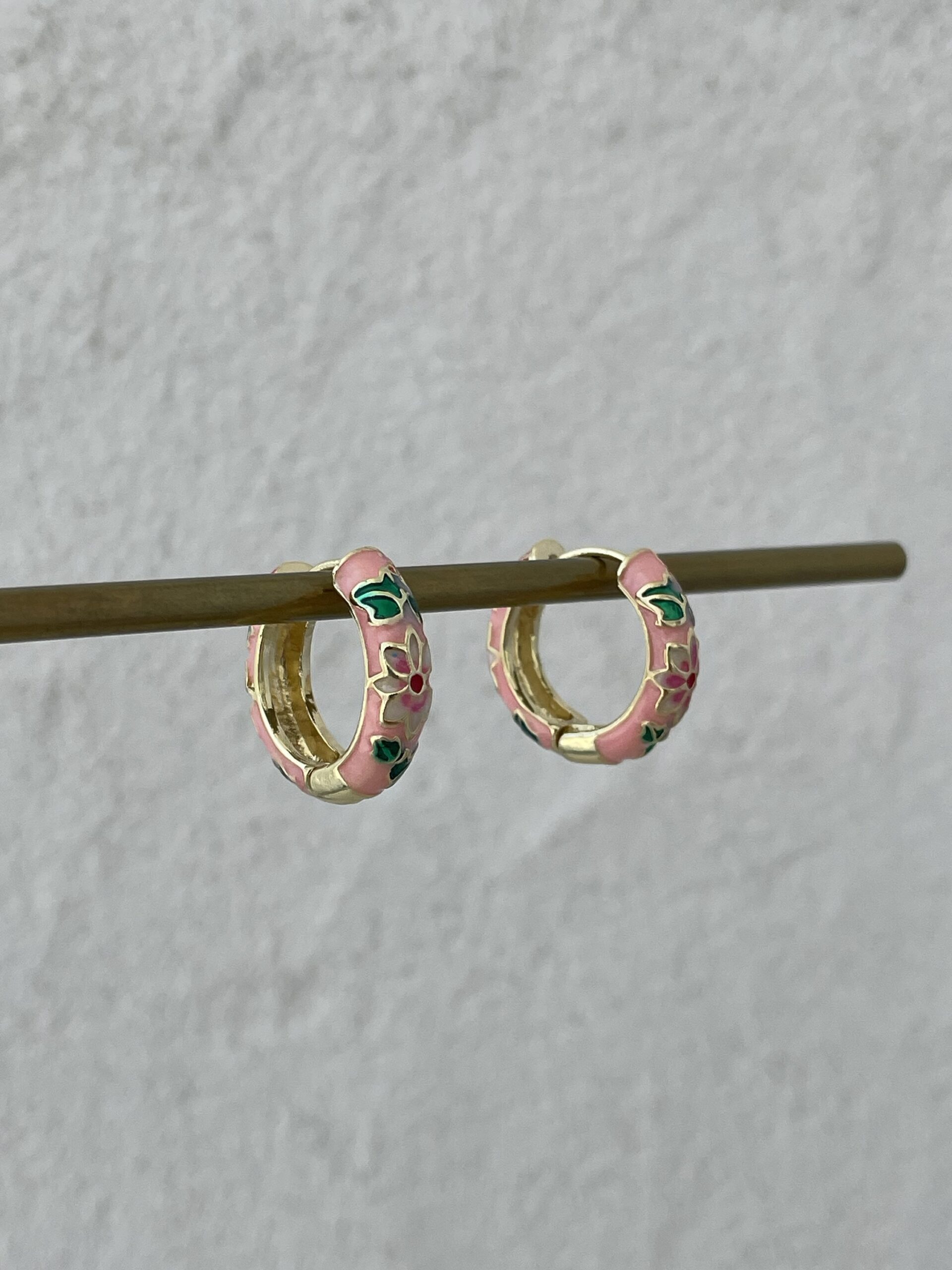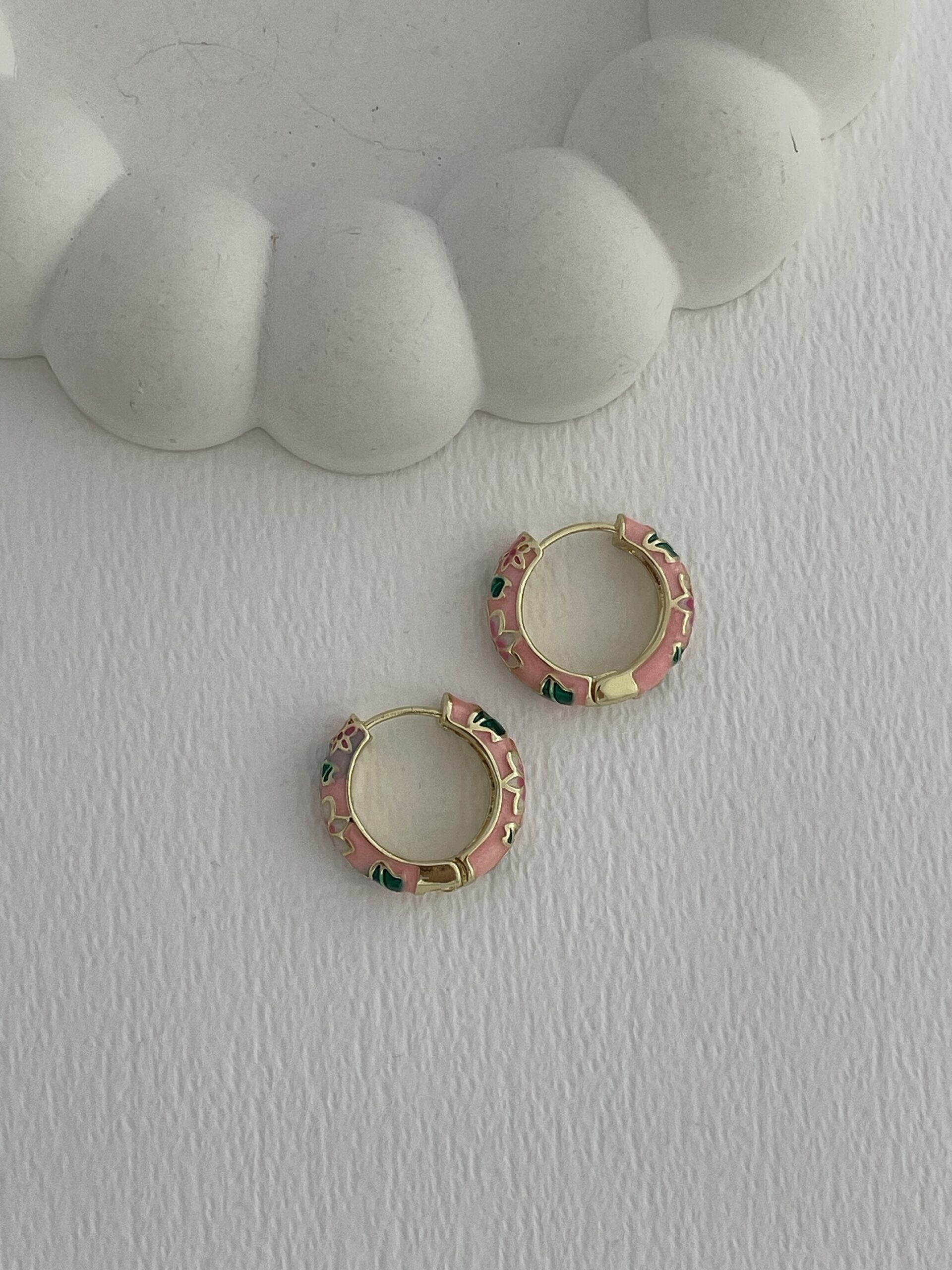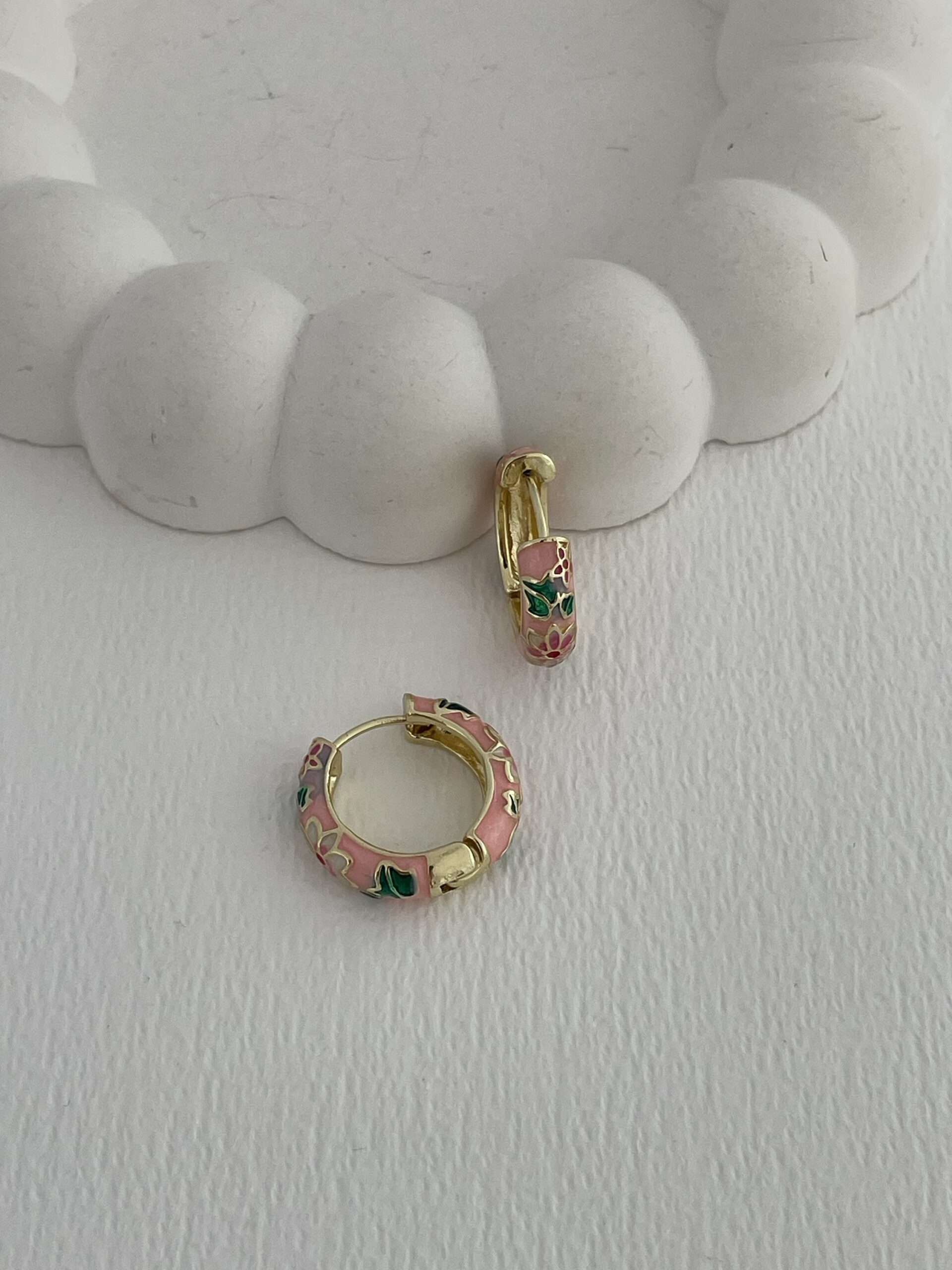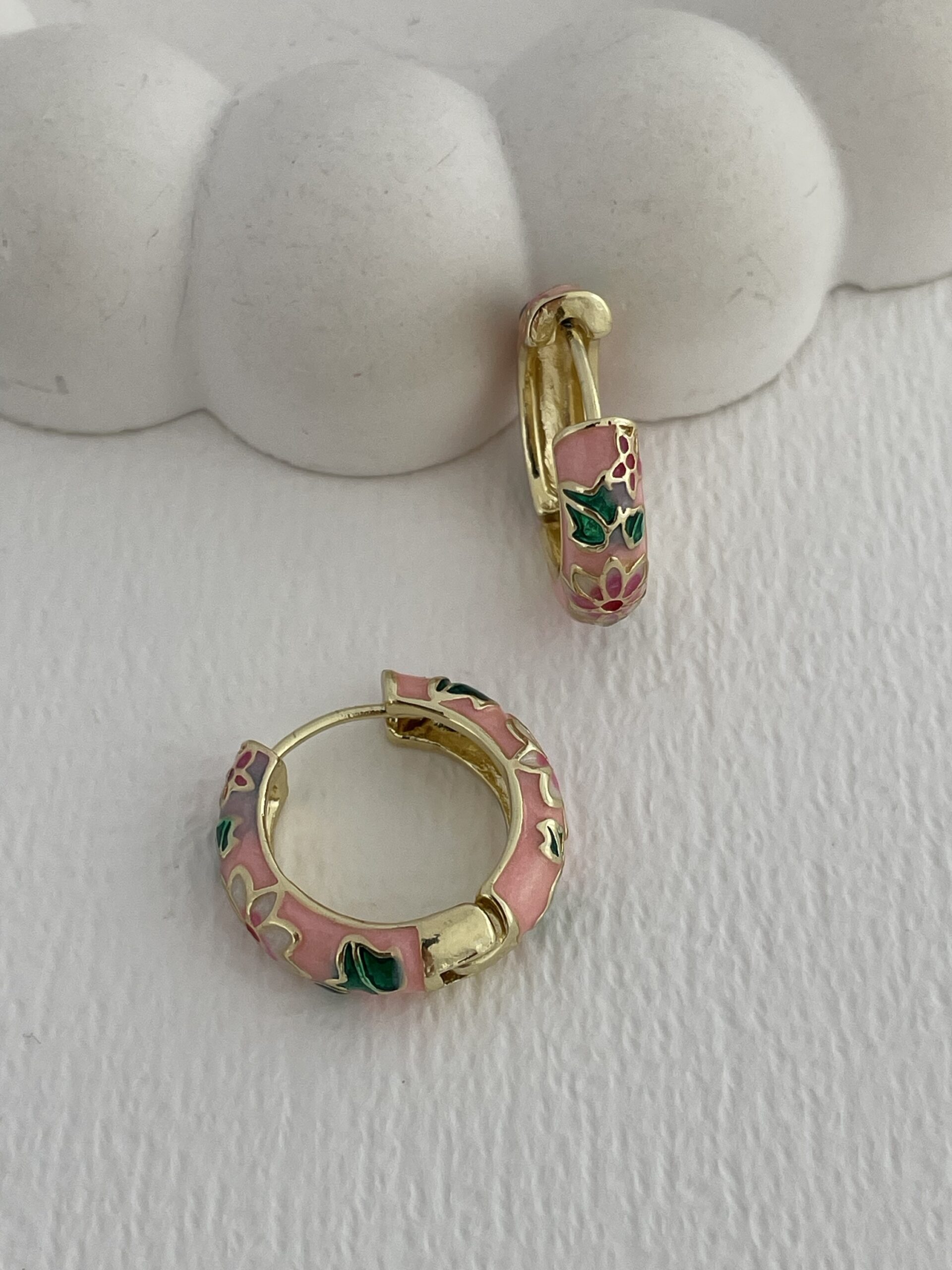 Özel Seri Çiçek Kabartma Desen Pudra Gold Küpe