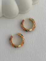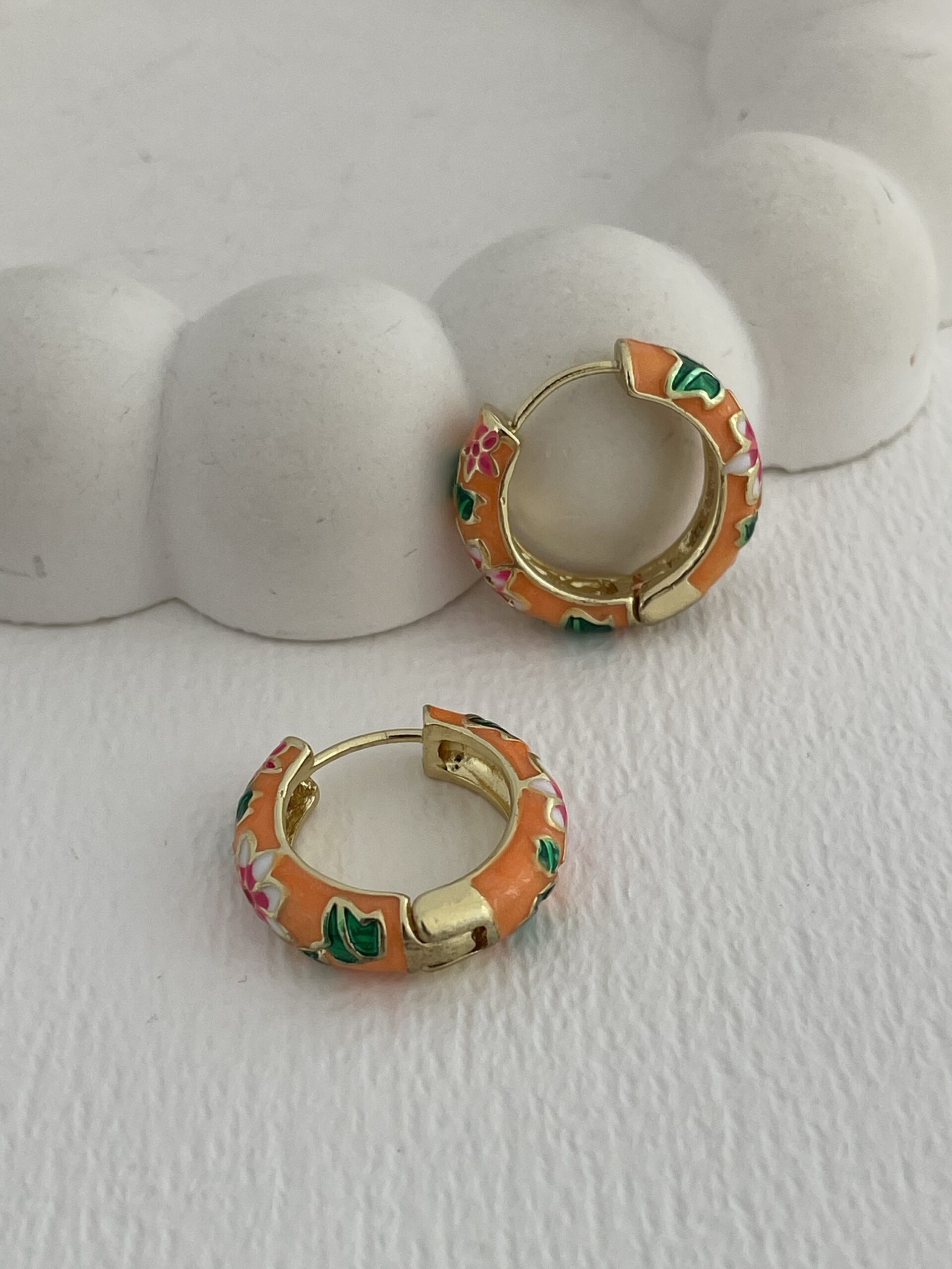 Özel Seri Çiçek Kabartma Desen Turuncu Gold Küpe