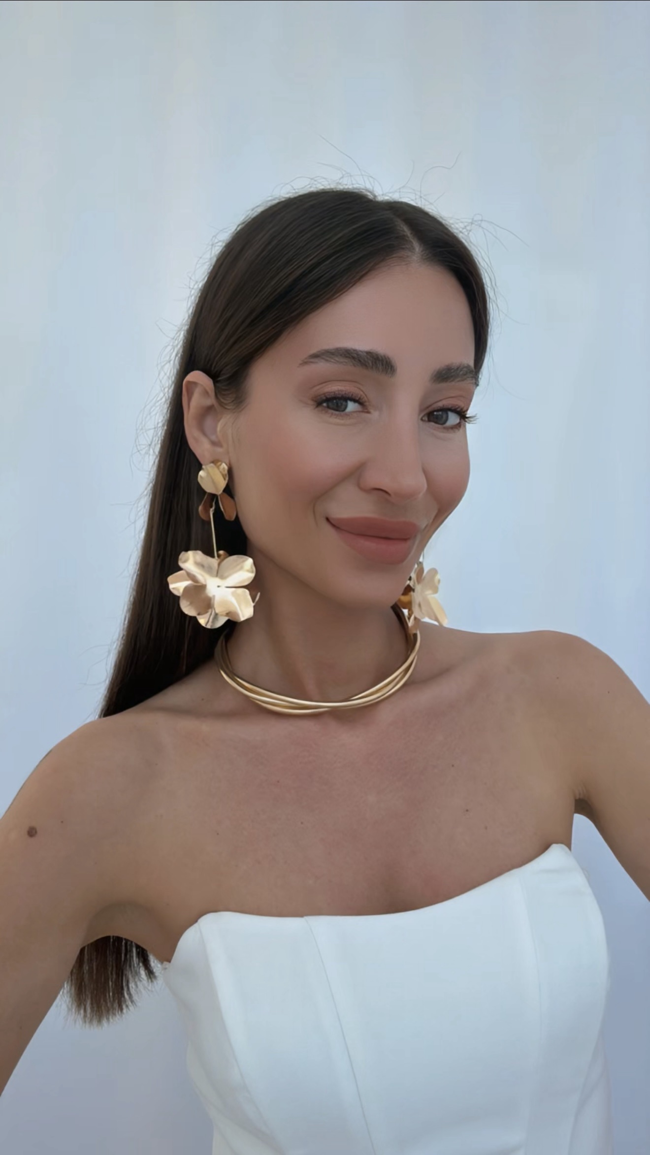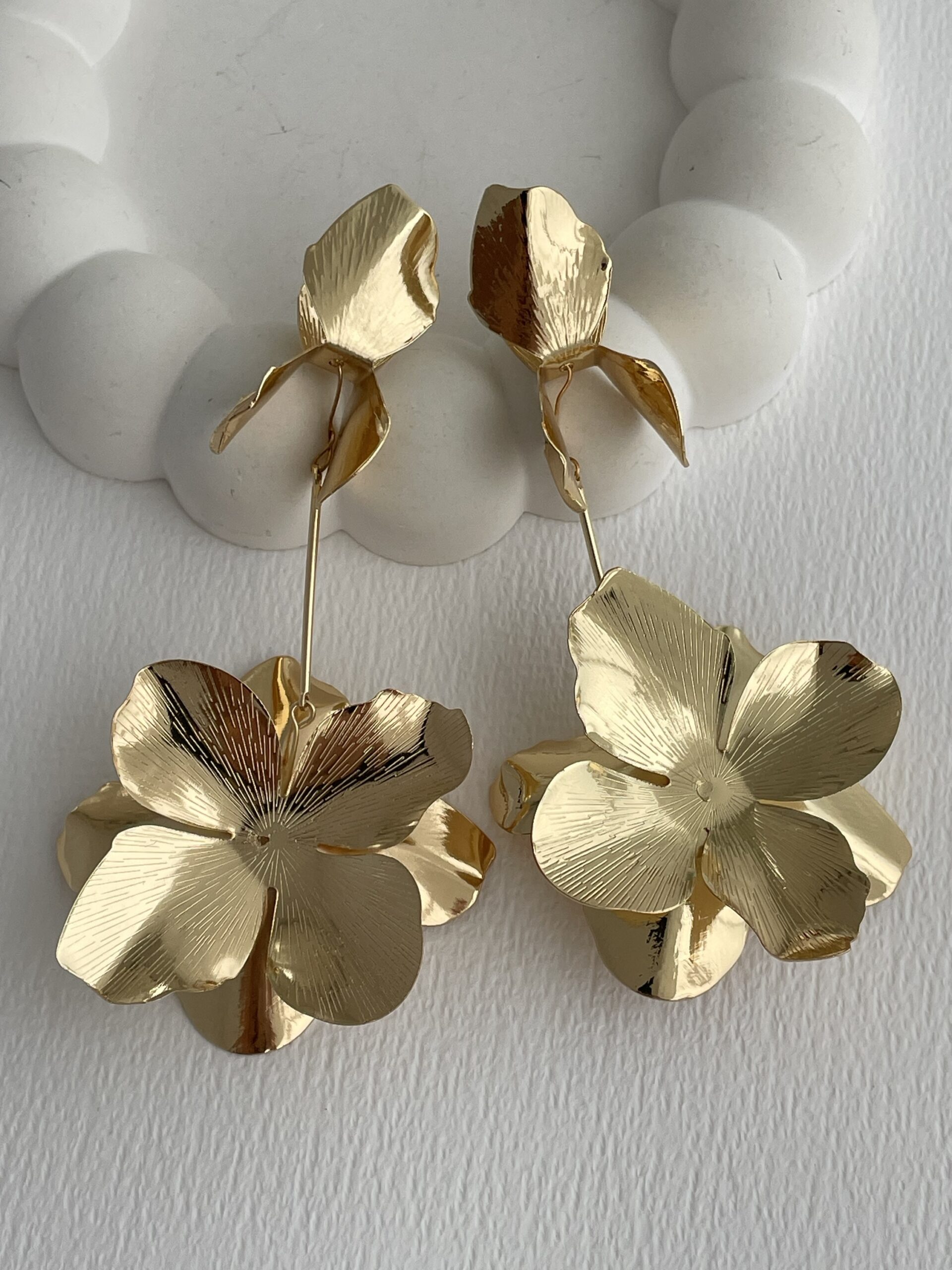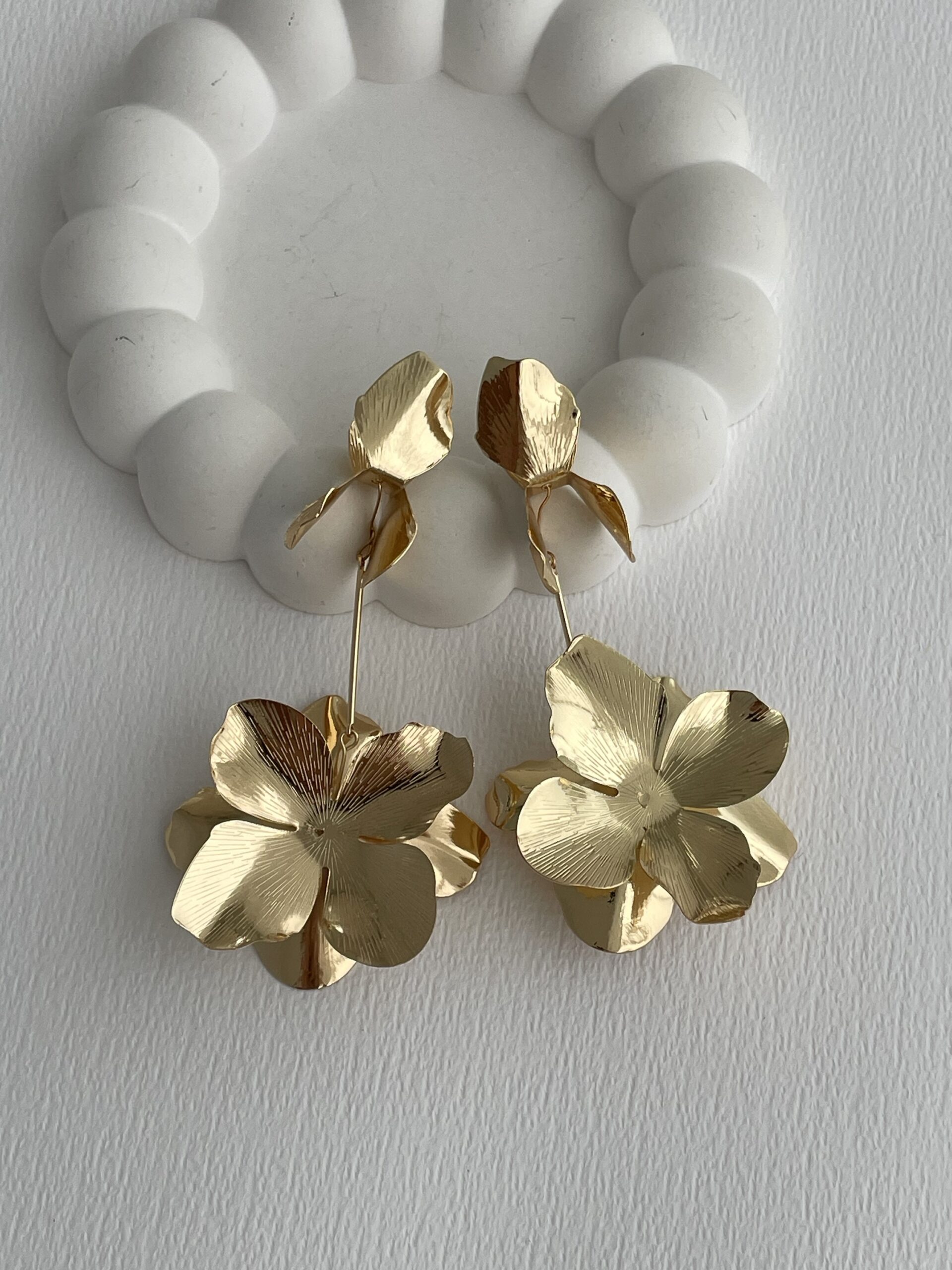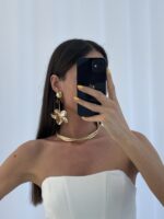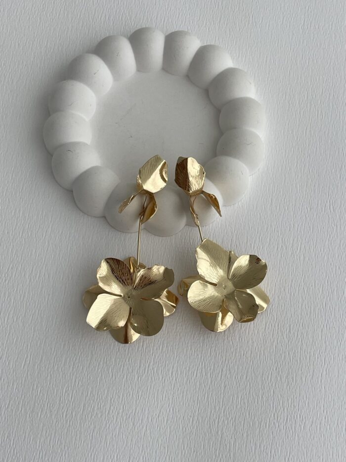 Özel Seri Çiçek Motif Maksi Boy Gold Plaka Küpe