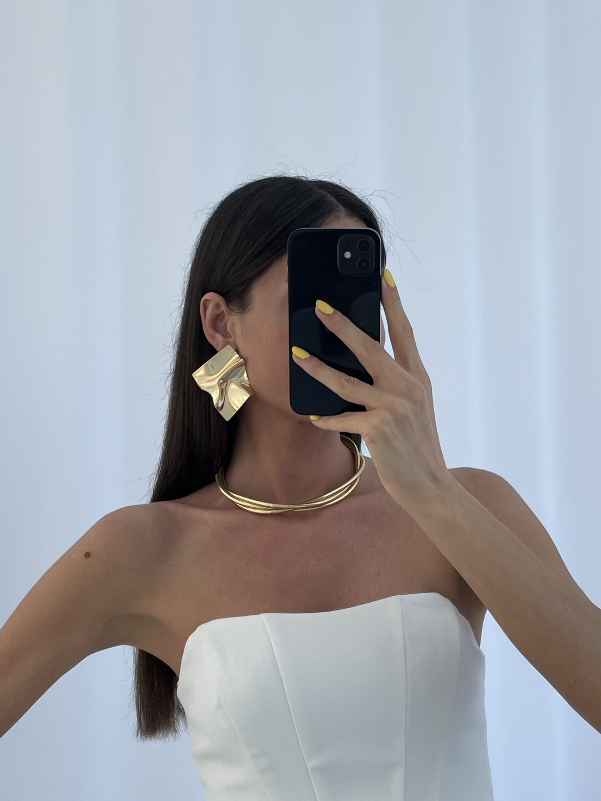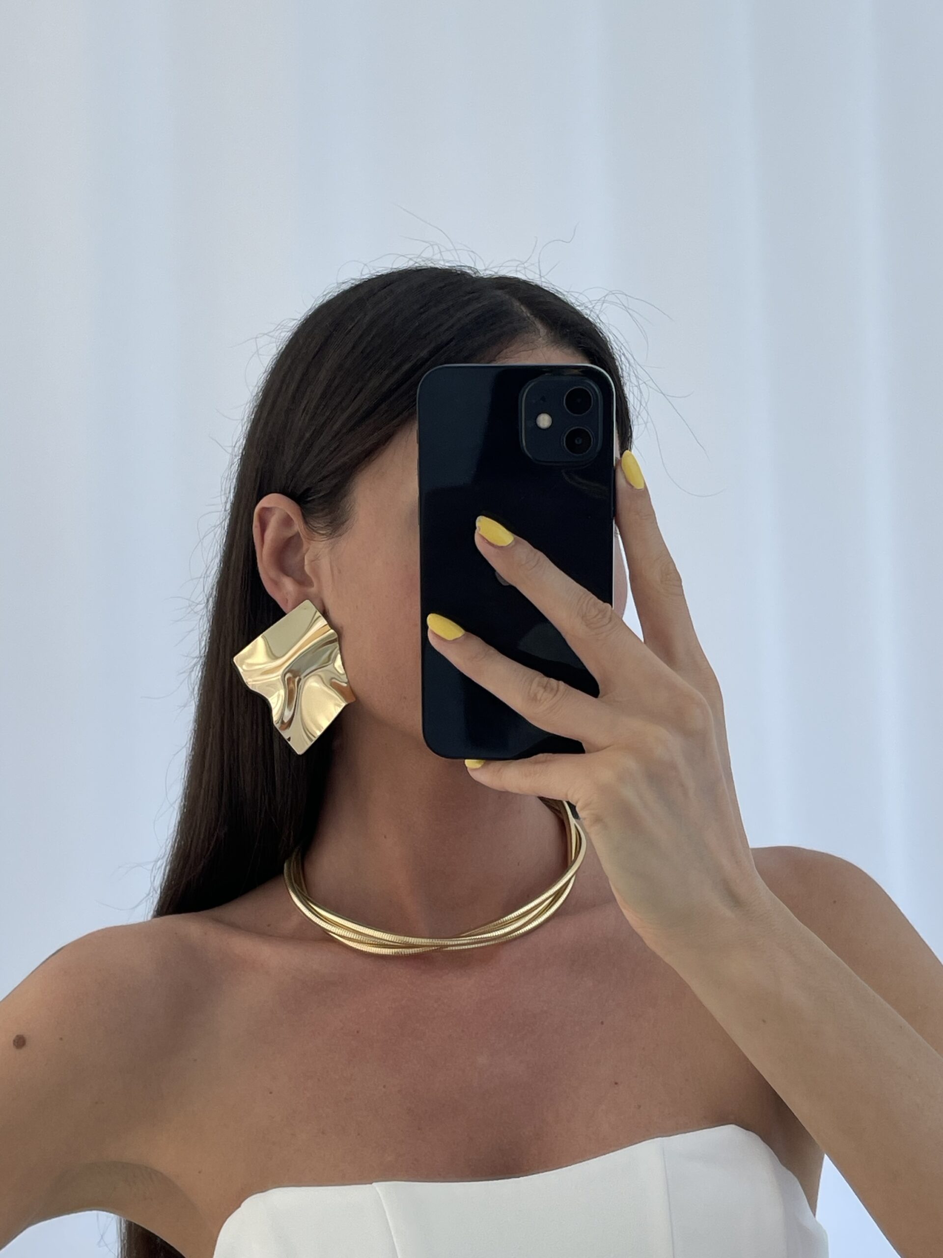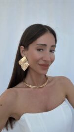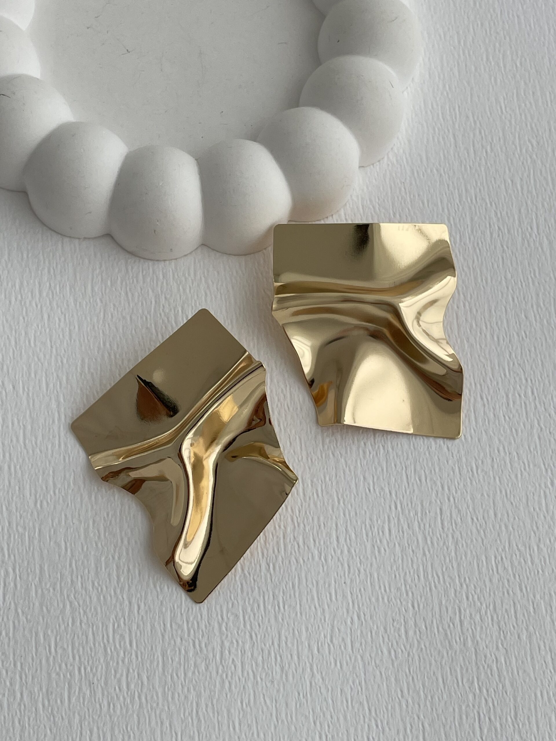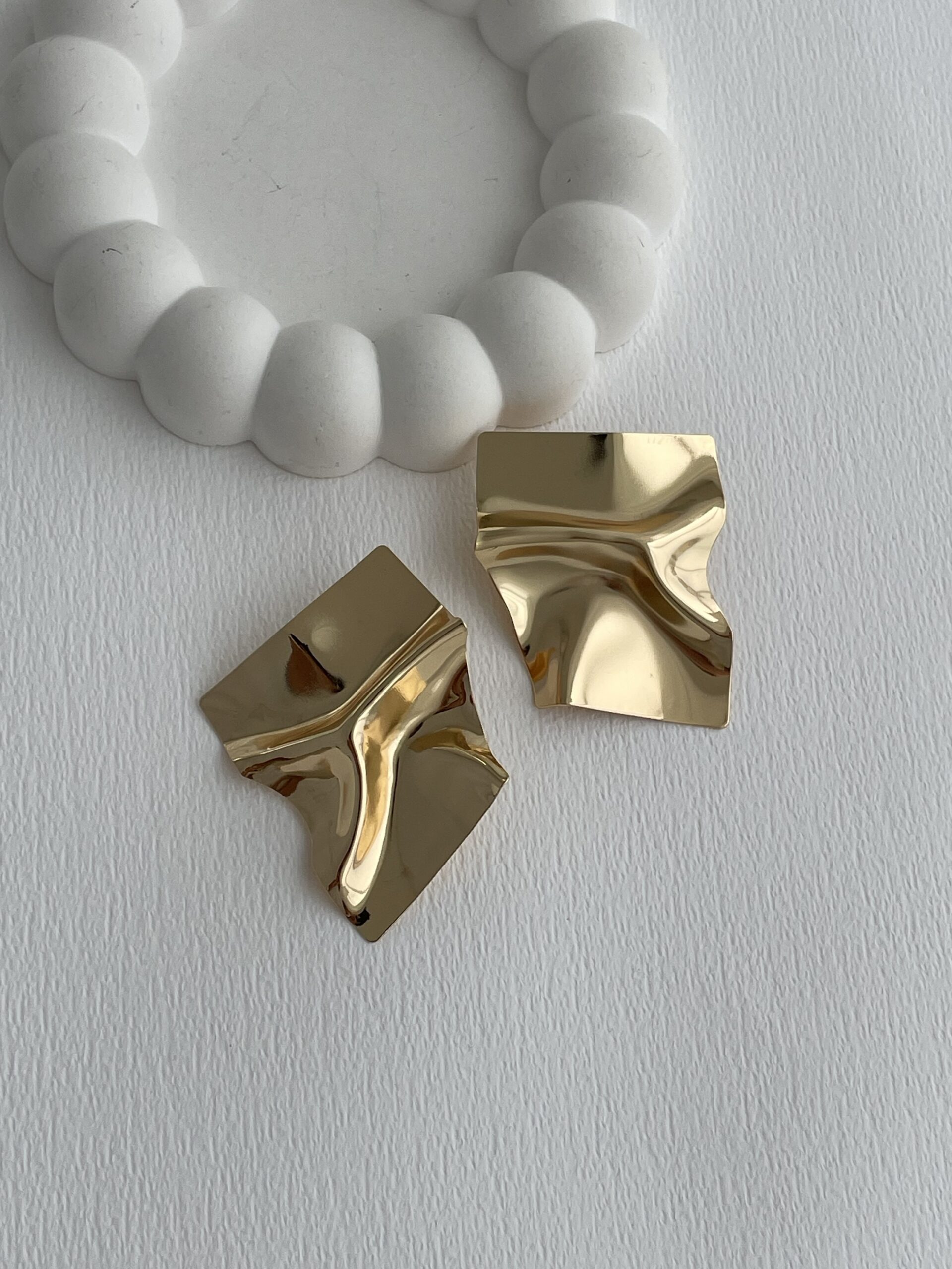 Özel Seri Soyut Tasarım Maksi Boy Gold Plaka Küpe