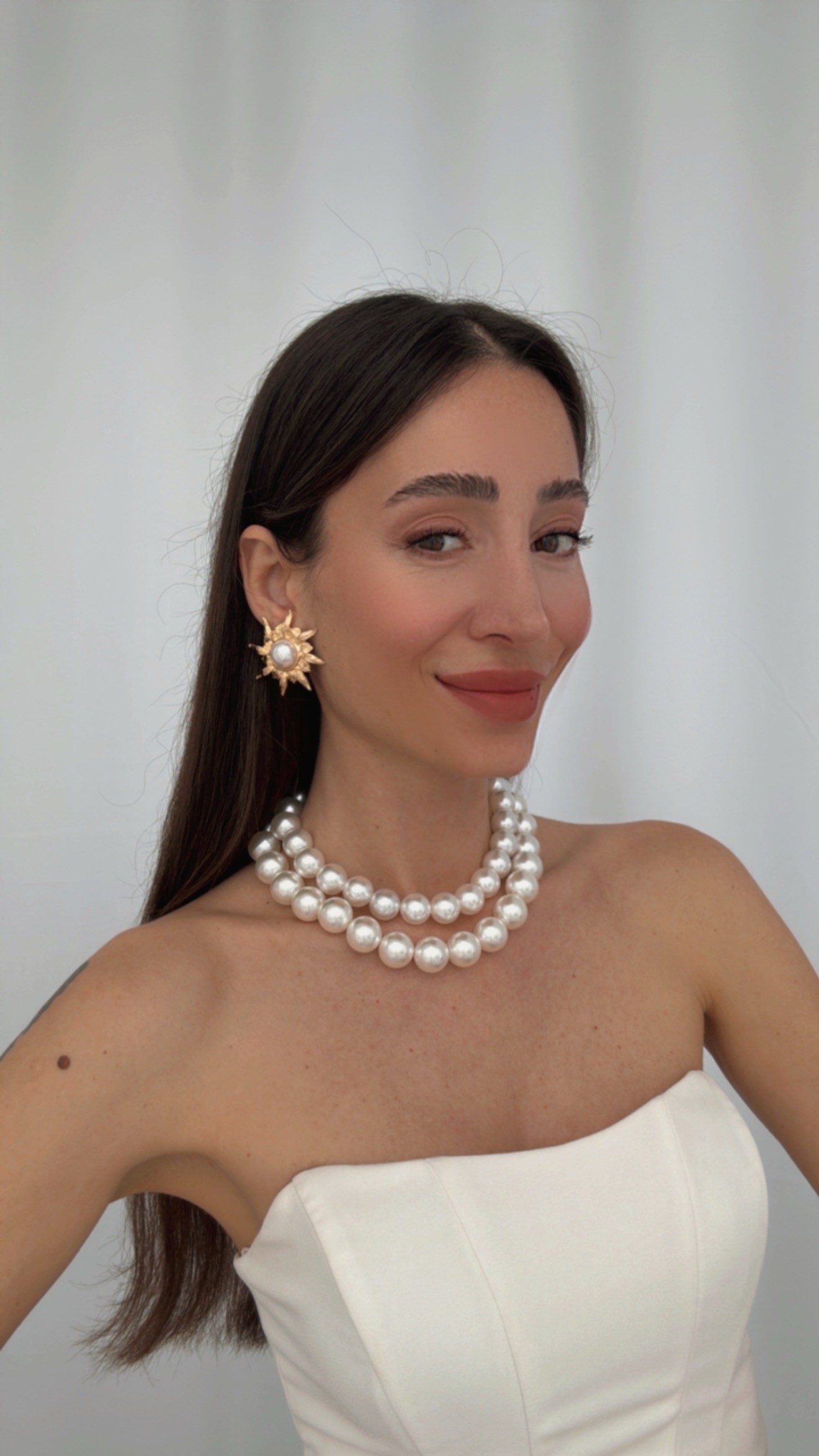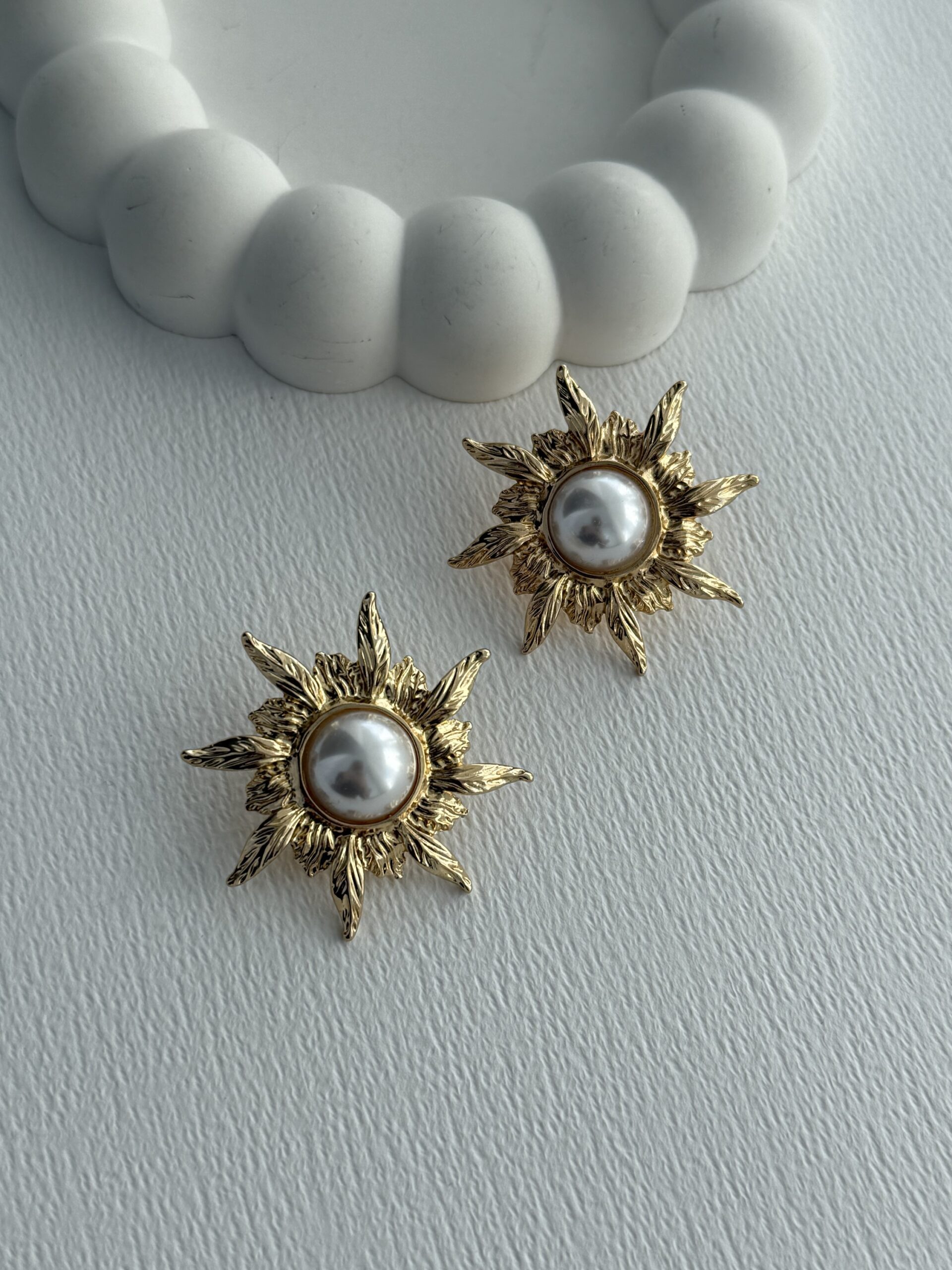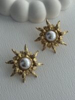 Özel Seri Çiçek Tasarım Gold İnci Küpe