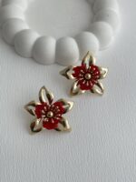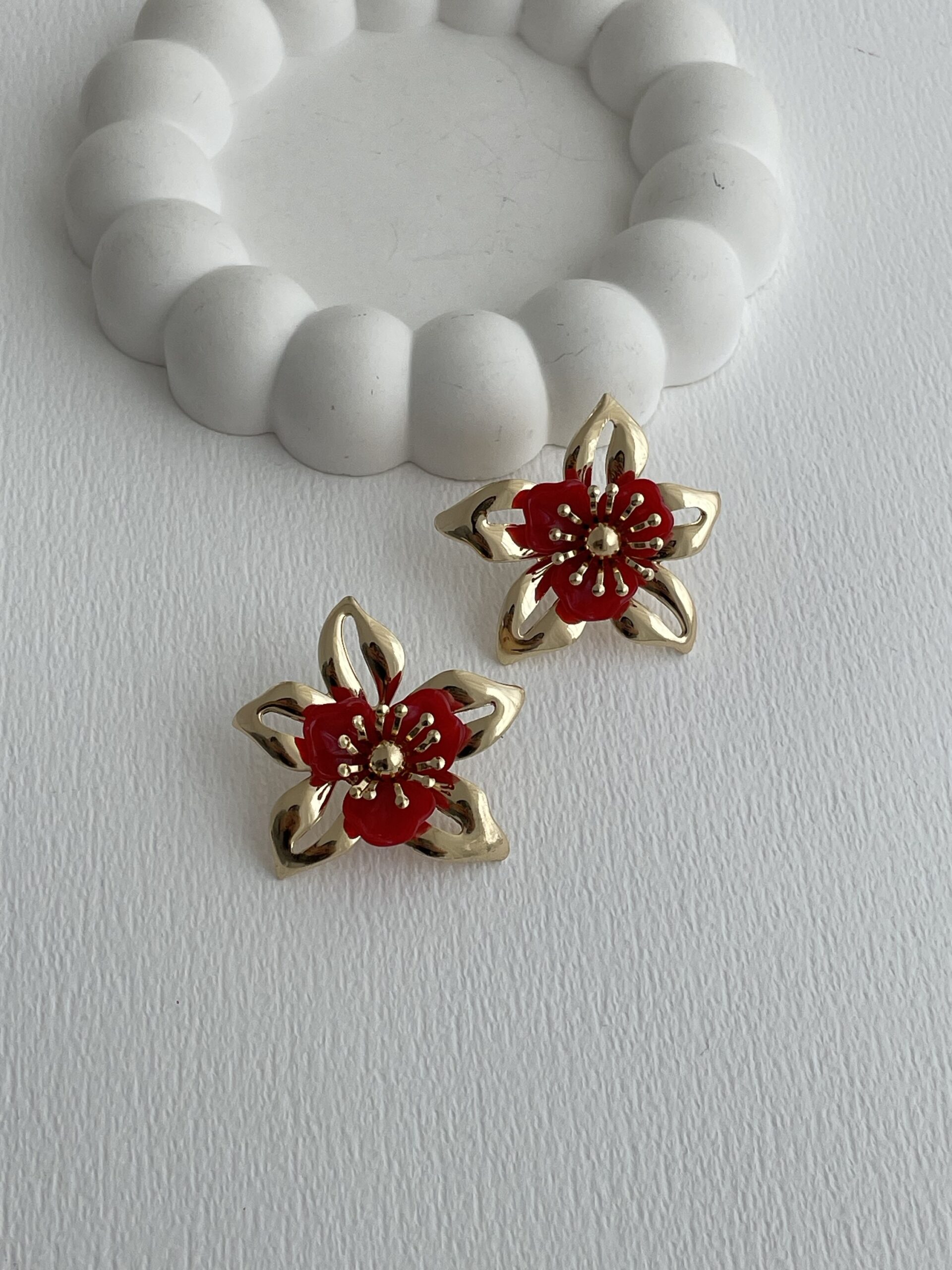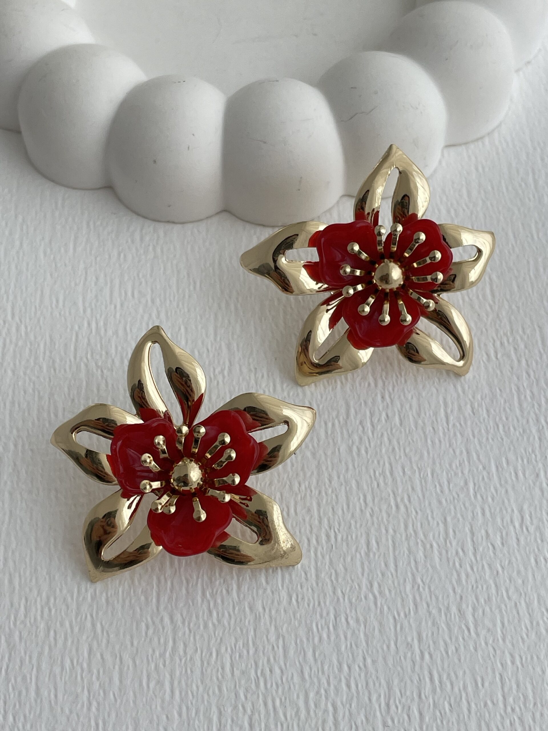 Özel Seri Çiçek Tasarım Kırmızı Rainbow Gold Küpe