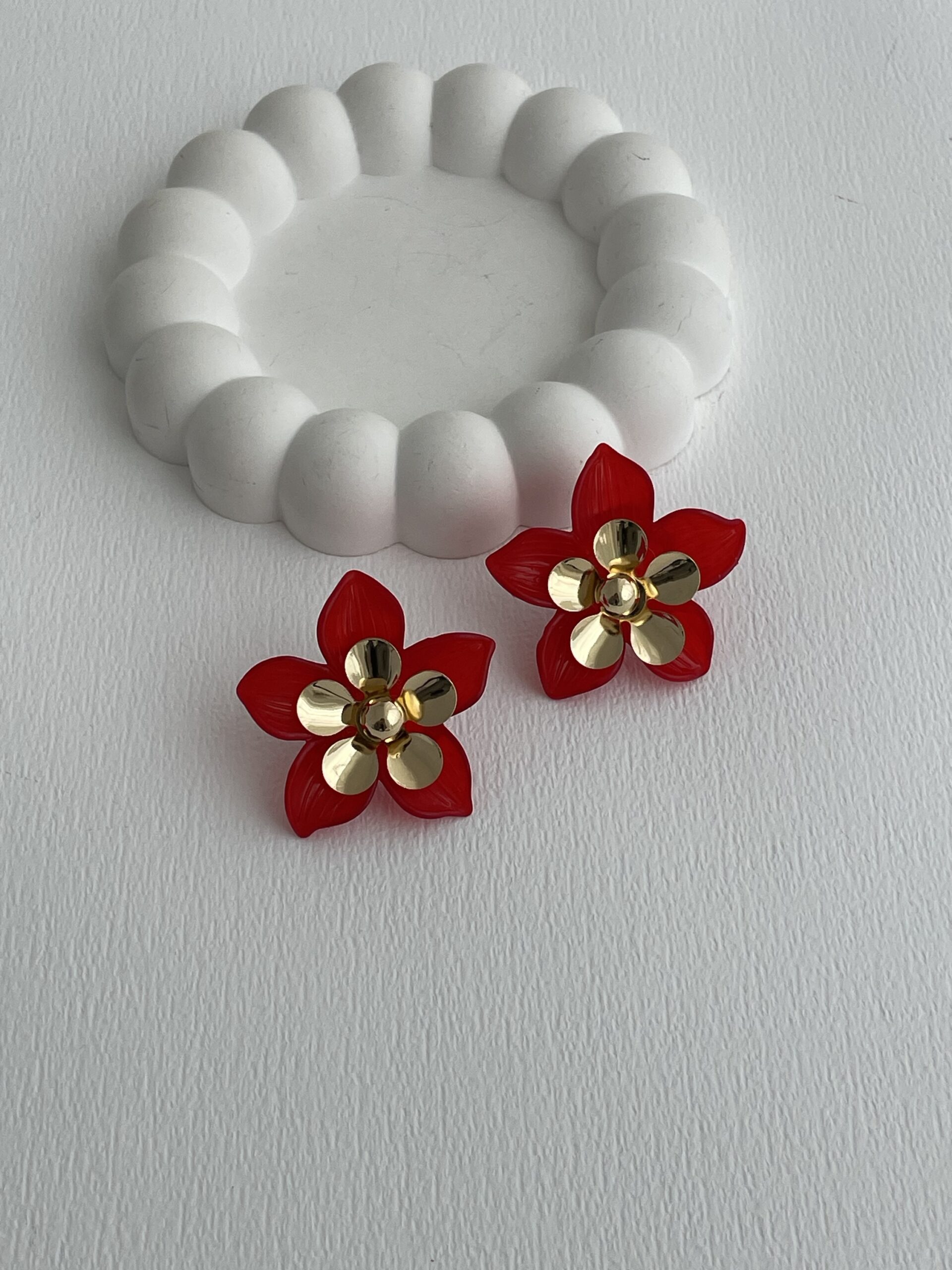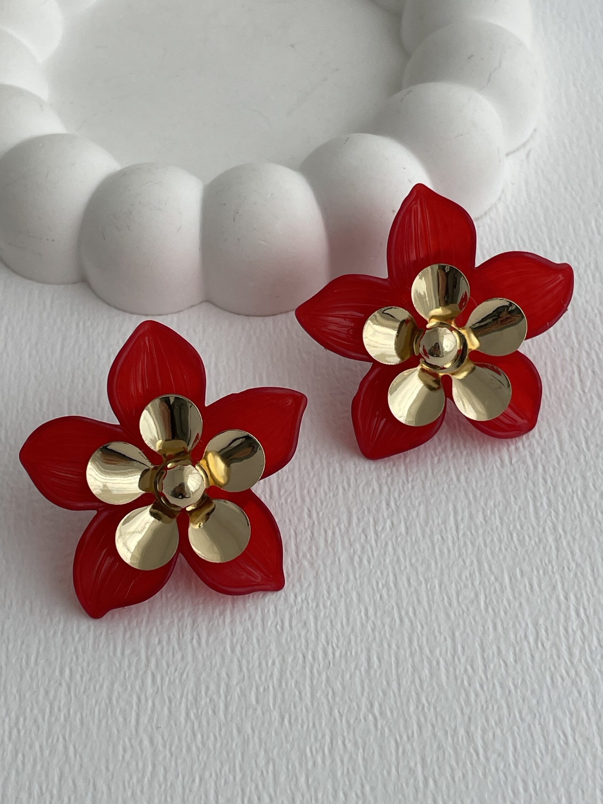 Özel Seri Çiçek Tasarım Kırmızı Rainbow Gold Küpe