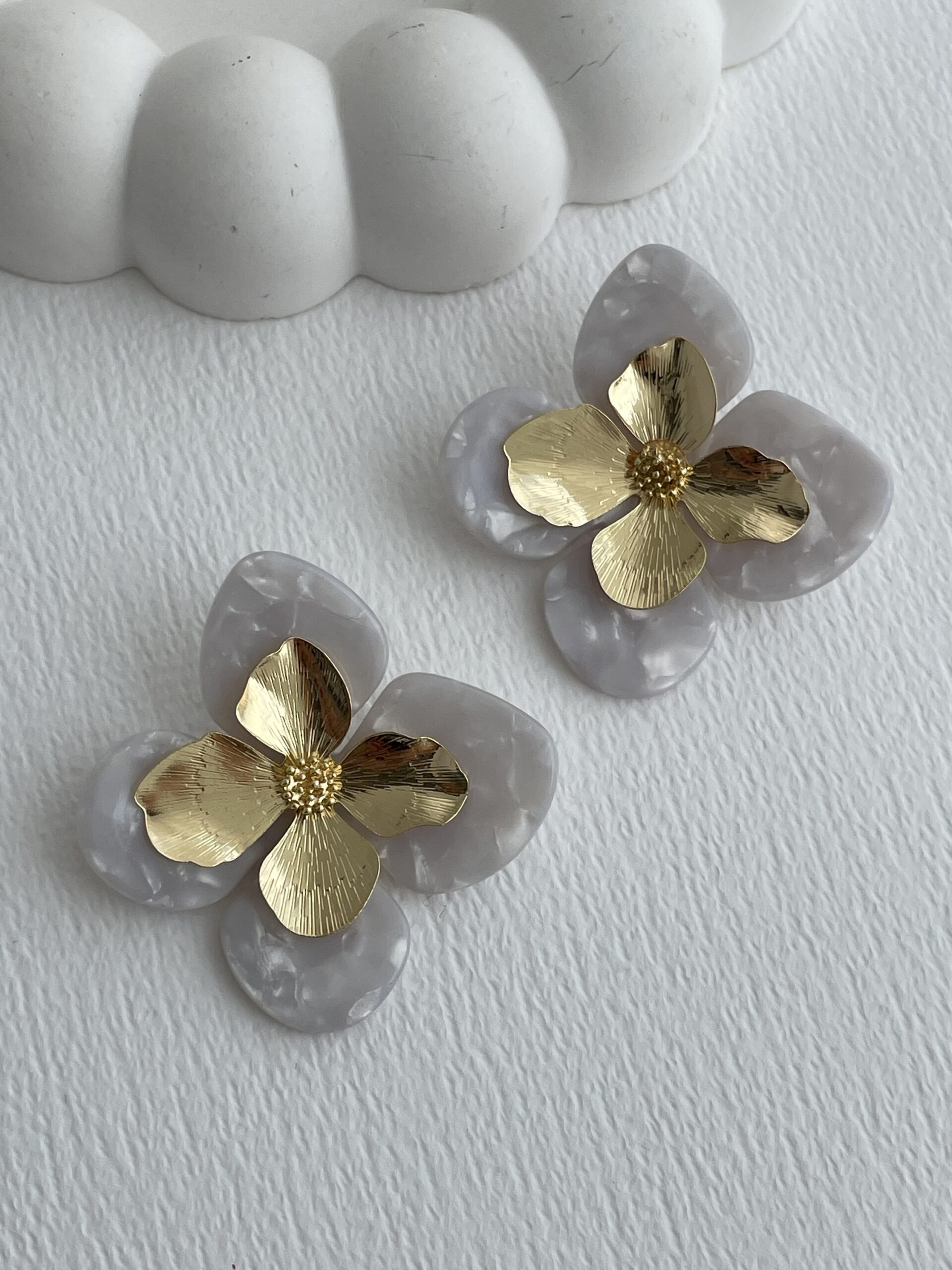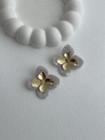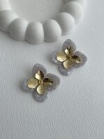 Özel Seri Çiçek Tasarım Mavi-Gri Rainbow Gold Küpe