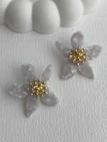 Özel Seri Çiçek Tasarım Mavi-Gri Rainbow Gold Küpe