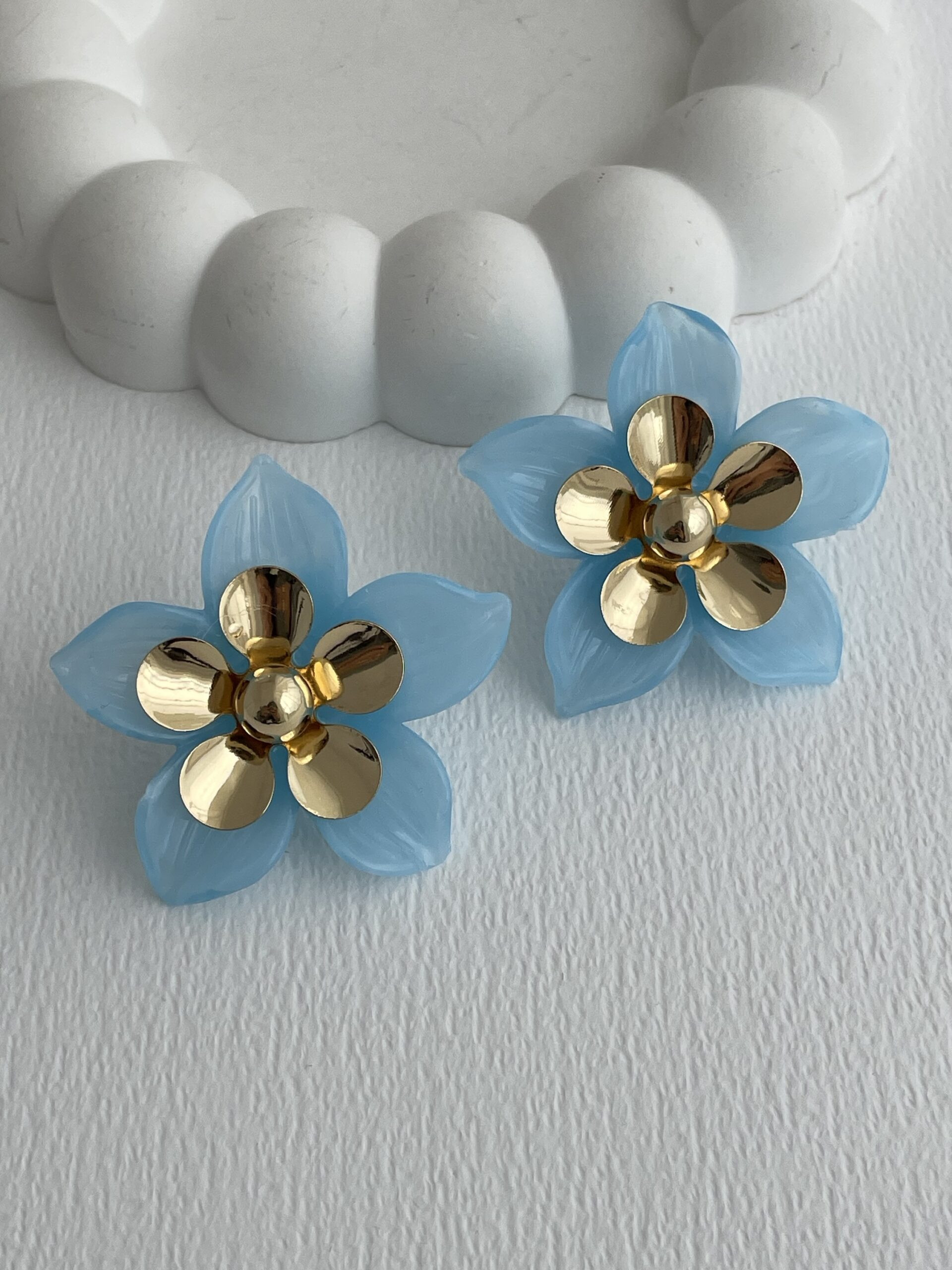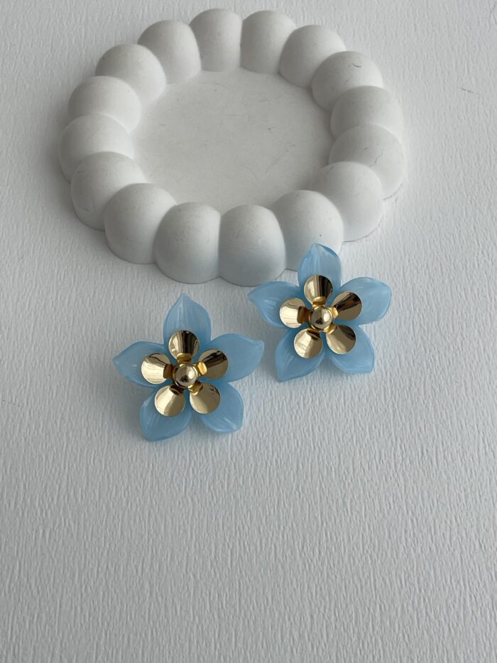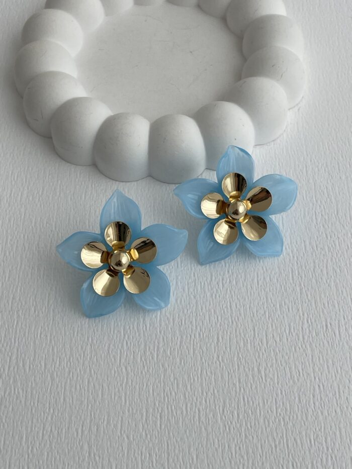 Özel Seri Çiçek Tasarım Mavi Rainbow Gold Küpe
