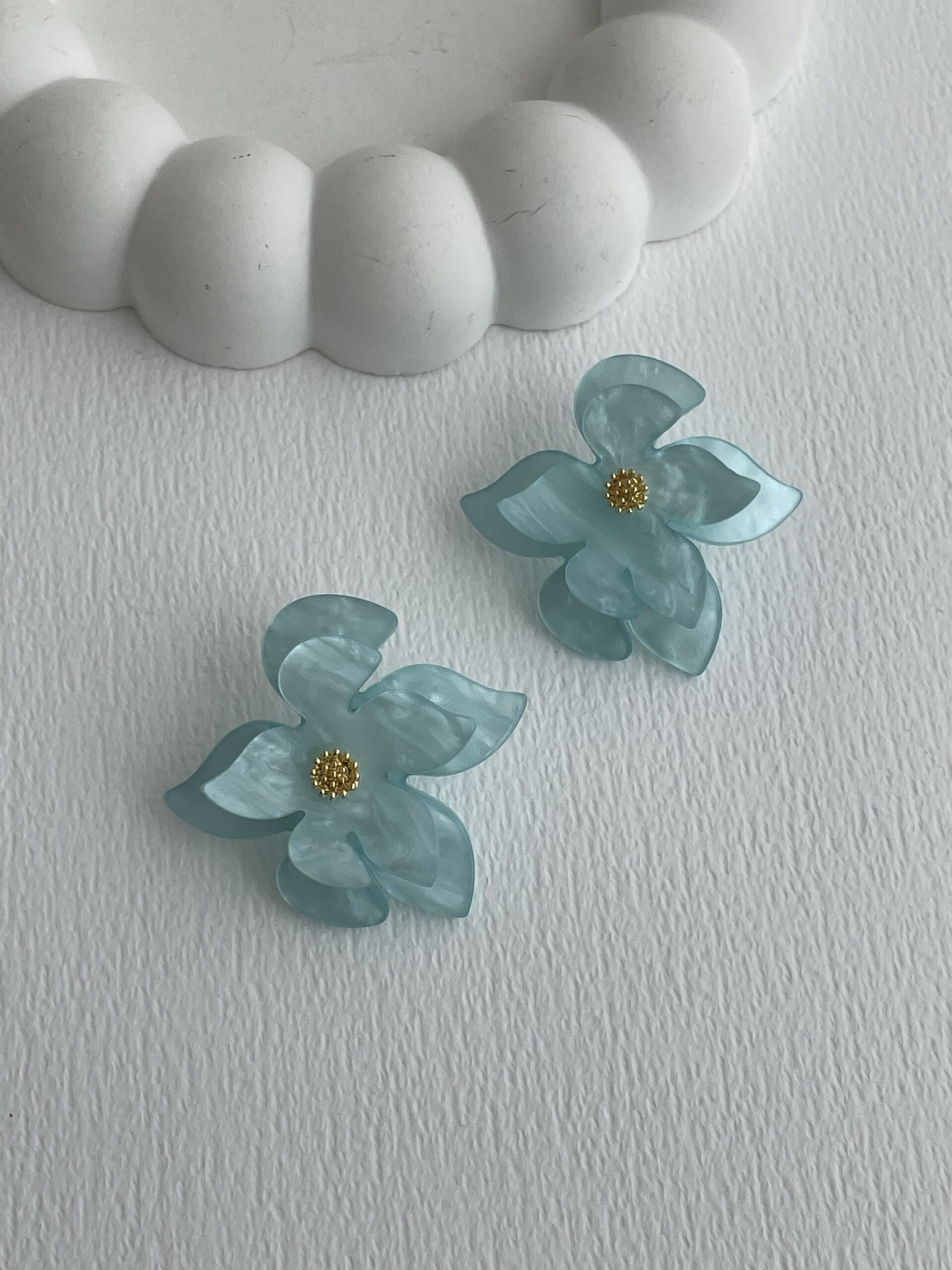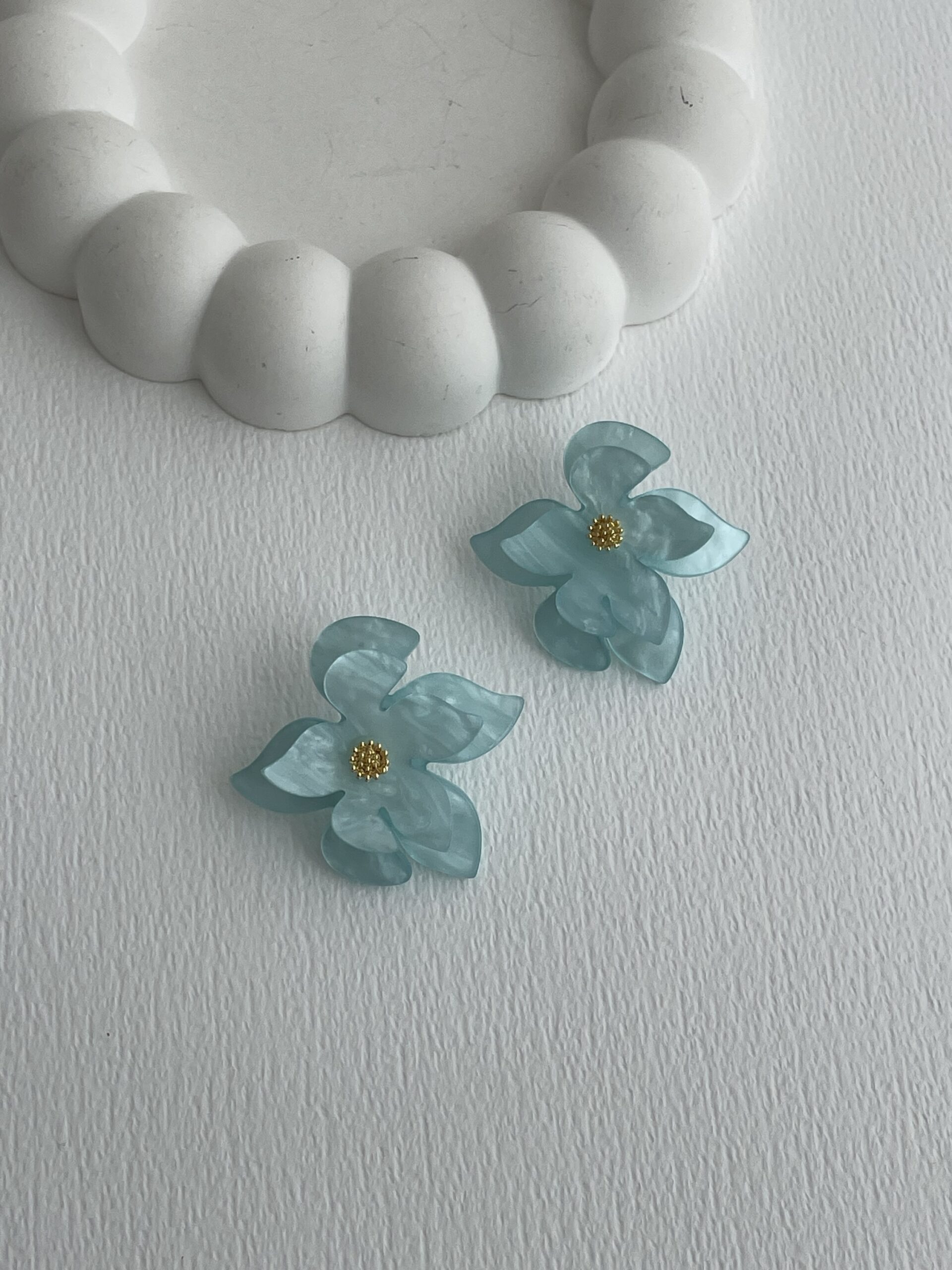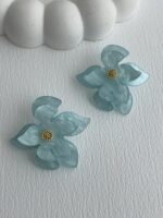 Özel Seri Çiçek Tasarım Mavi Rainbow Gold Küpe