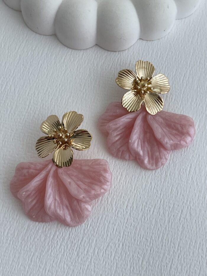 Özel Seri Çiçek Tasarım Pembe Hawai Küpe