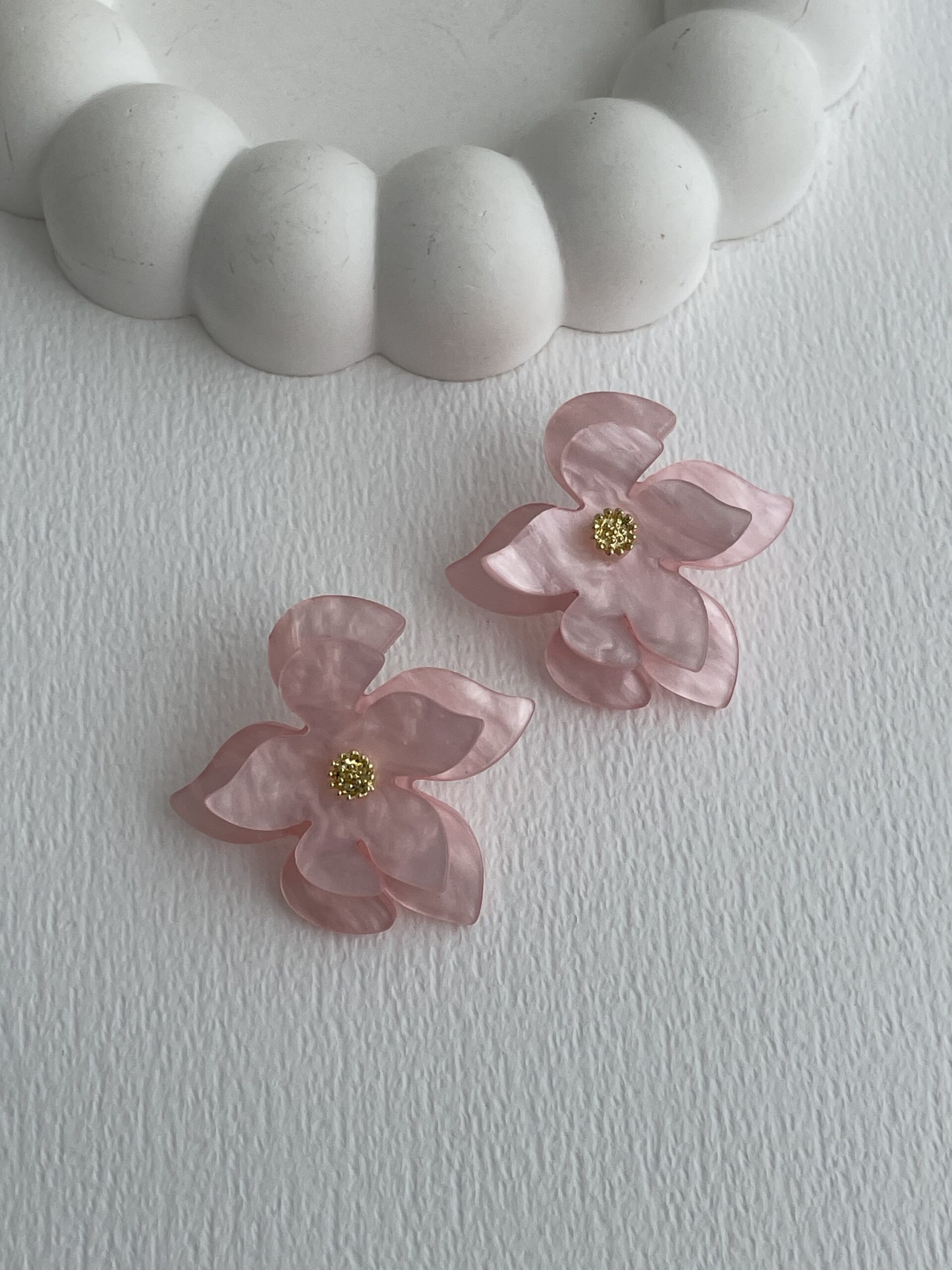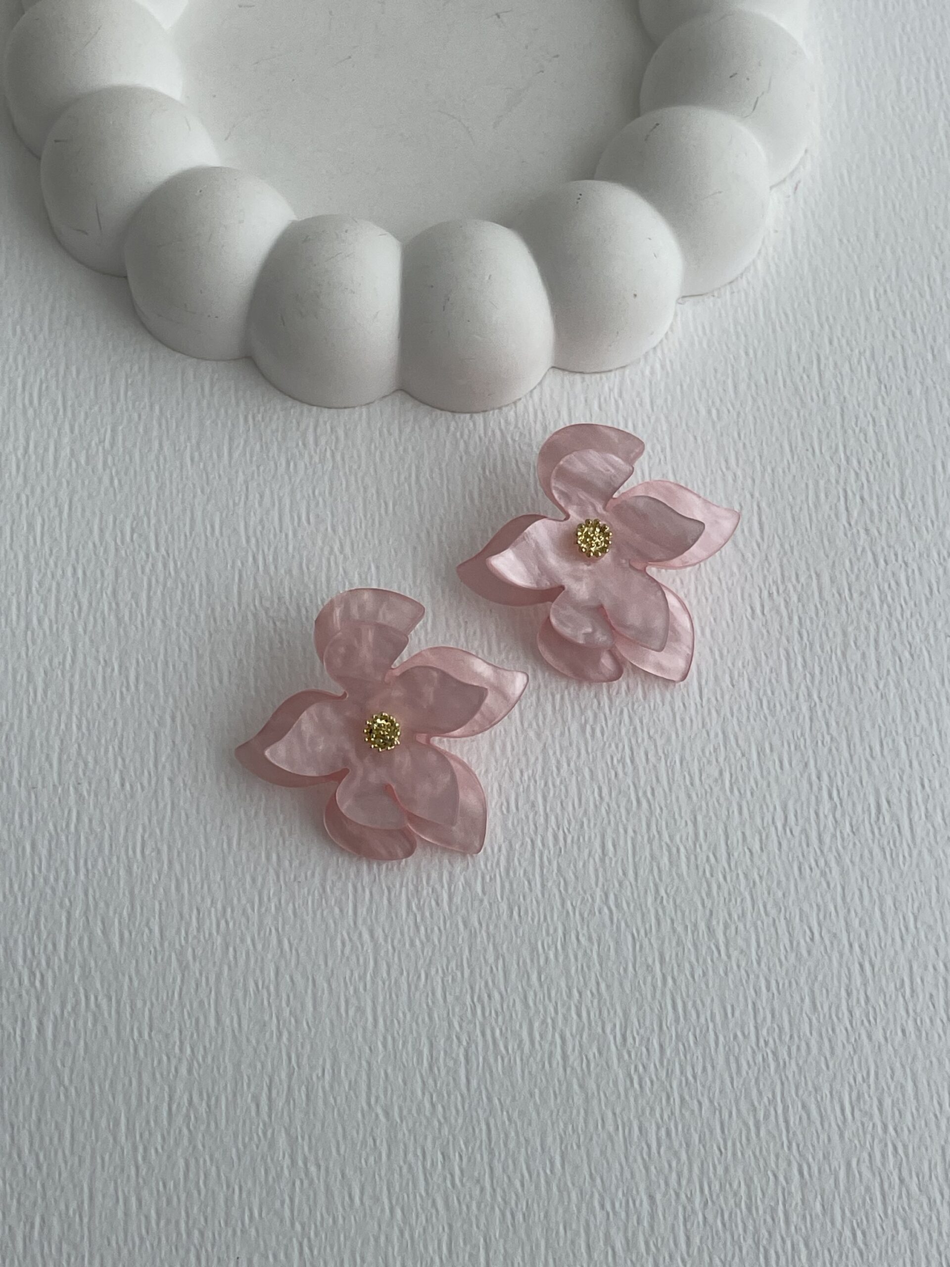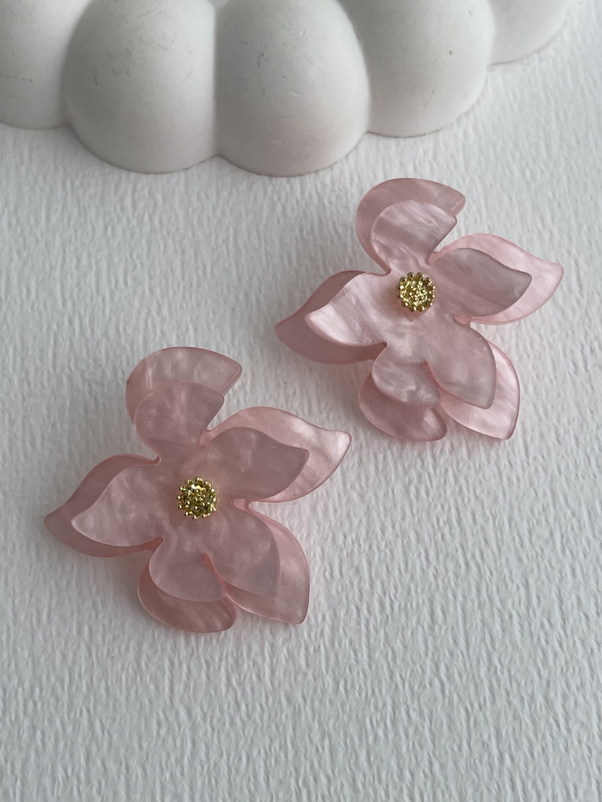 Özel Seri Çiçek Tasarım Pembe Rainbow Gold Küpe