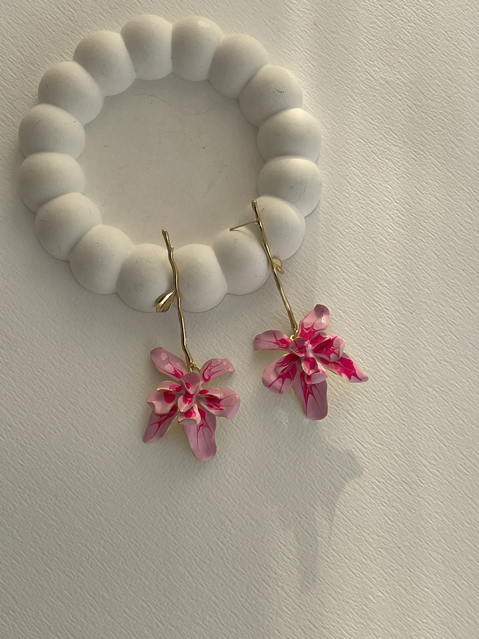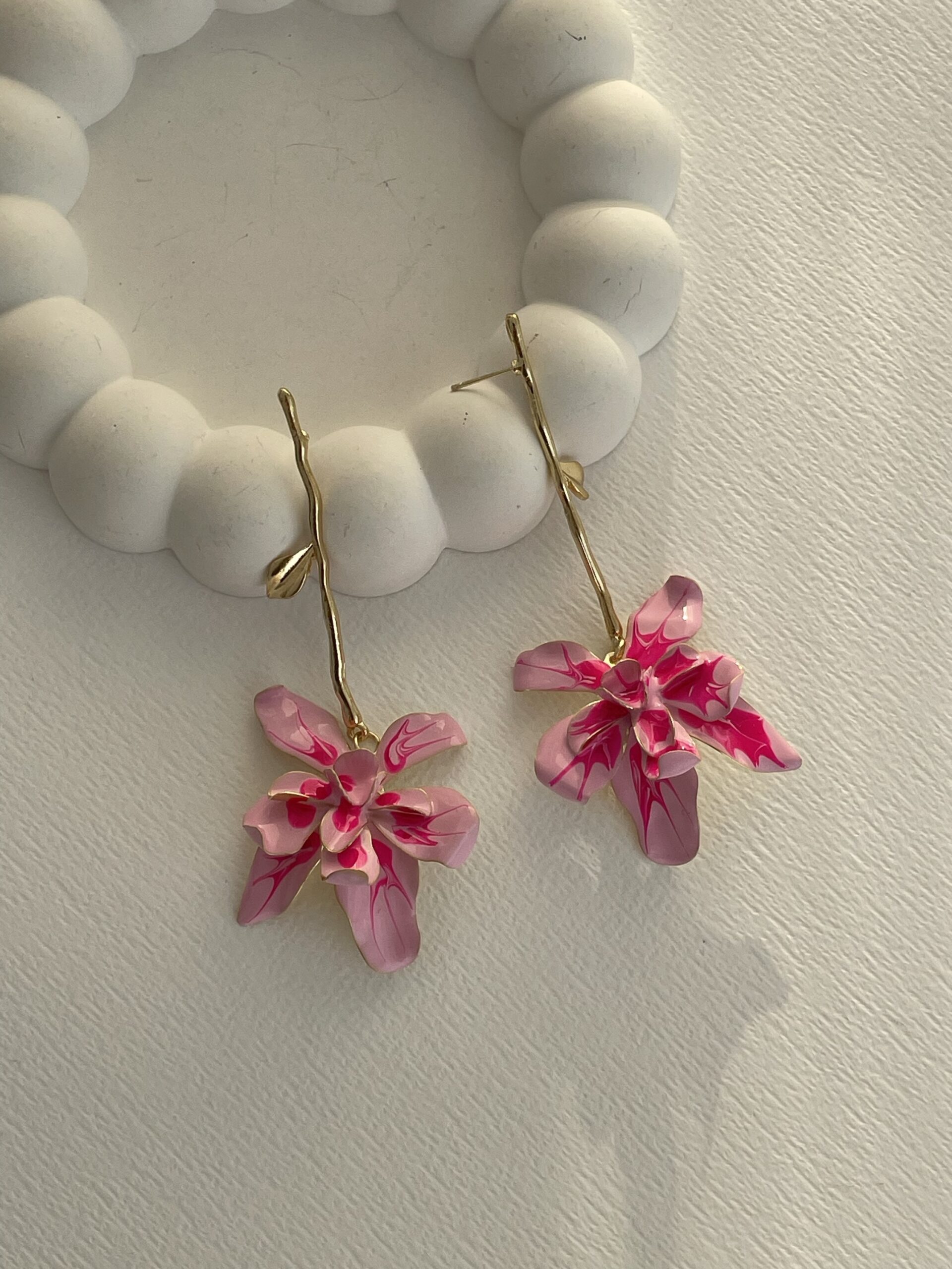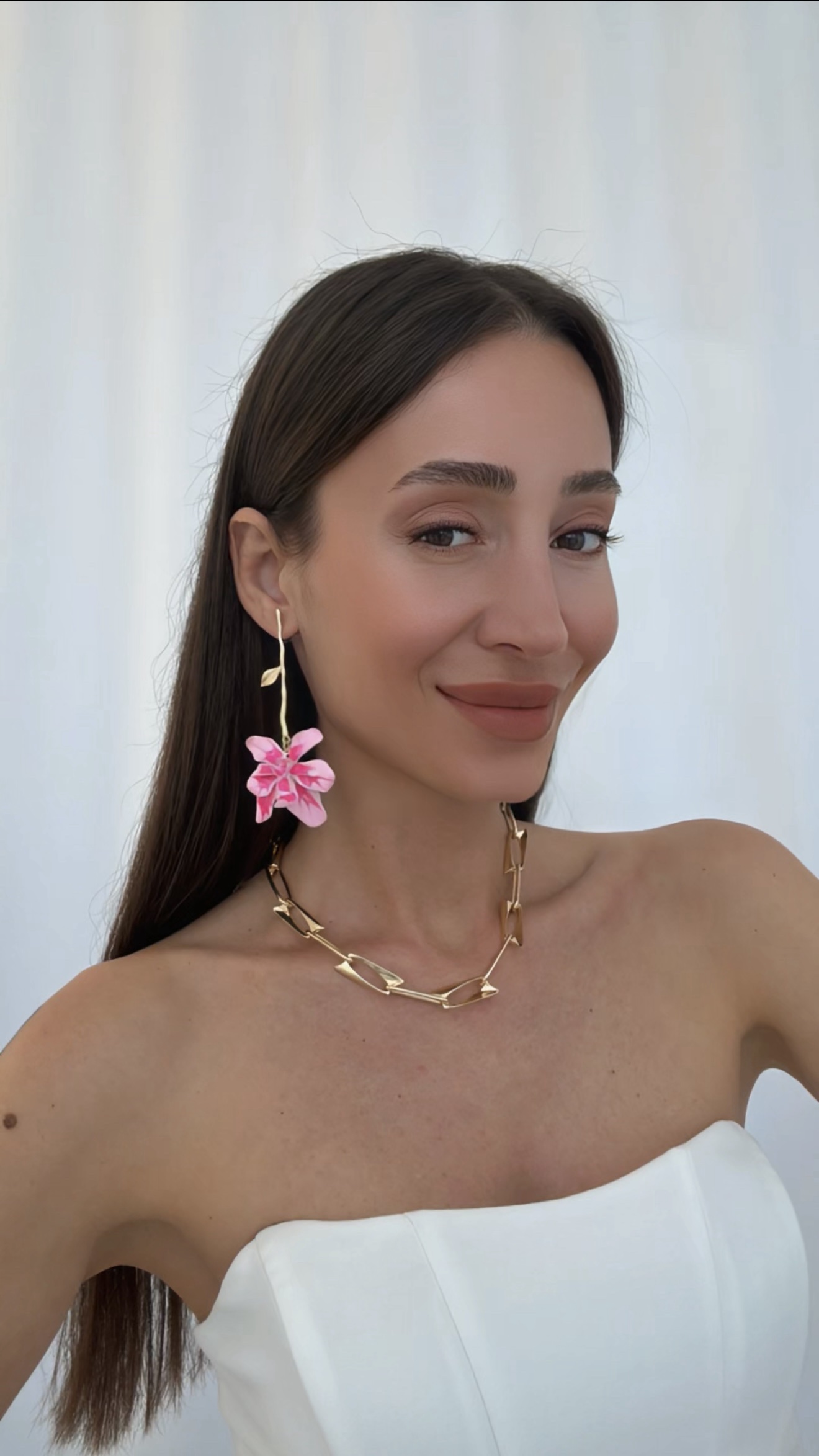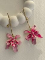 Özel Seri Çiçek Tasarım Pembe Rainbow Gold Küpe