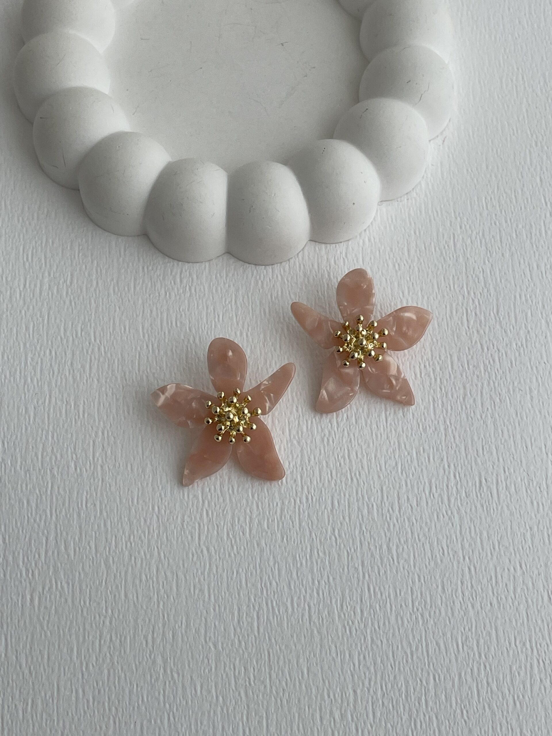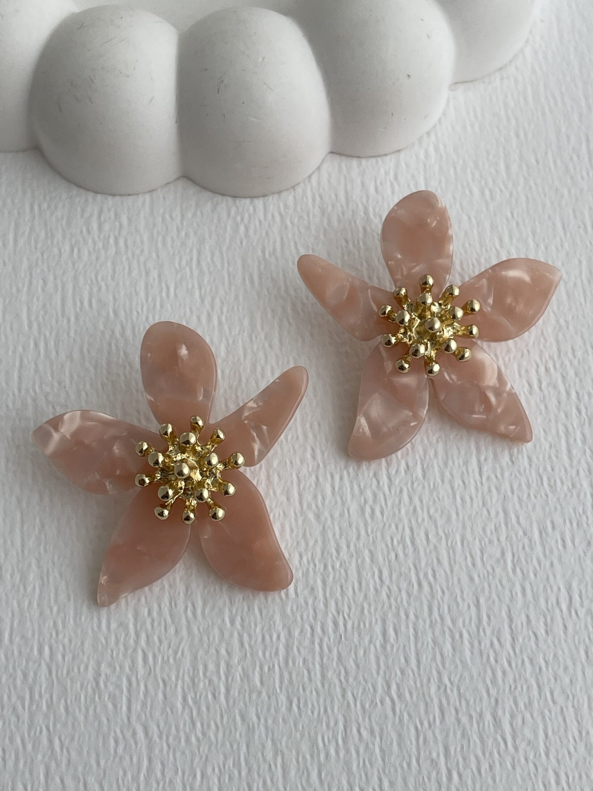 Özel Seri Çiçek Tasarım Pudra Rainbow Gold Küpe
