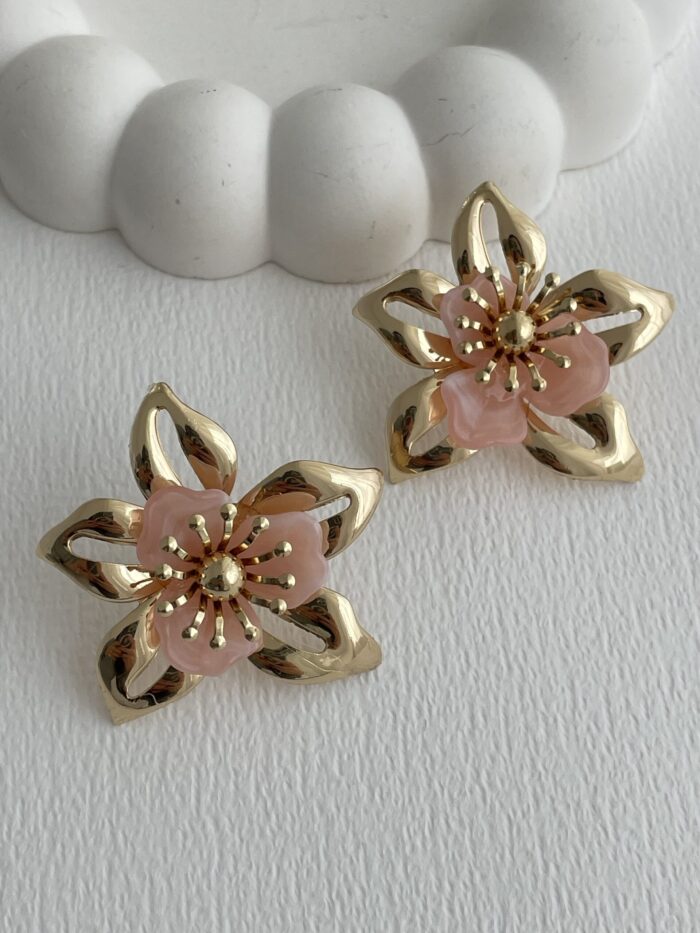 Özel Seri Çiçek Tasarım Pudra Rainbow Gold Küpe