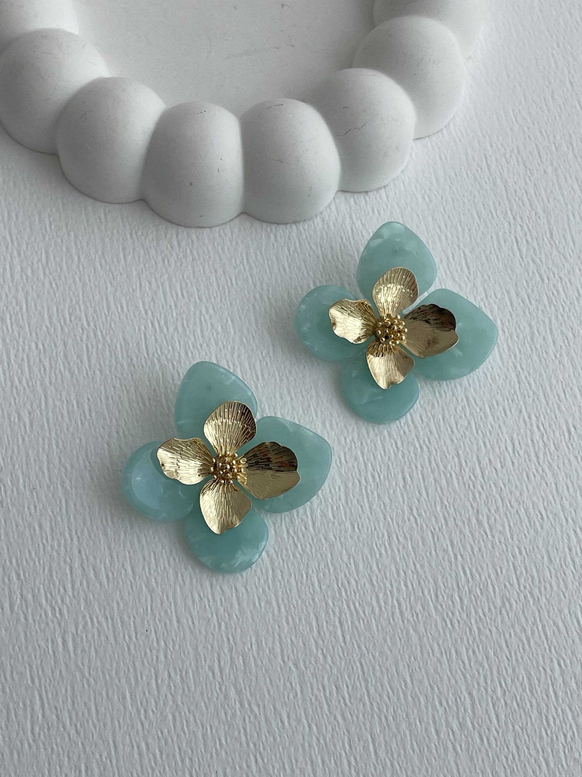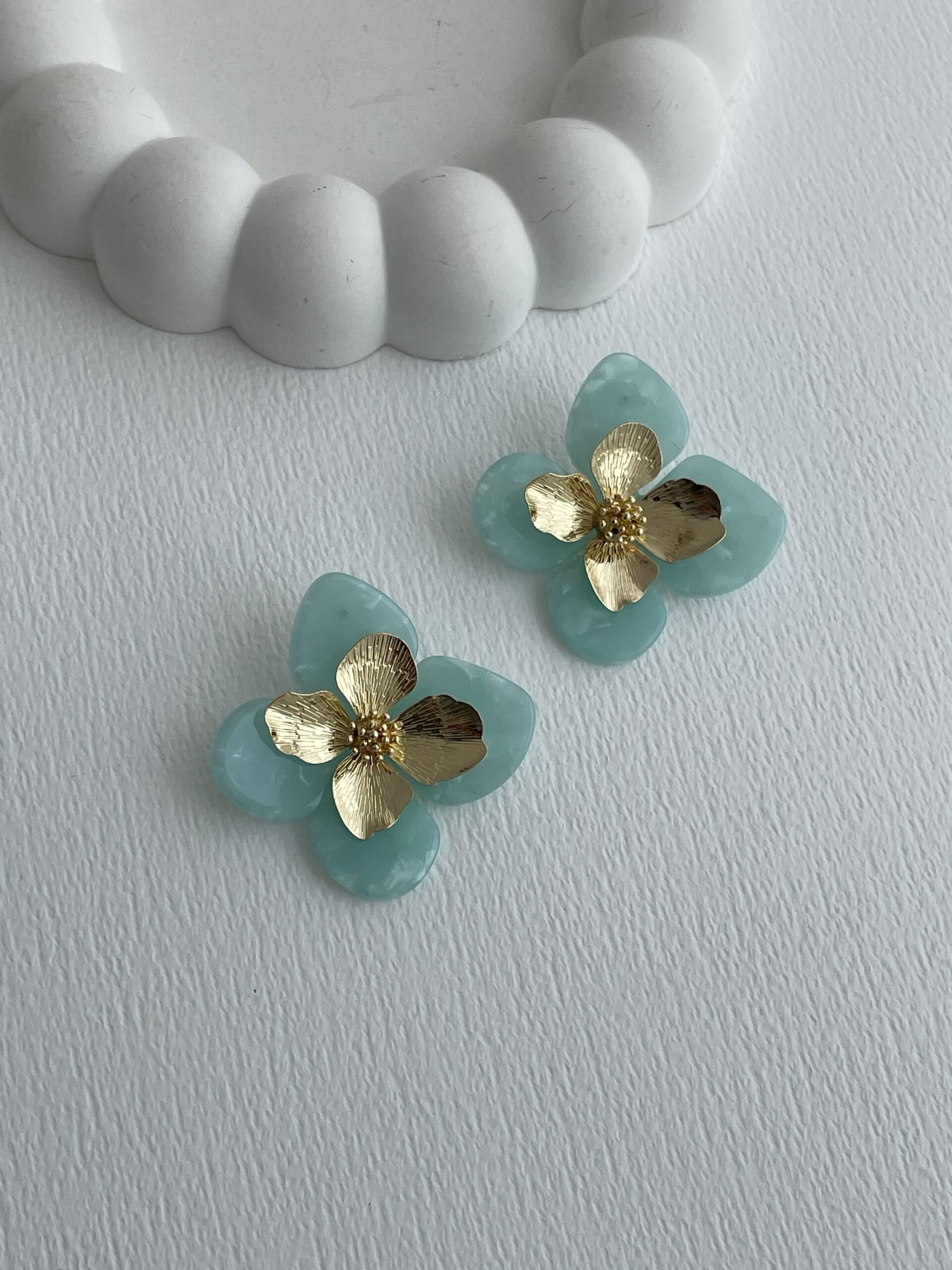 Özel Seri Çiçek Tasarım Yeşil Rainbow Gold Küpe