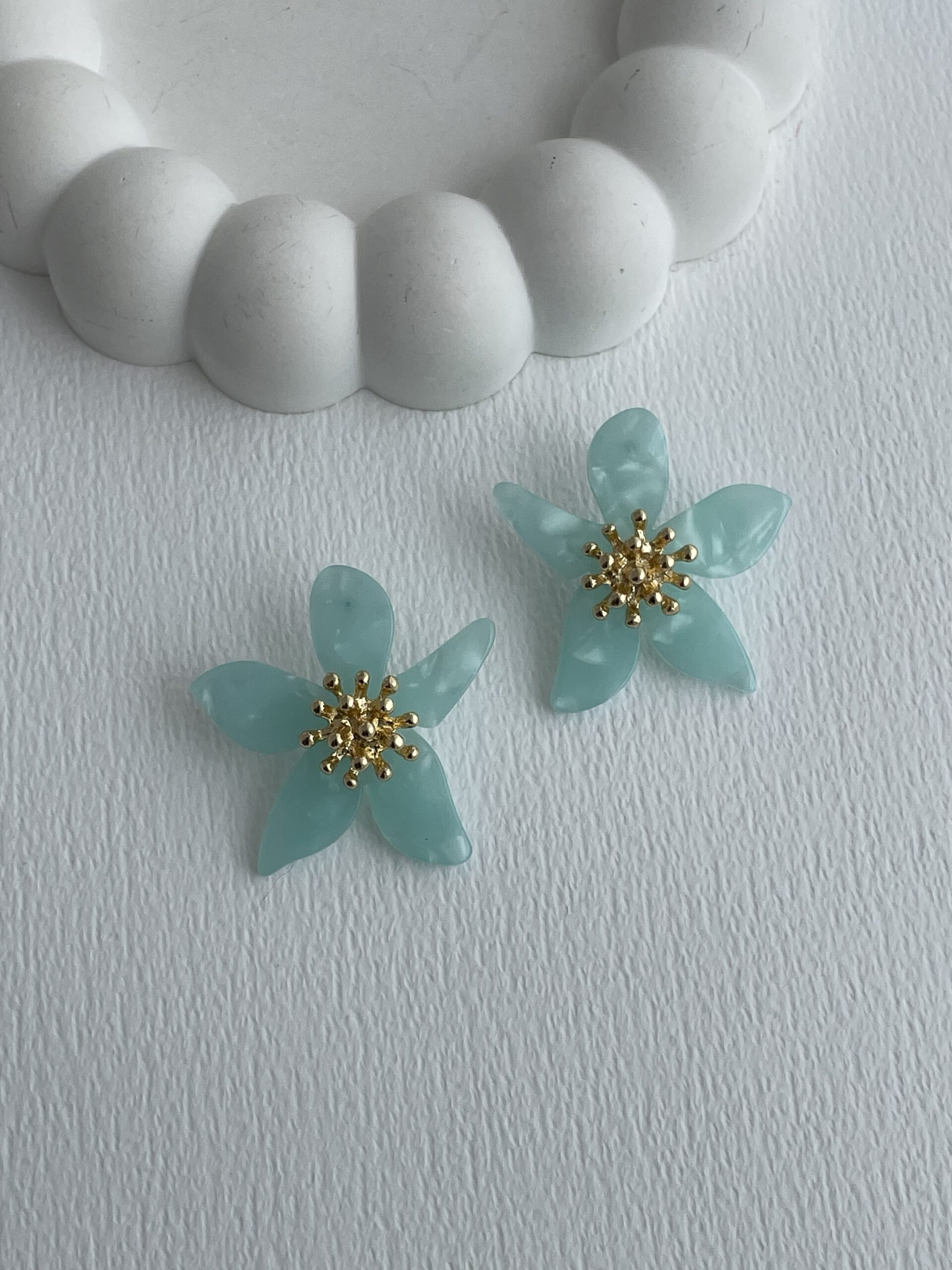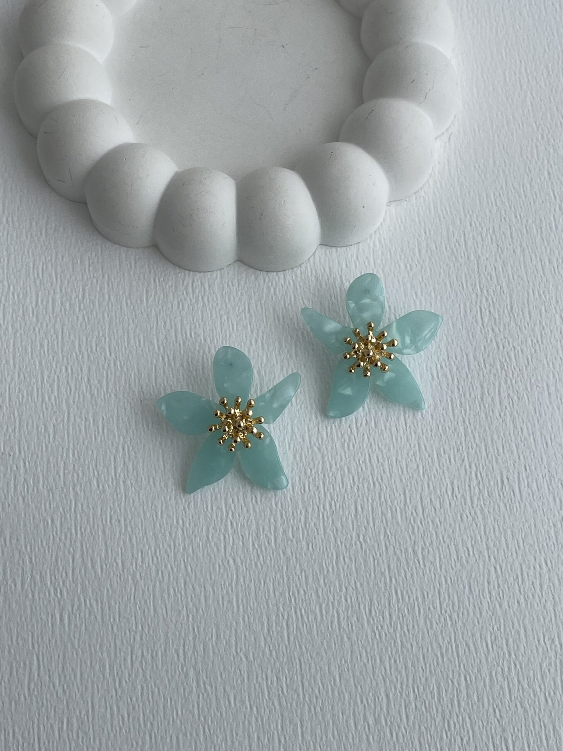 Özel Seri Çiçek Tasarım Yeşil Rainbow Gold Küpe