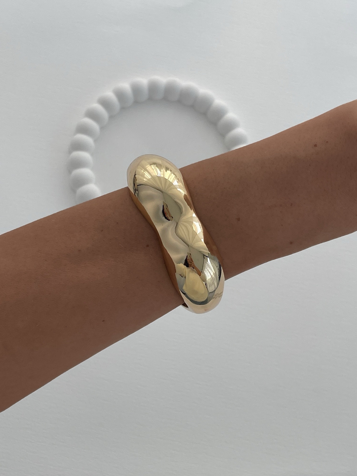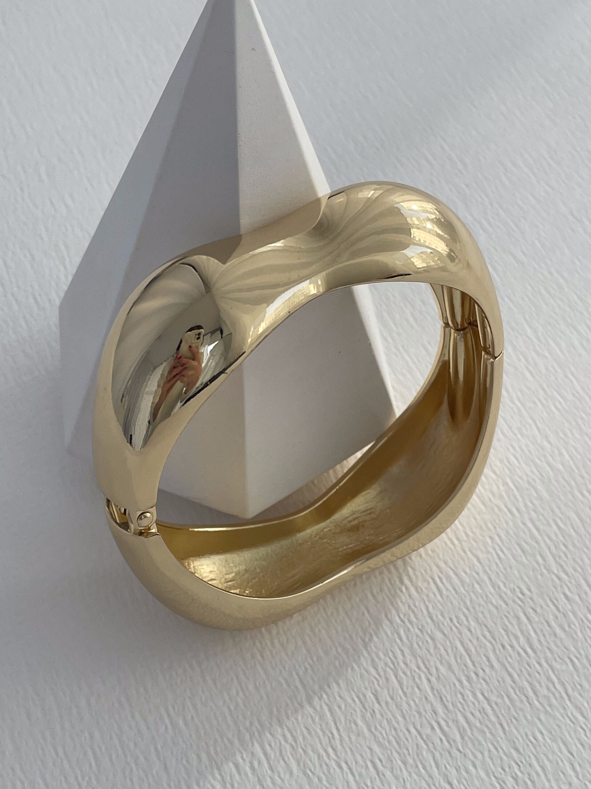 Özel Seri Çift Bombeli Kare Gold Kelepçe Bileklik