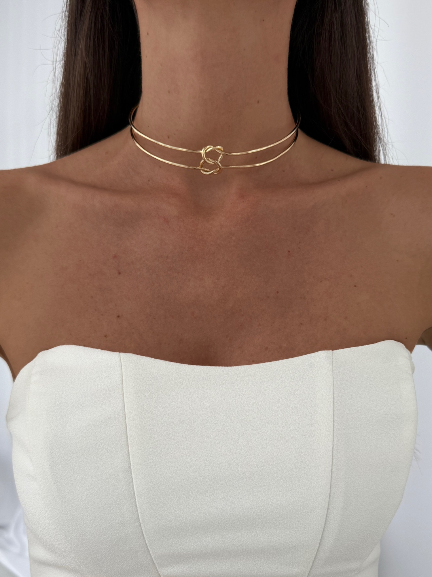 Özel Seri Çift Düğüm Tasarım Gold Choker Kolye