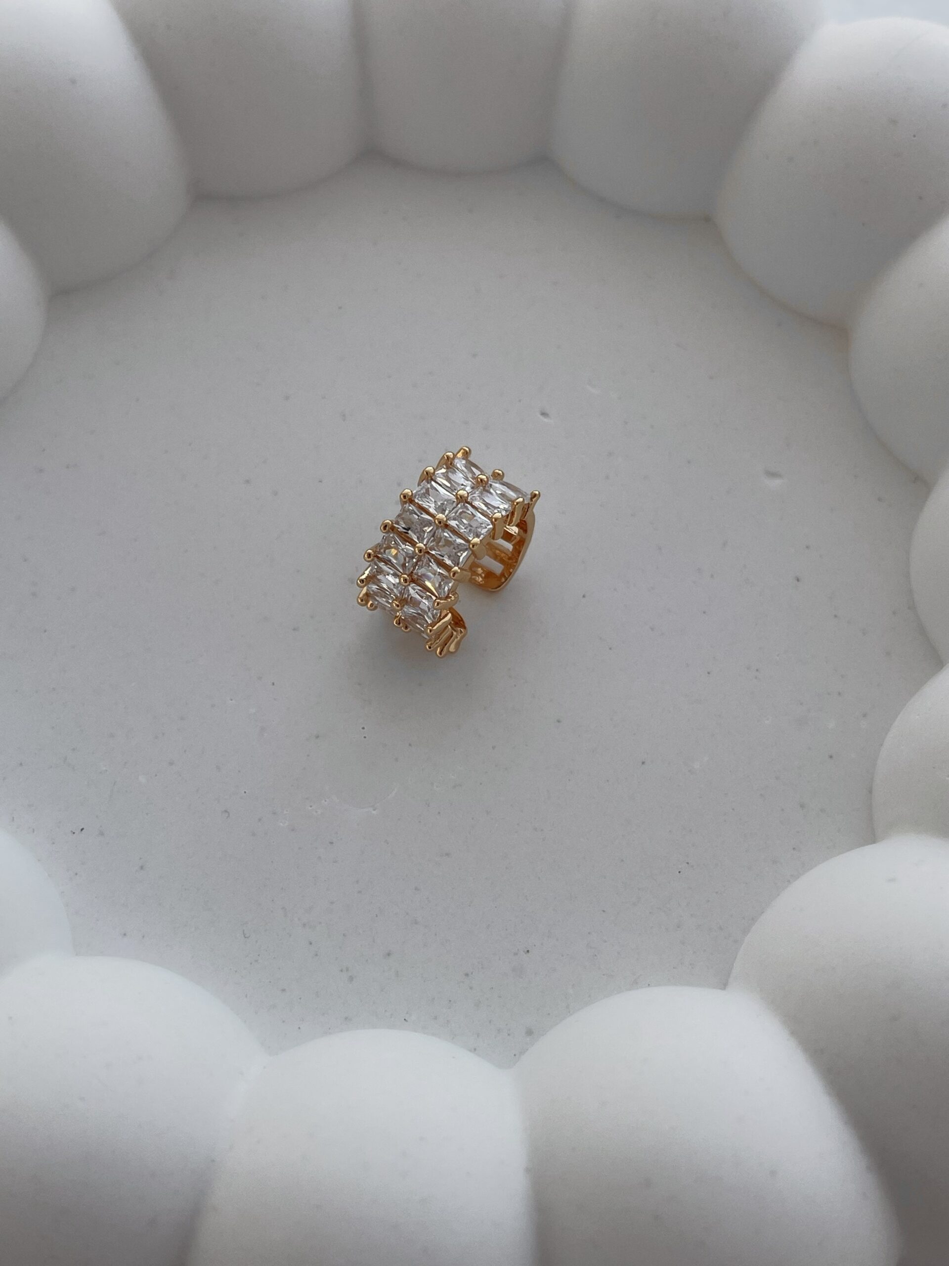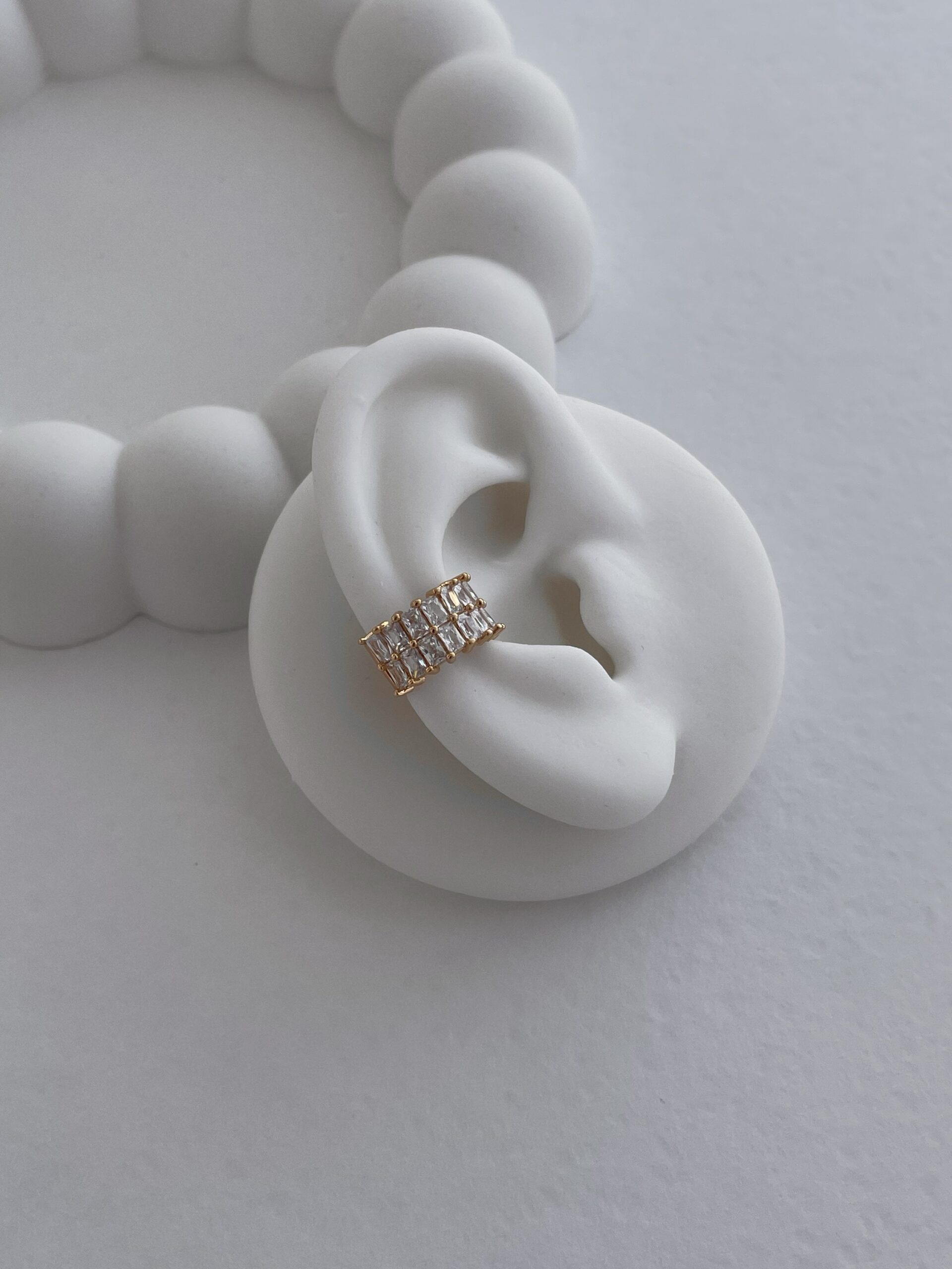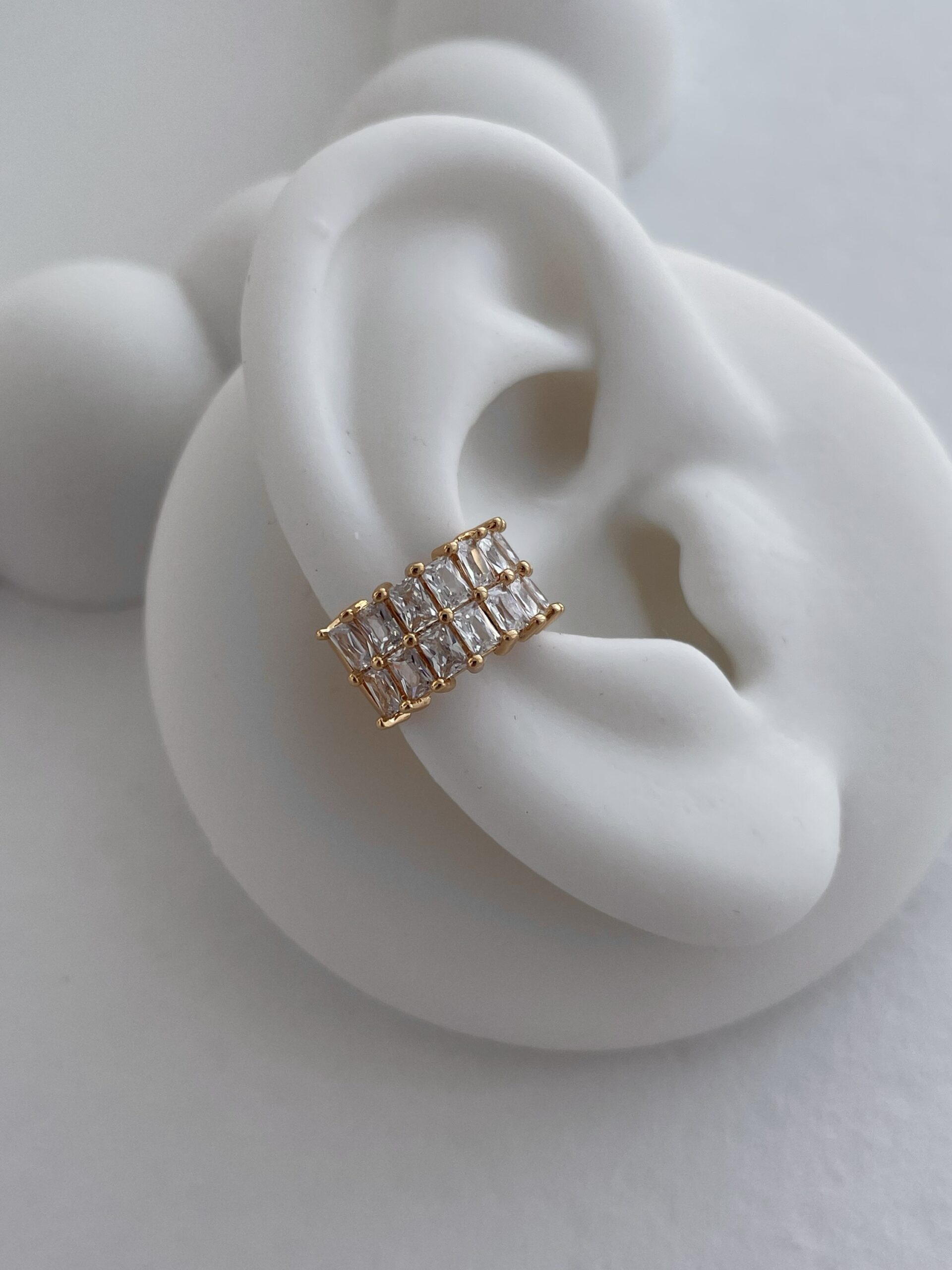 Özel Seri Çift Sıra Baget Taşlı Gold Earcuff