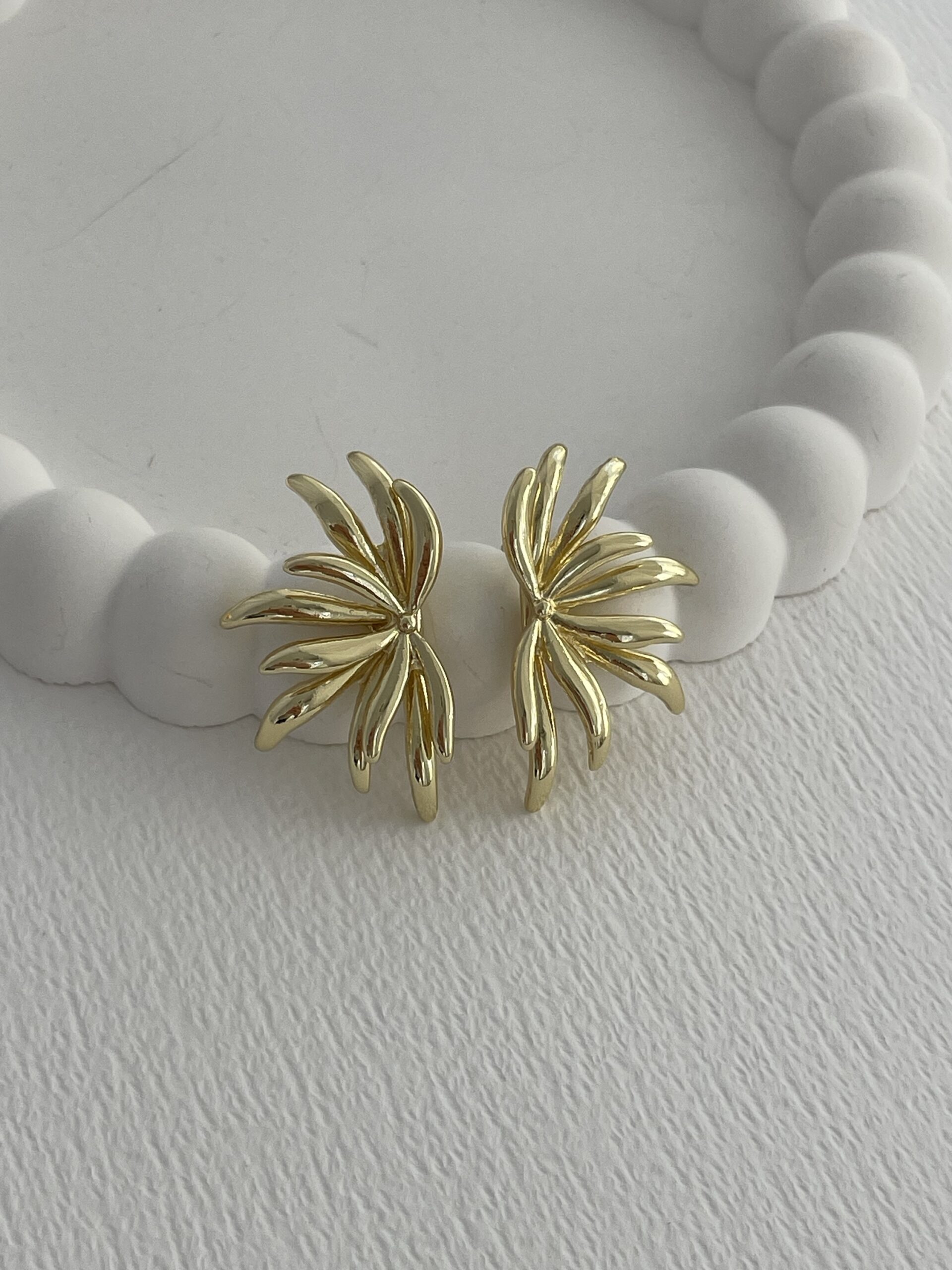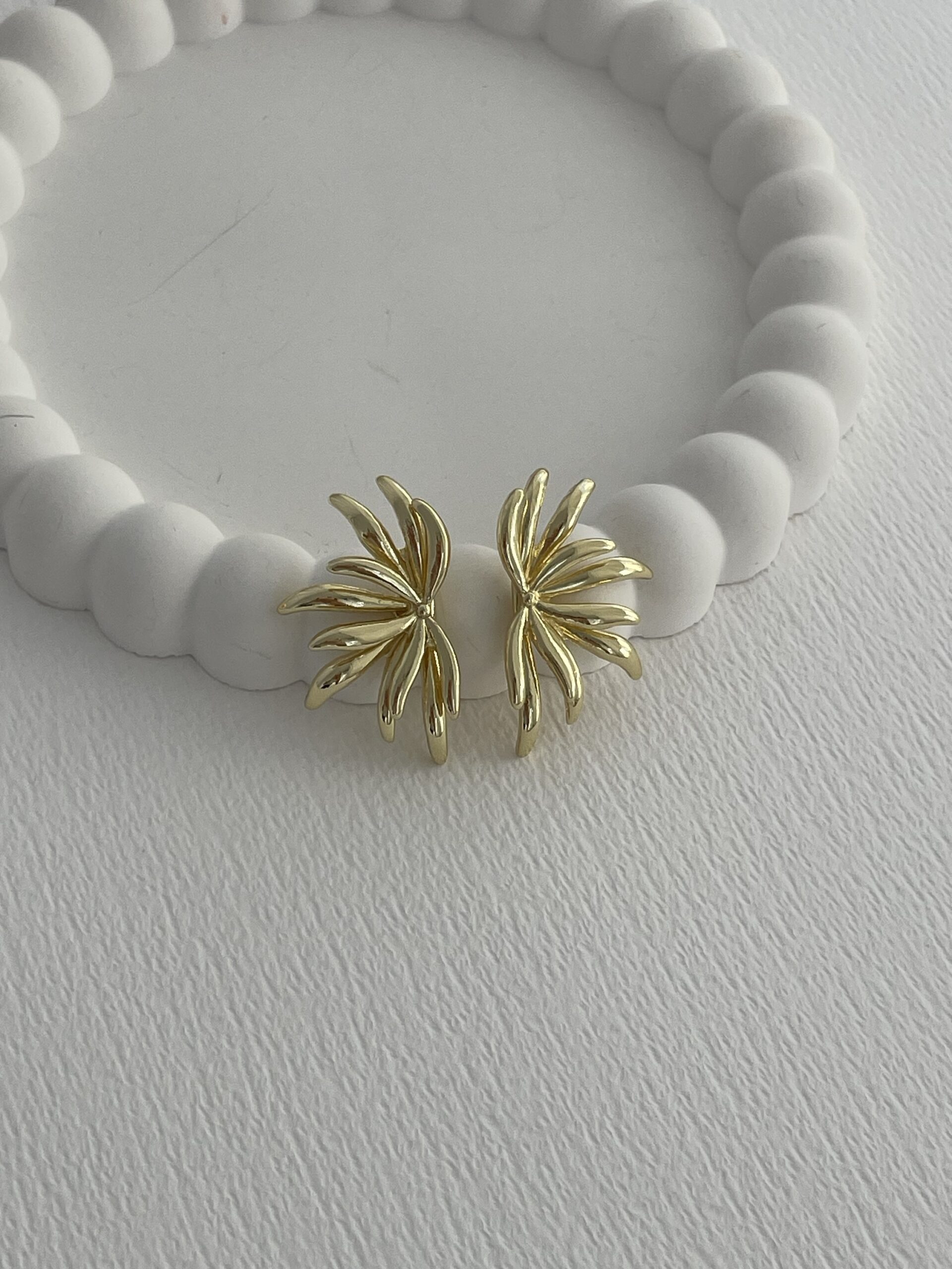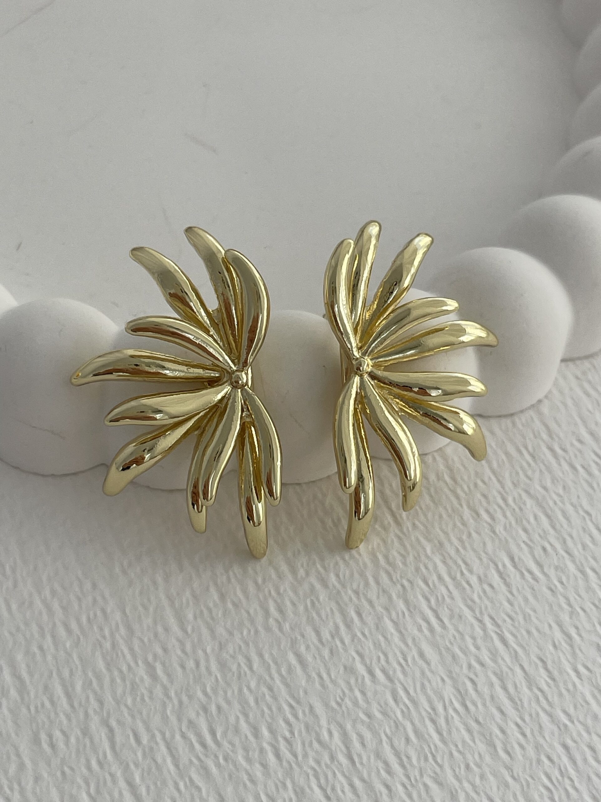 Özel Seri Çift Sıra İnce Yaprak Tasarım Gold Küpe