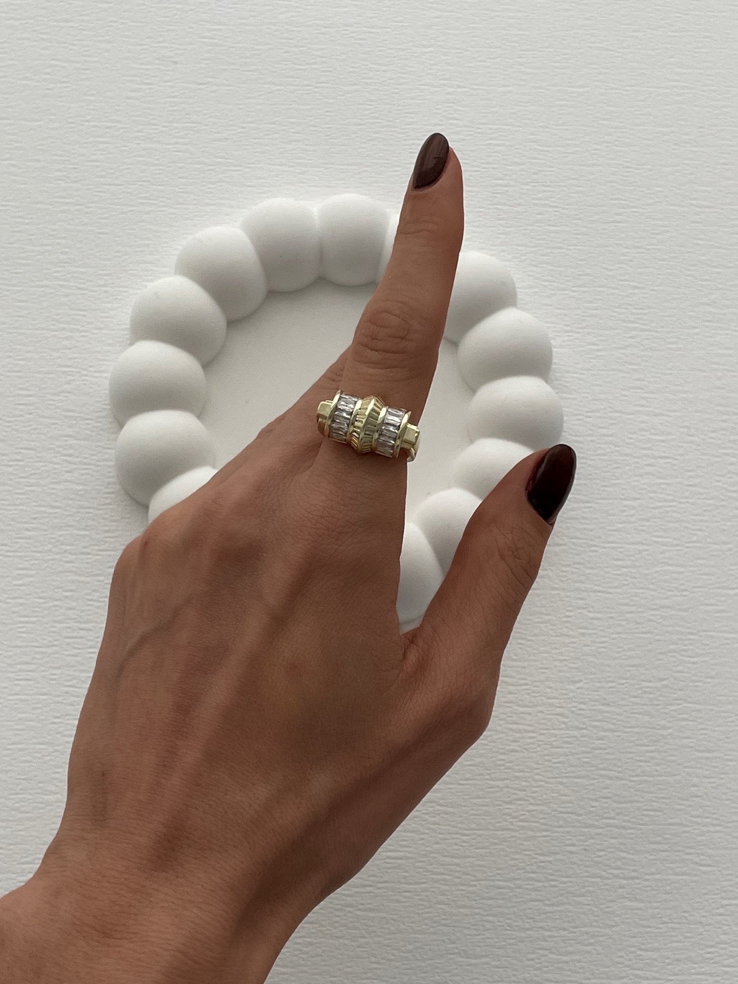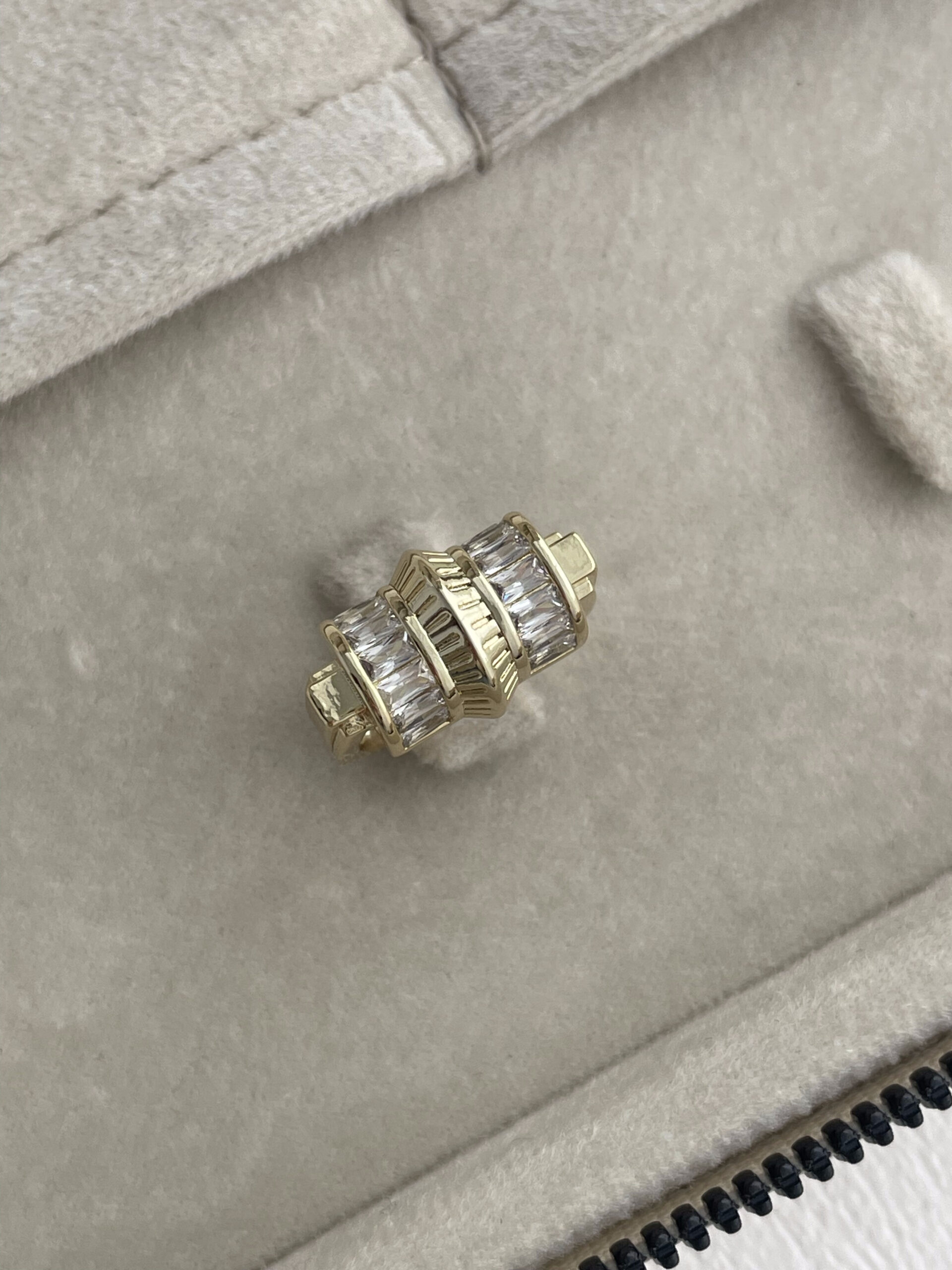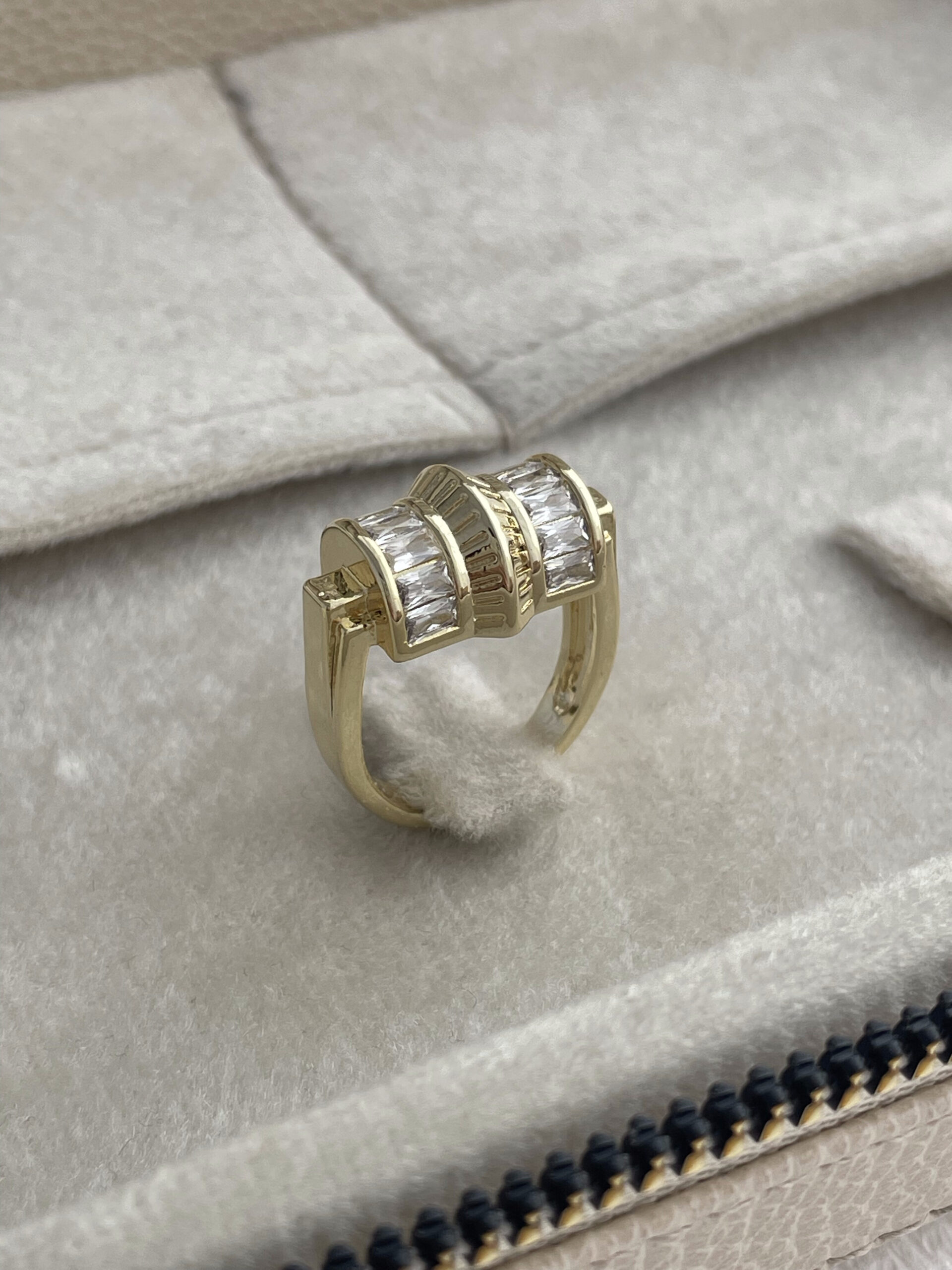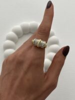 Özel Seri Çift Taraf Baget Taş Detay Ayarlanabilir Gold Yüzük