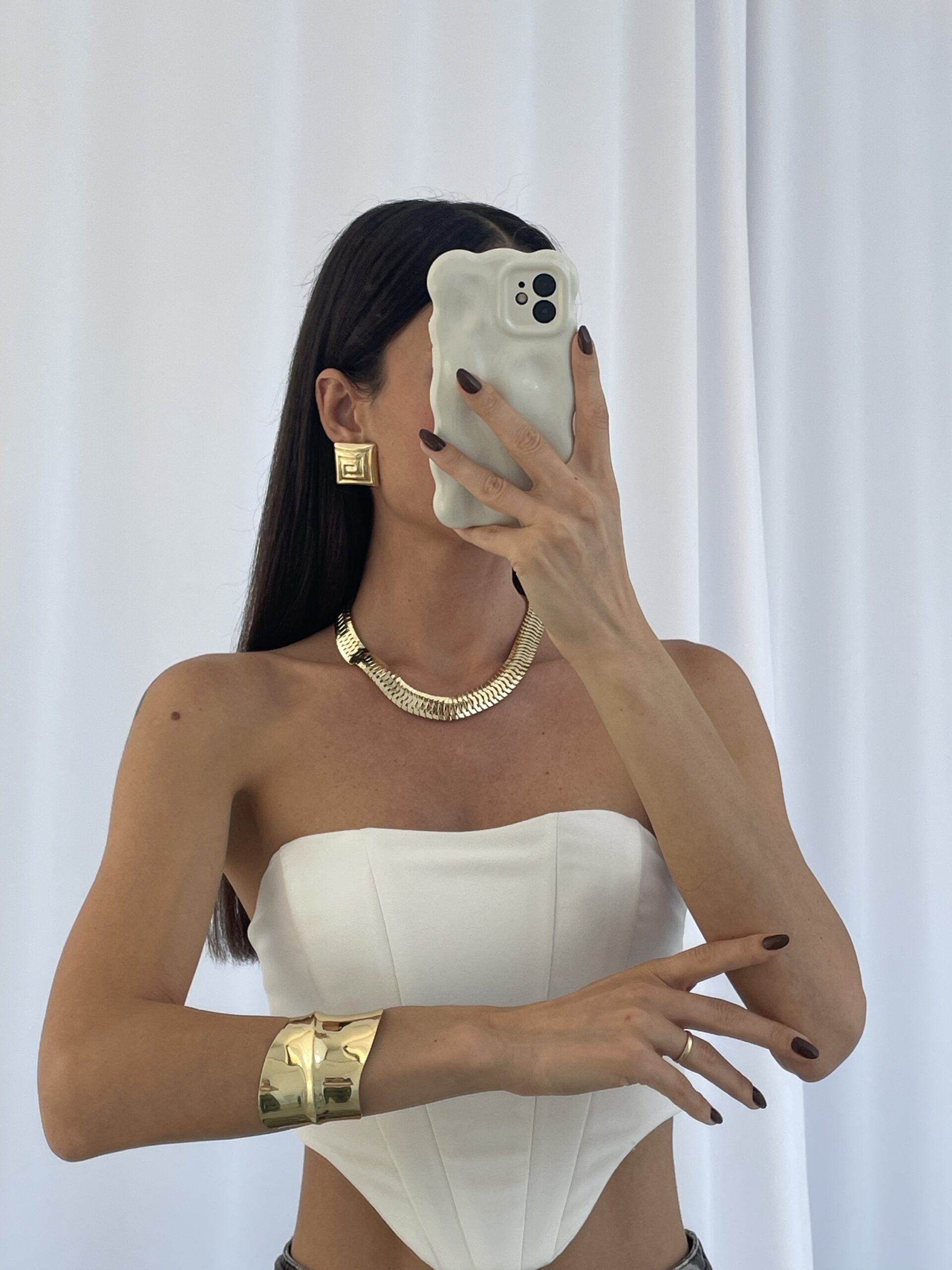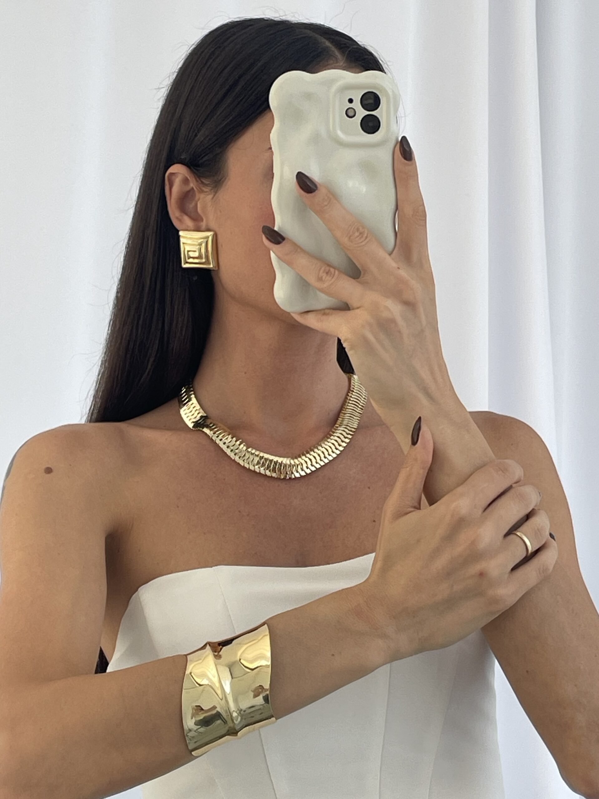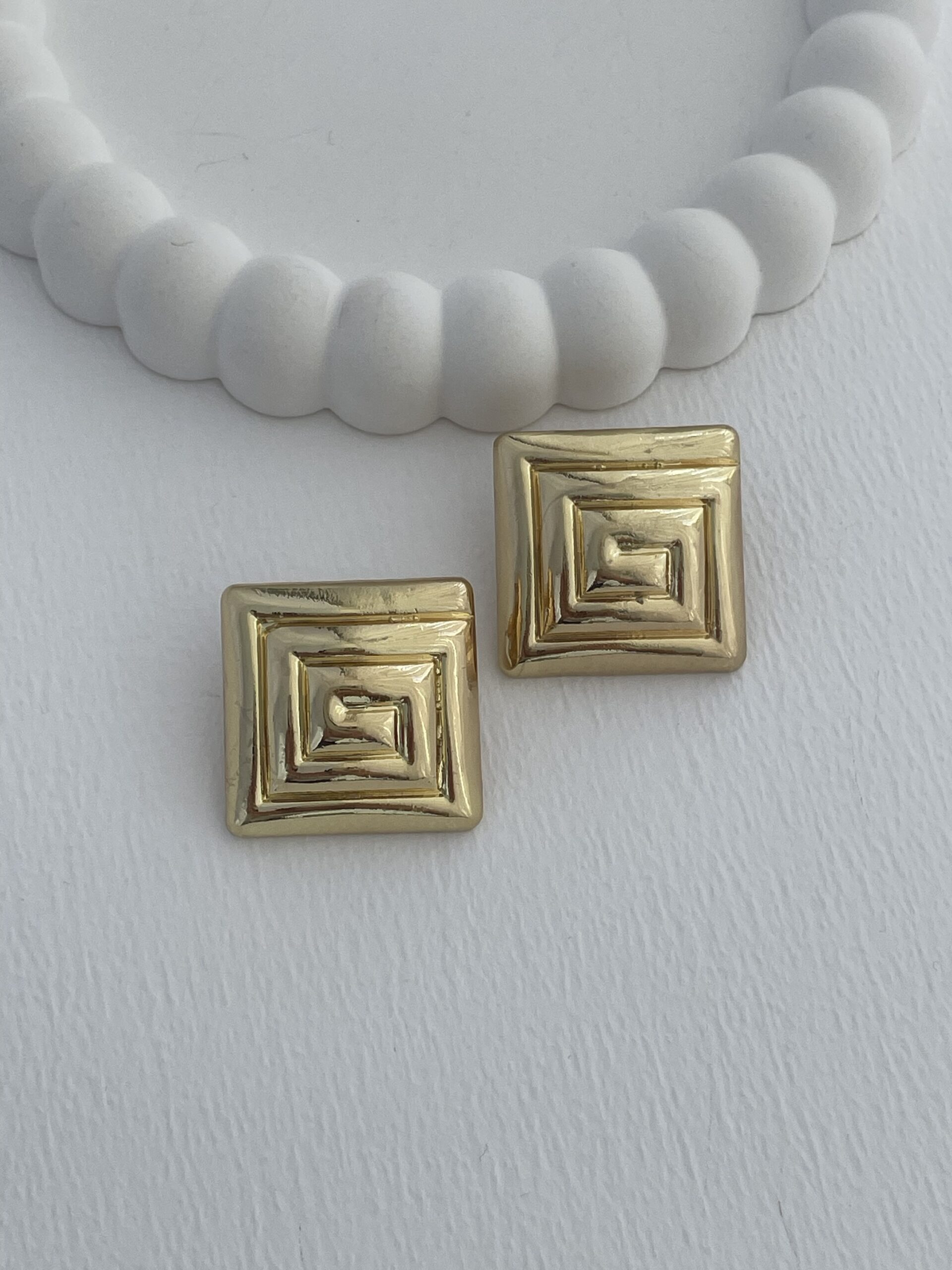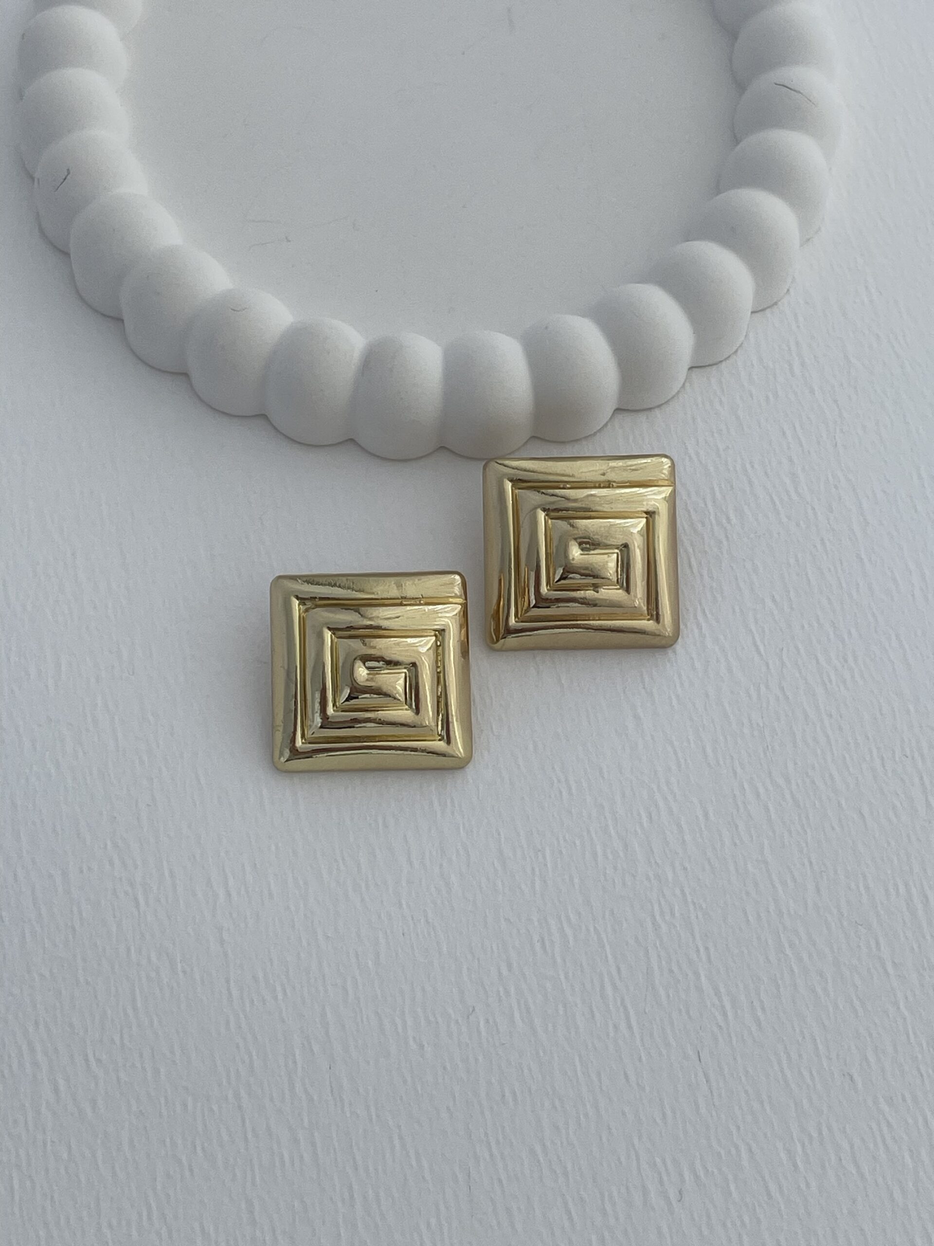 Özel Seri Çizgi Desen Kare Tasarım Gold Küpe