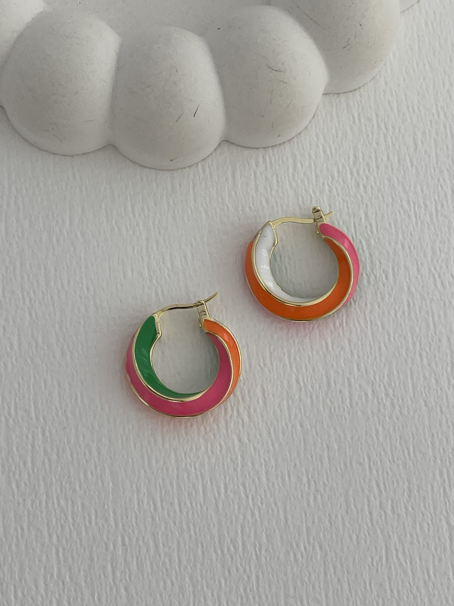 Özel Seri Çok Renkli Burgu Tasarım Gold Halka Küpe
