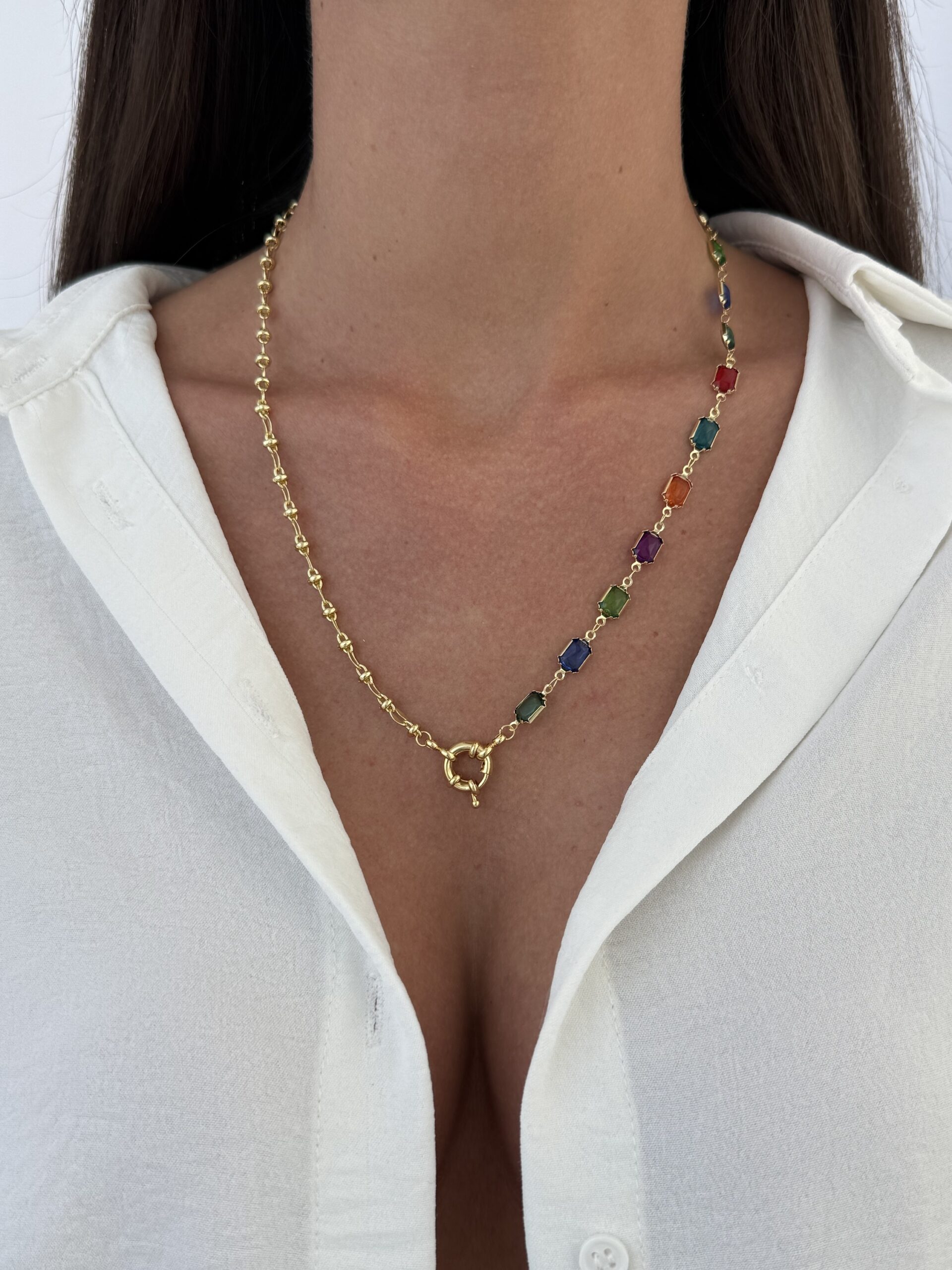 Özel Seri Çok Renkli Çift Taraflı Yarısı Zincir Gold Kolye