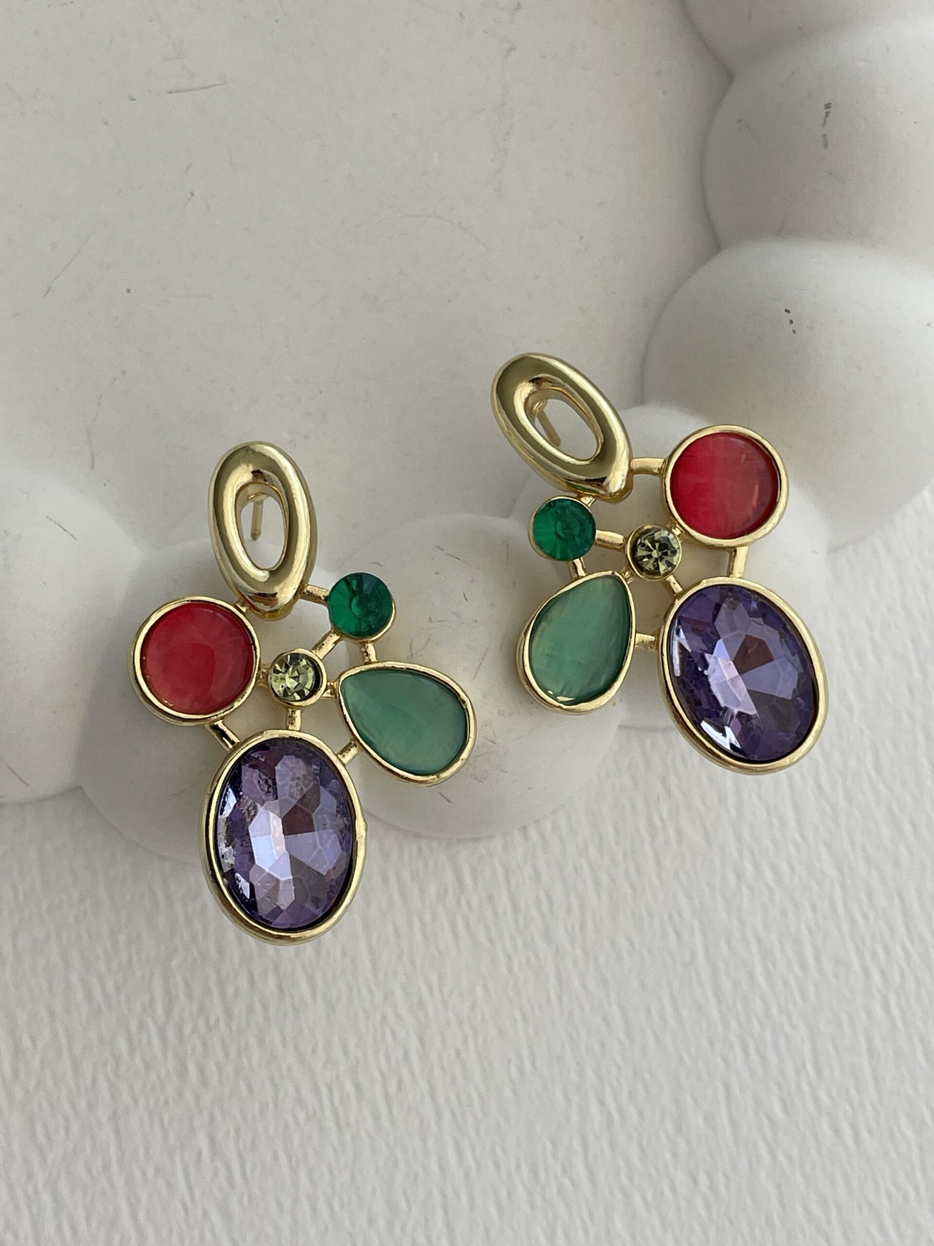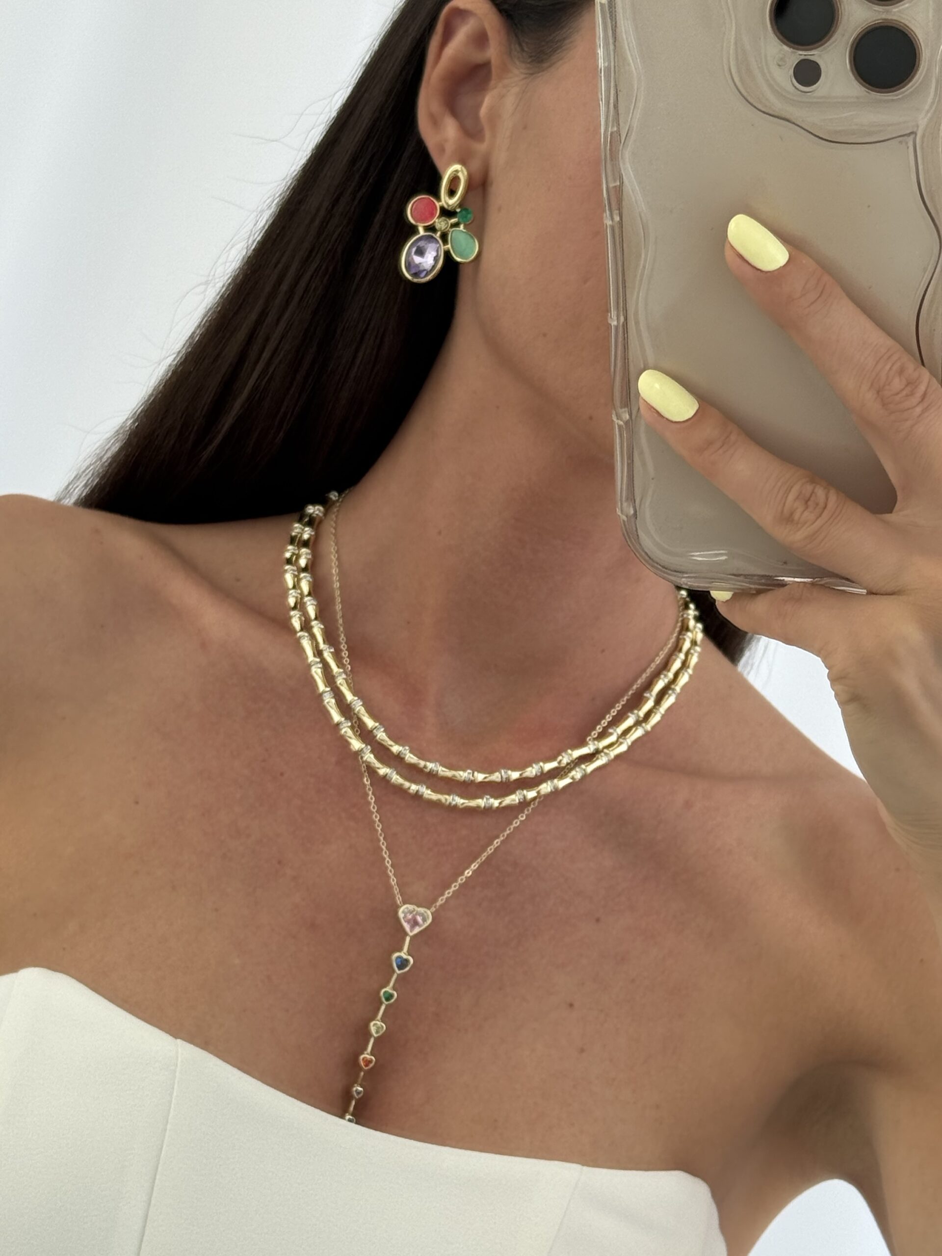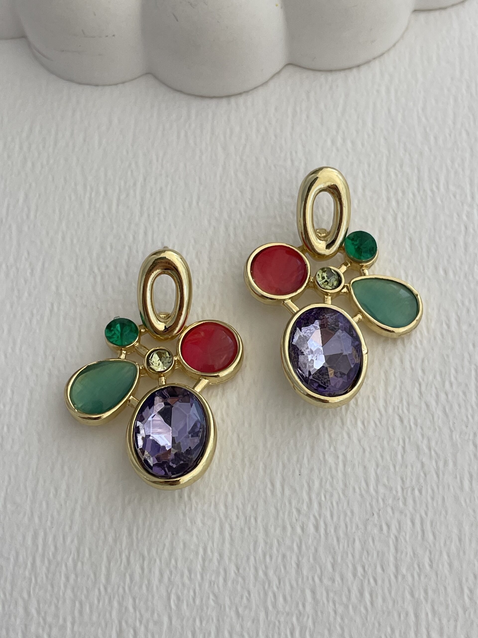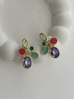 Özel Seri Çok Renkli Damla Taş Tasarım Gold Küpe